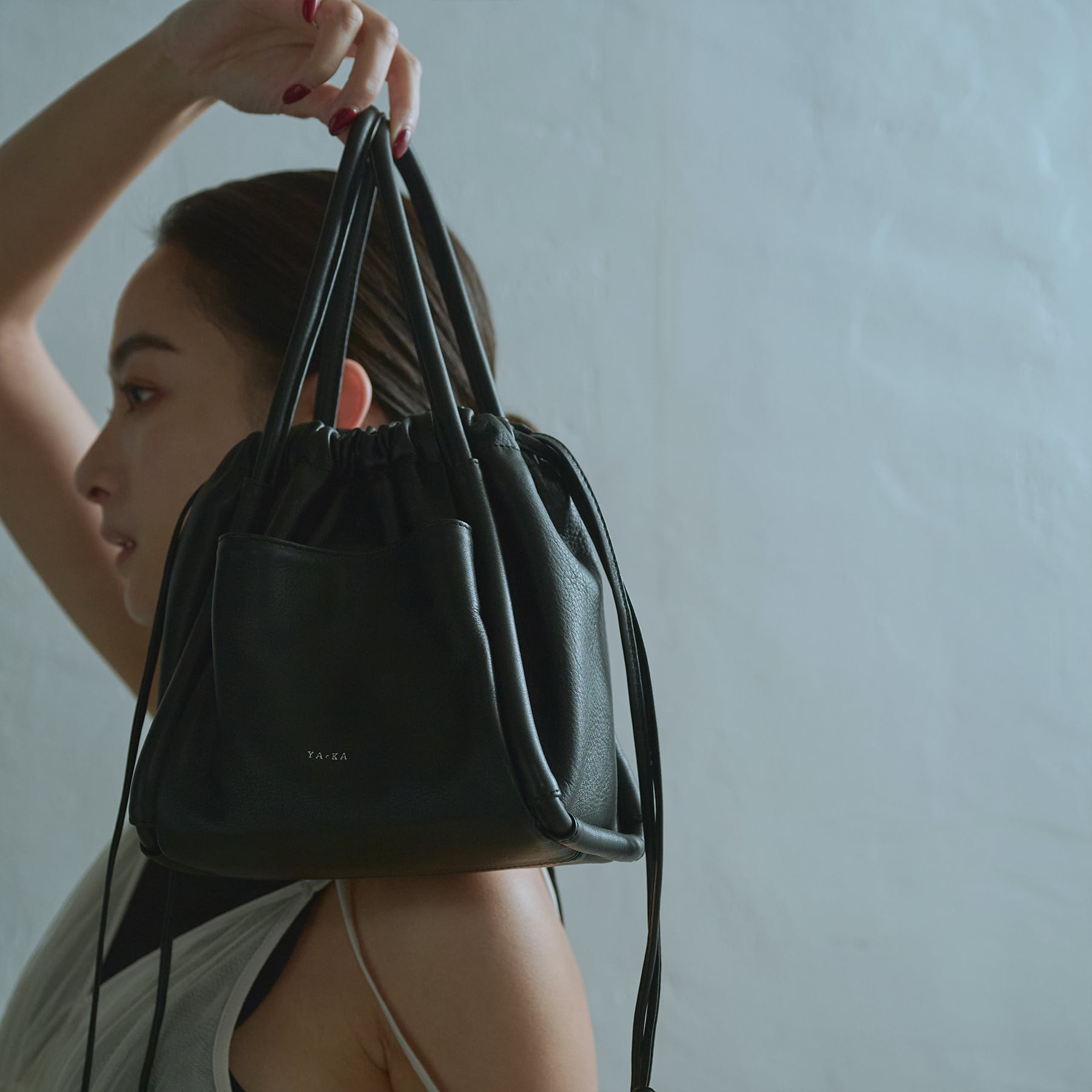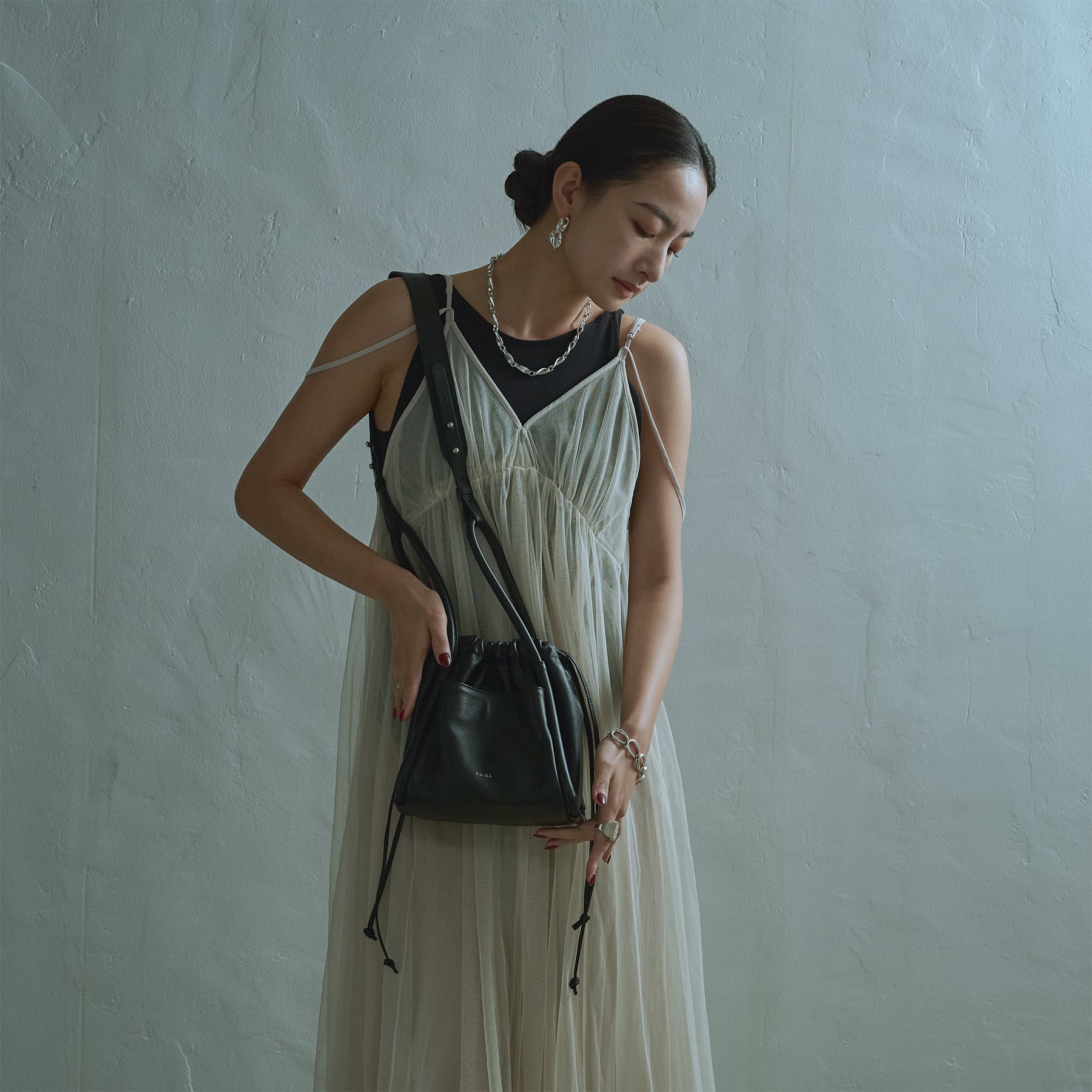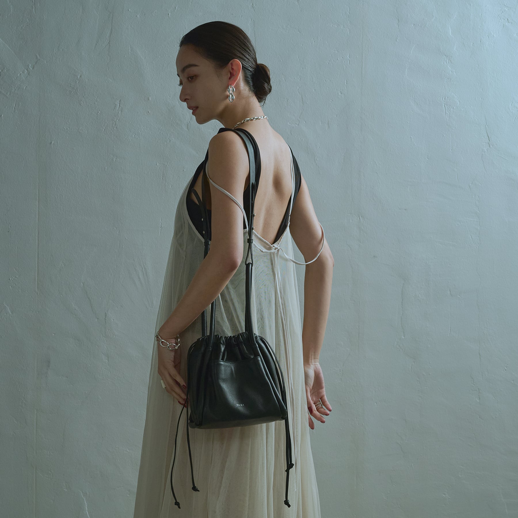 巾着ならではのしなやかな膨らみが、スタイリングに柔らかな立体感をプラス。