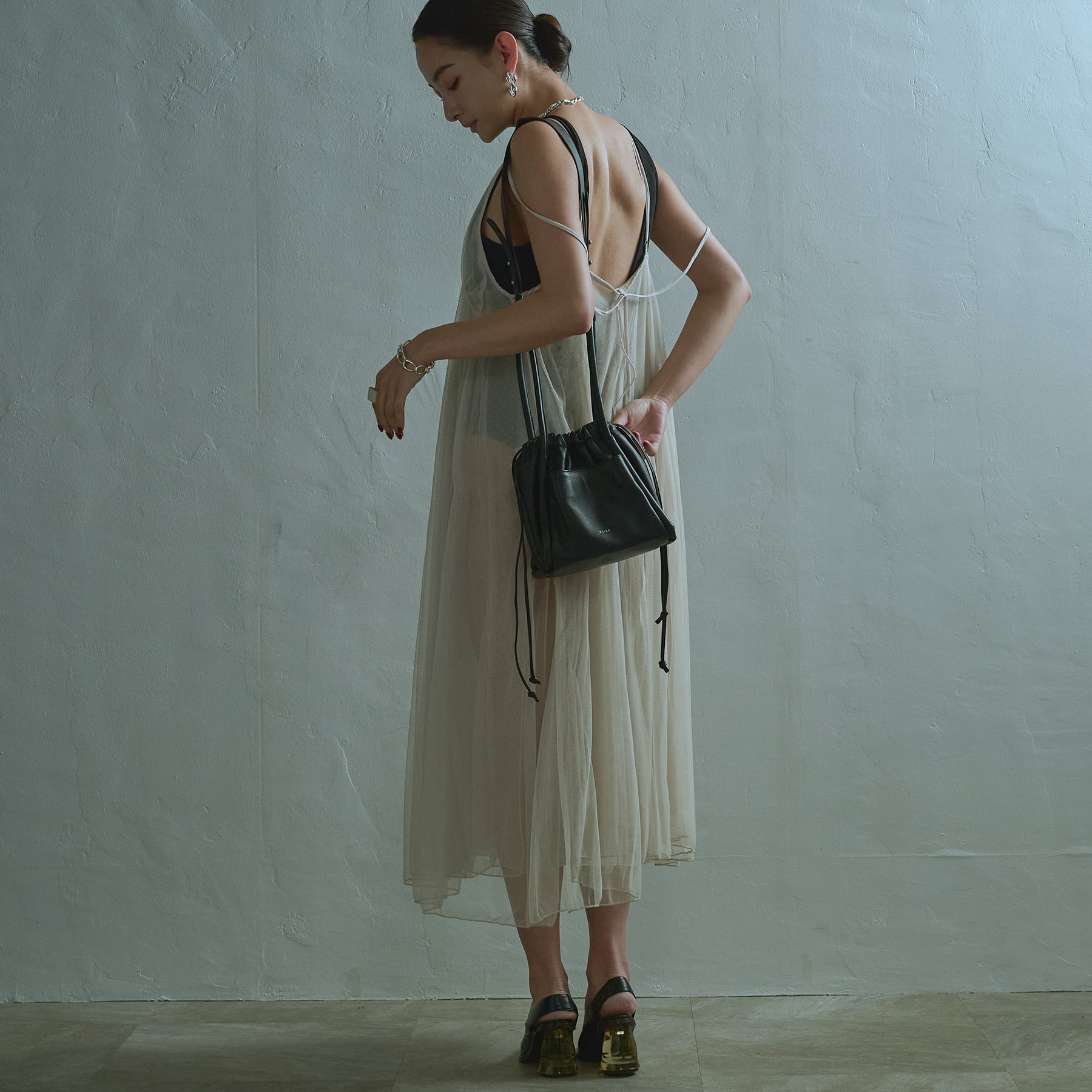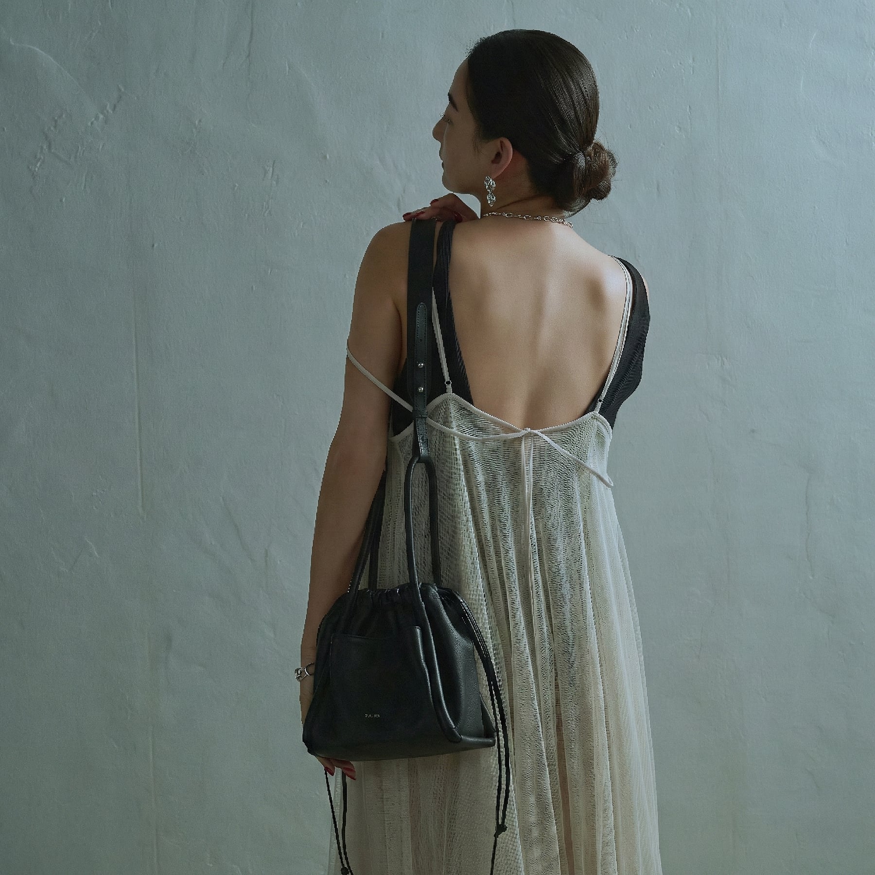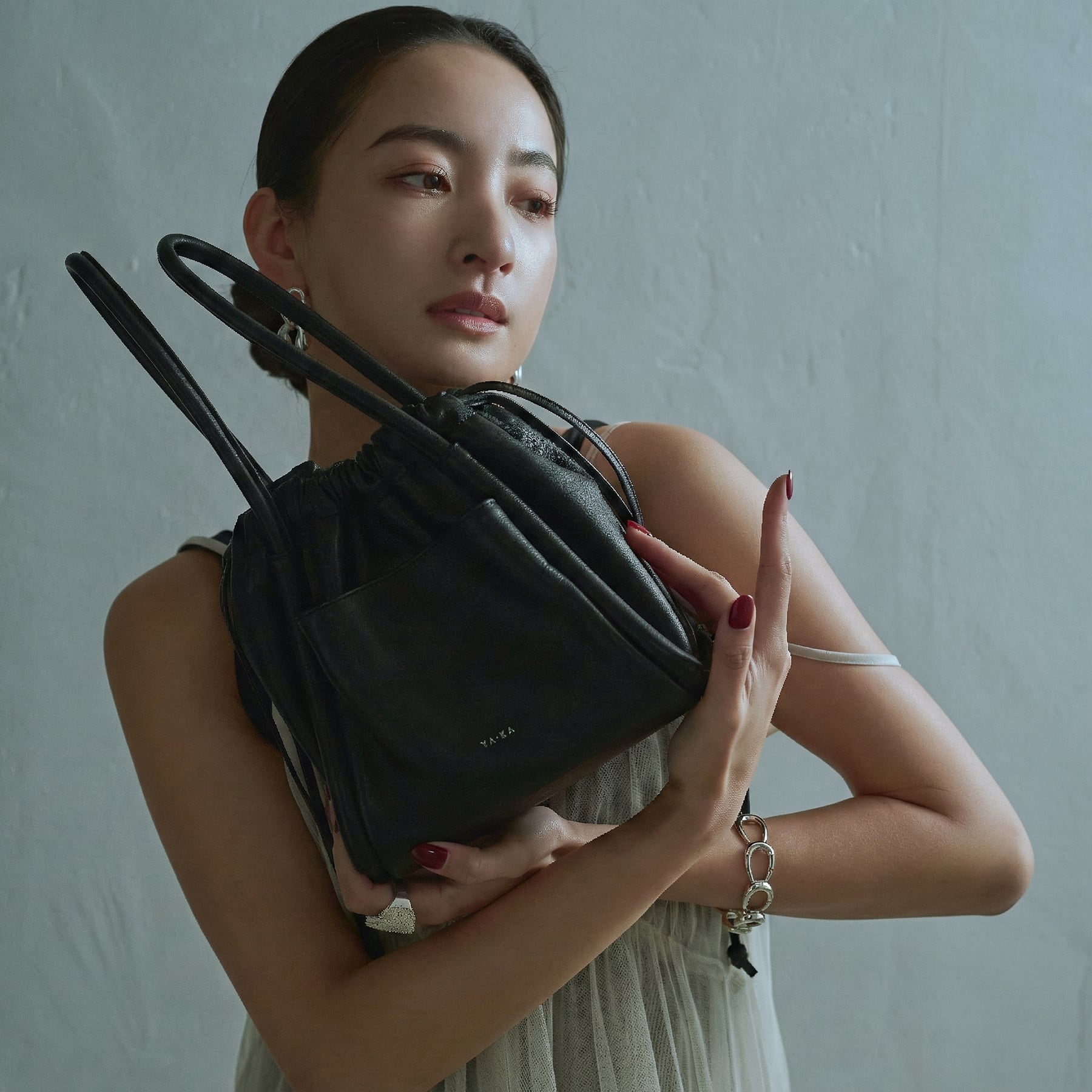 巾着ならではのしなやかな膨らみが、スタイリングに柔らかな立体感をプラス。