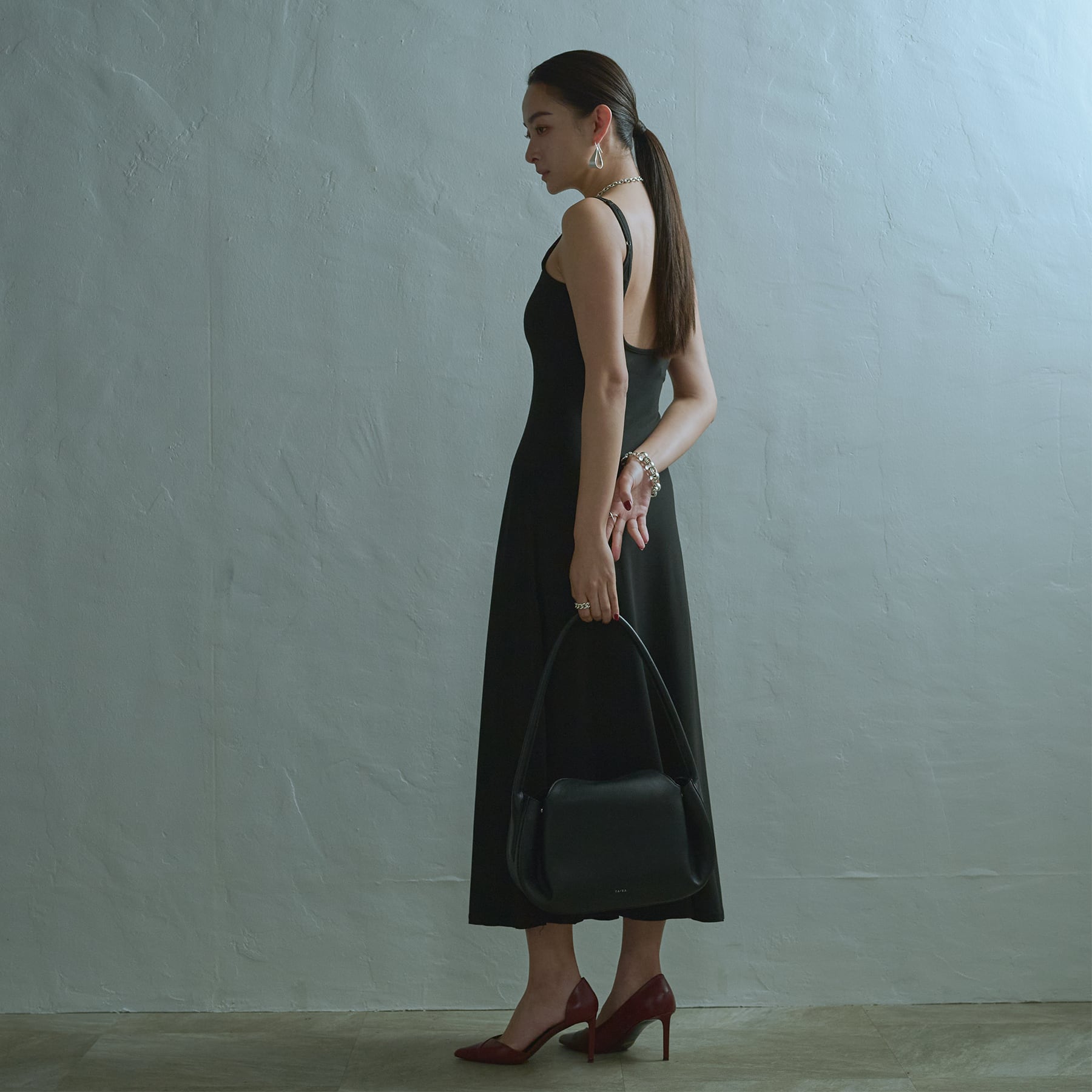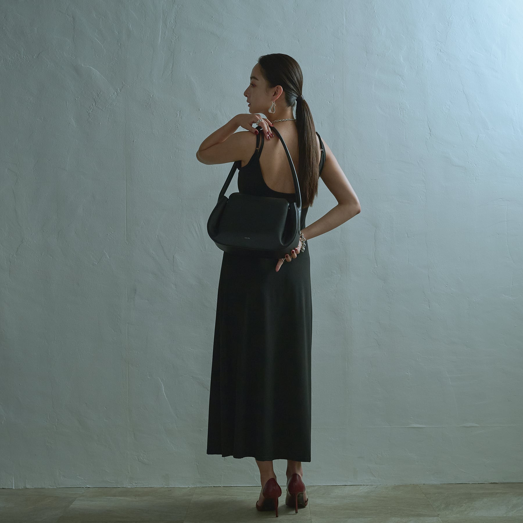 タックとレザーの柔らかさと撓(たわ)みを活かした、独特なフォルムを表現。