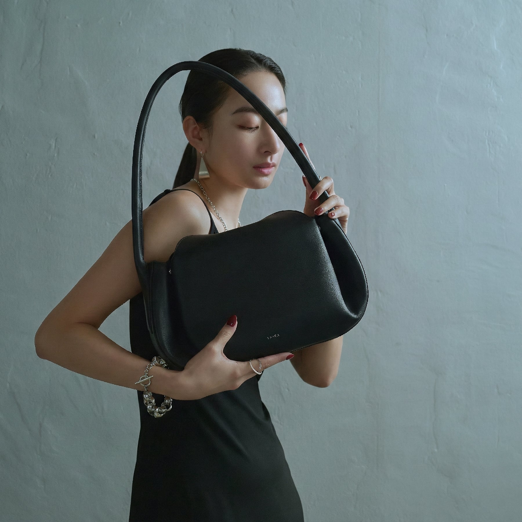 高めのハンドル設計で、肩掛けもでき、スタイリングの幅も自在に。