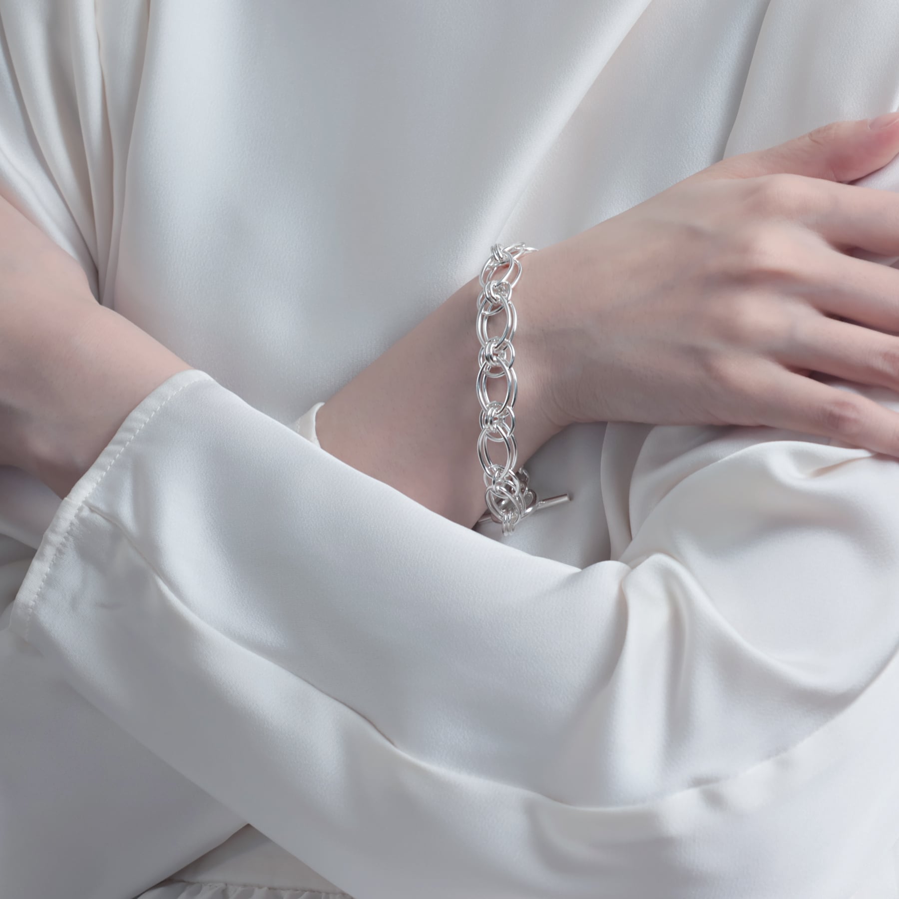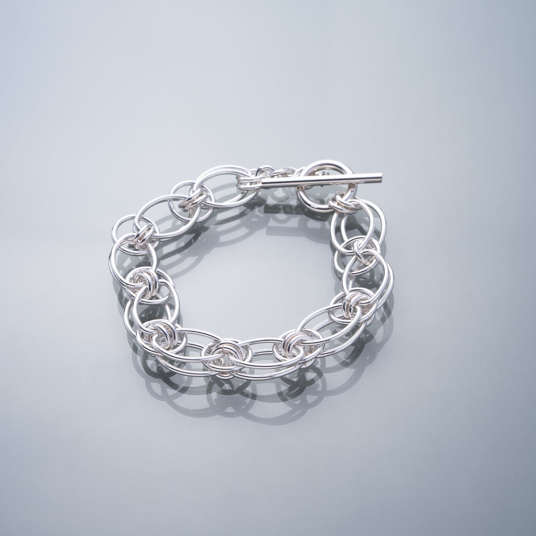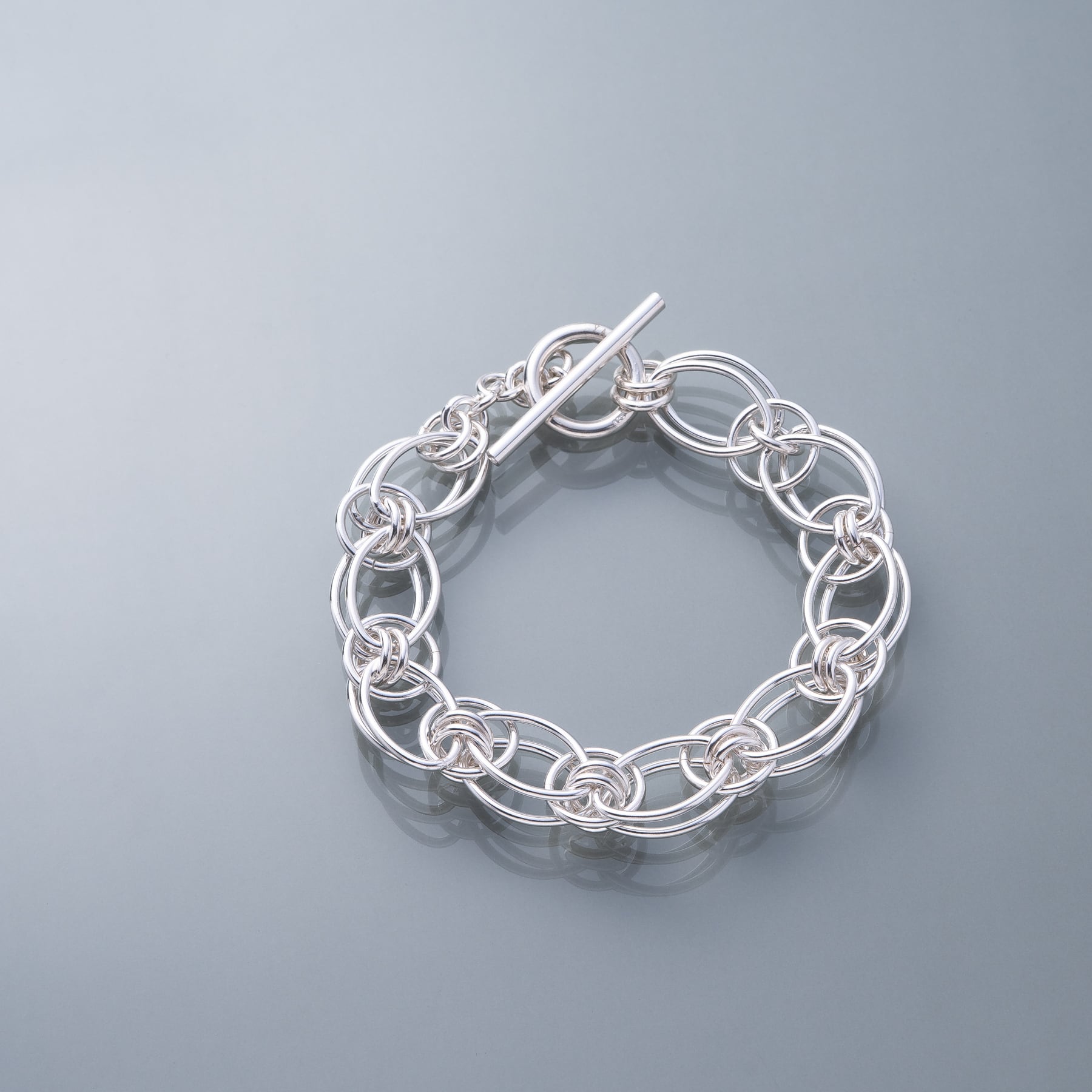 ・幾重にも重なり合うサークルとオーバルを精緻に組み合わせたブレスレット。