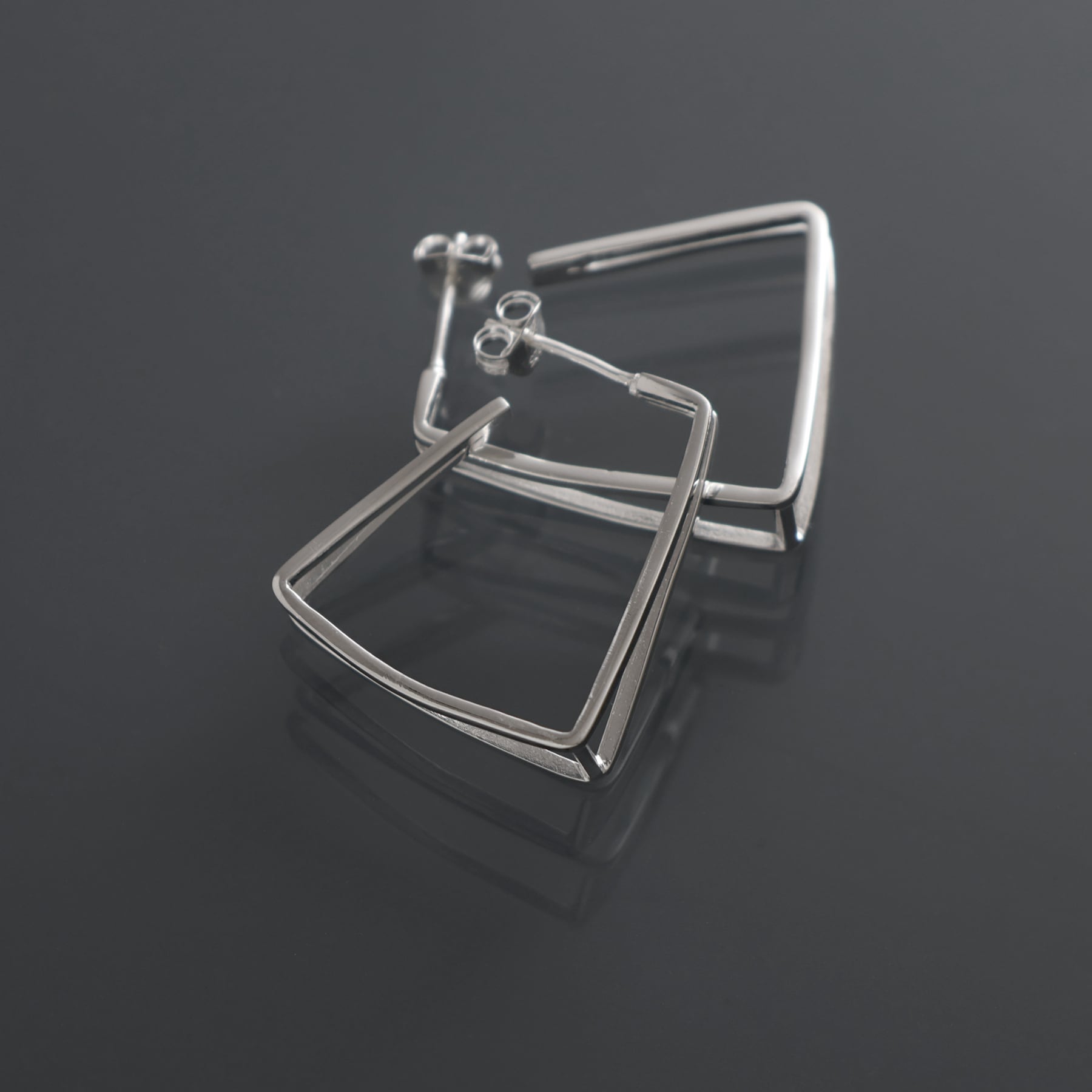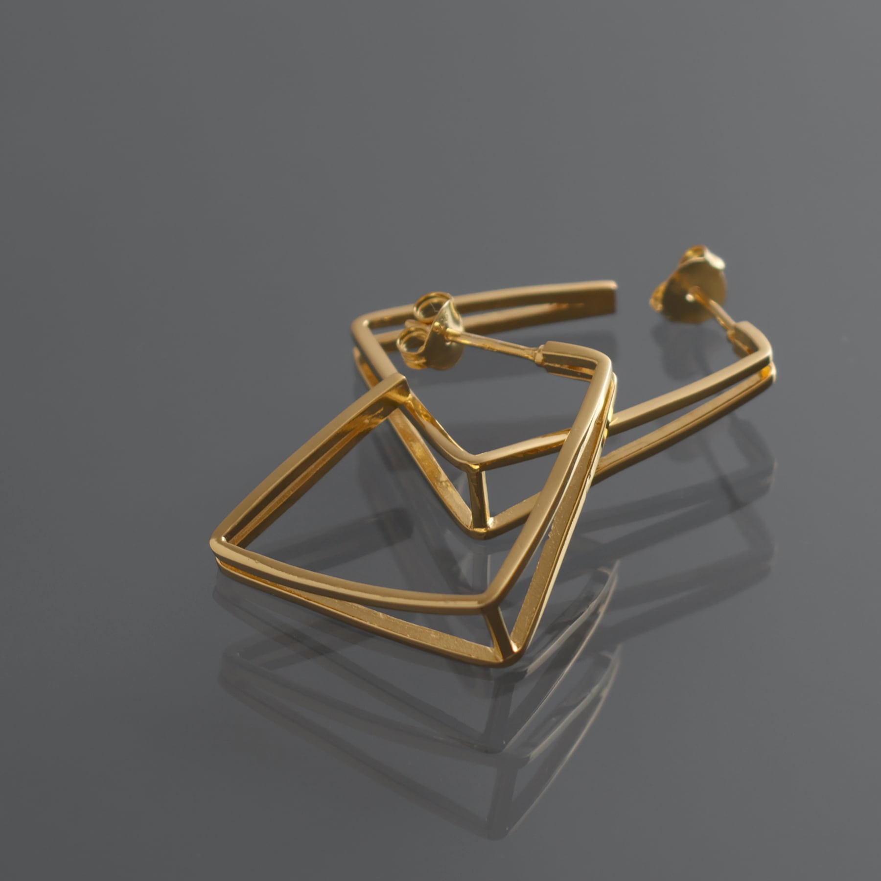 ・フレームを立体的に組み上げたようなモダンなデザインのピアス。