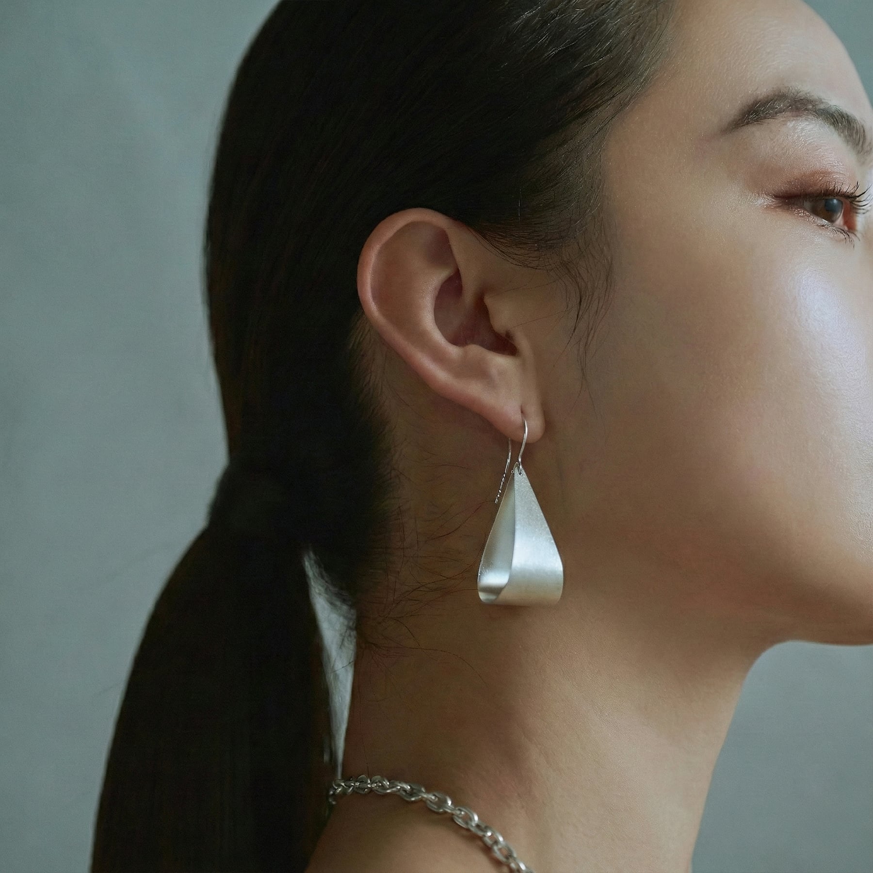 ・繊細に湾曲したシルバーを成形。空気を含む風船のような軽やかさを持たせた。