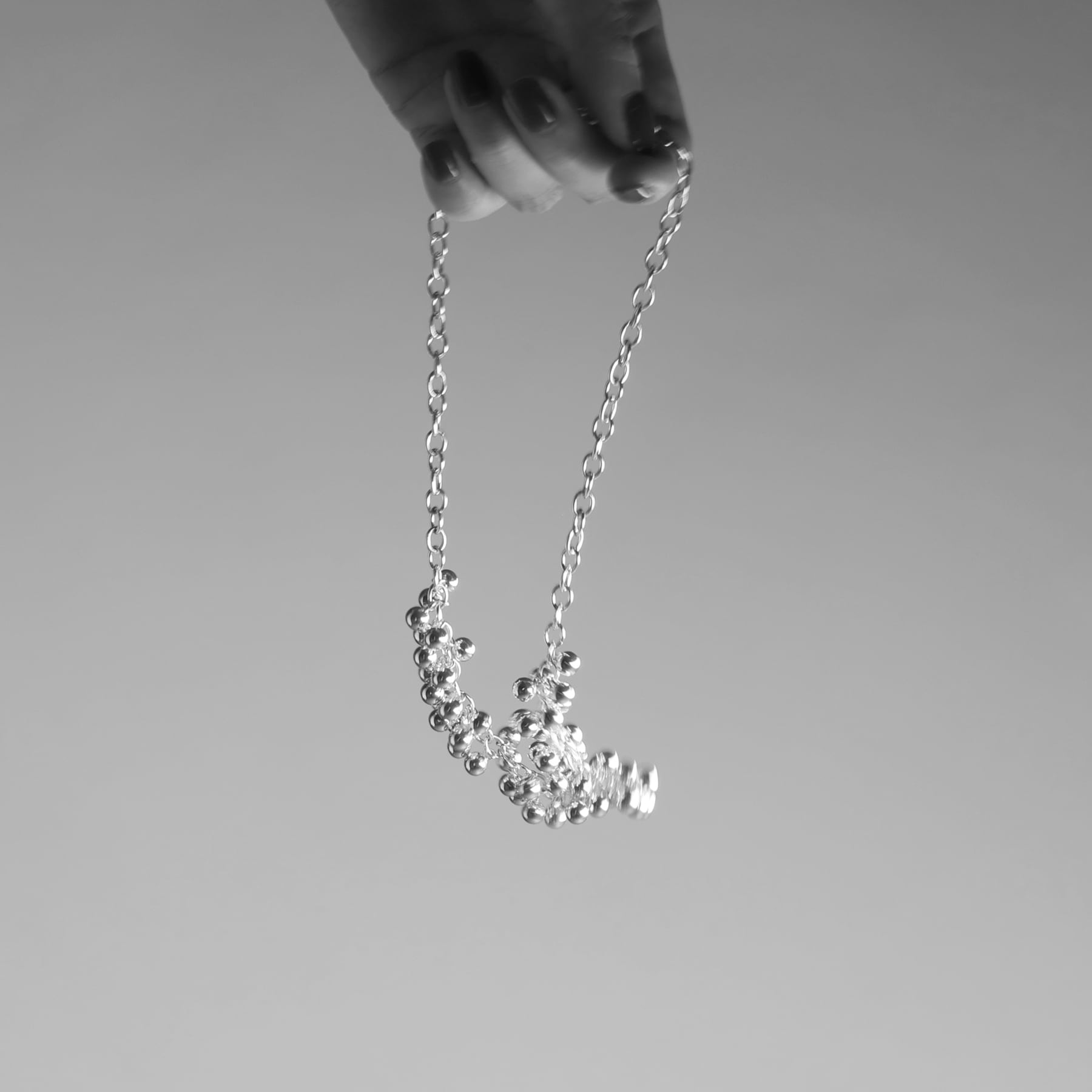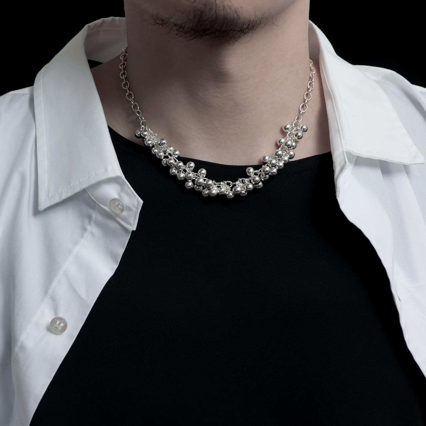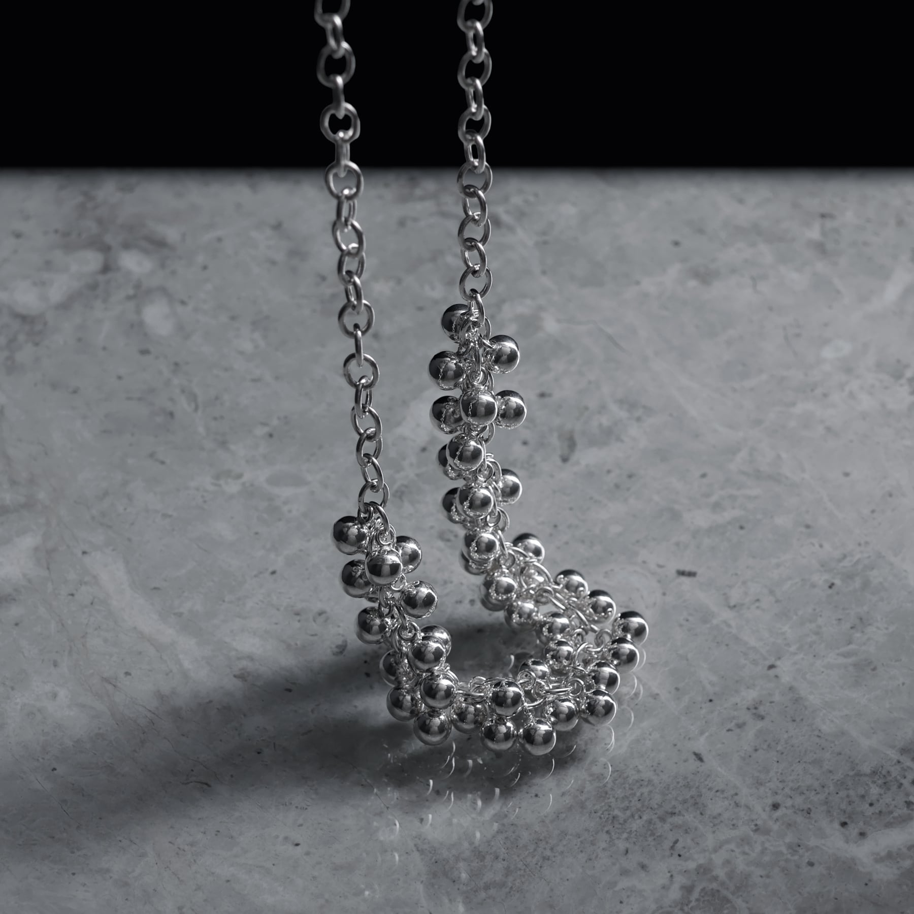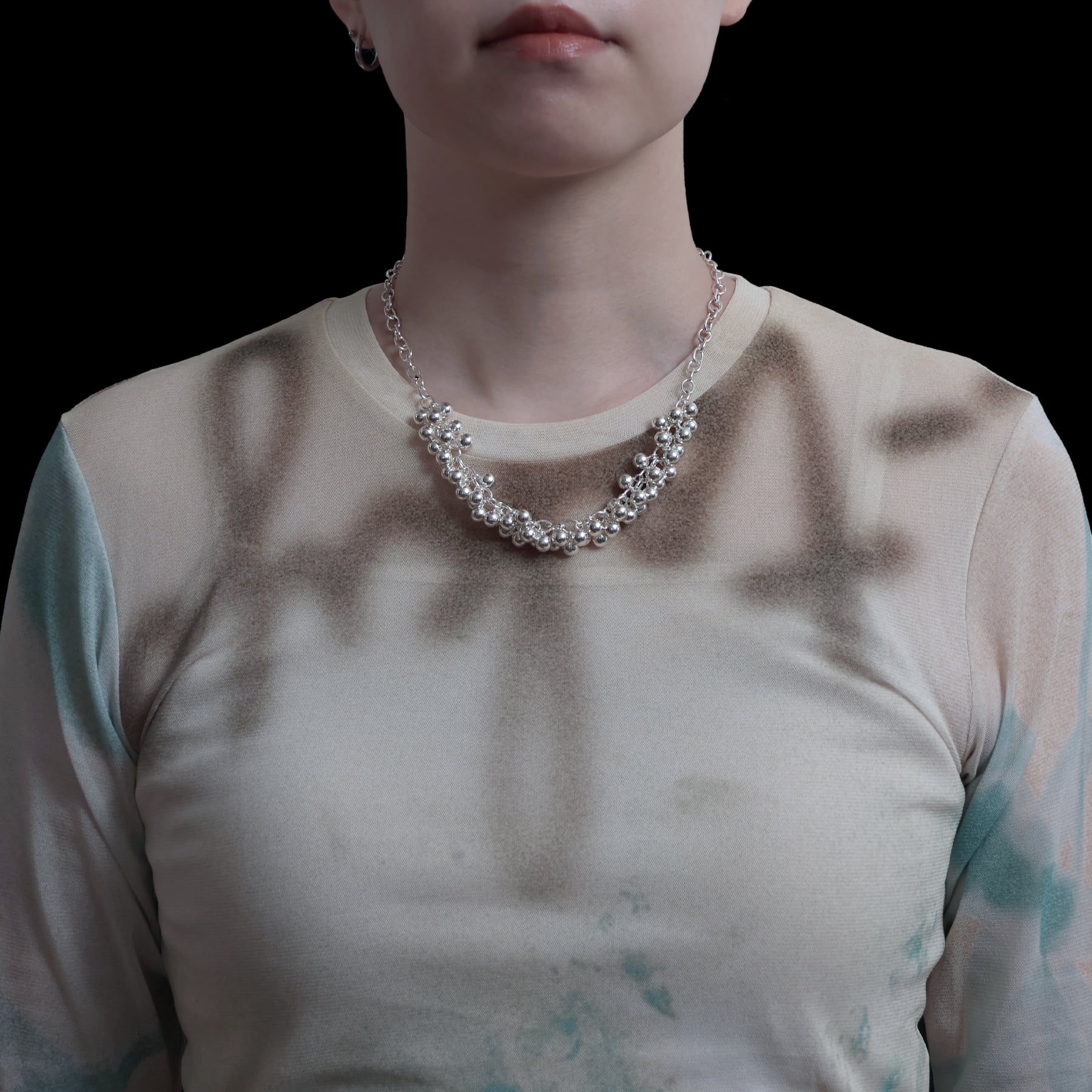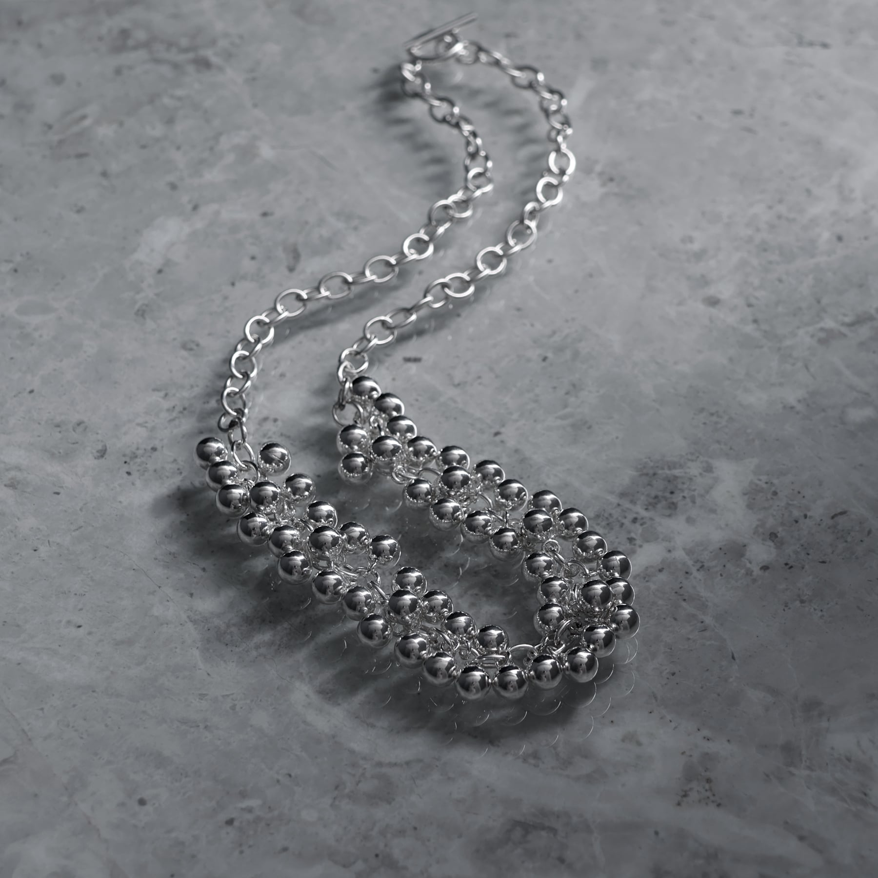 ・シルバービーズを密に重ね連ねた華やかなネックレス。