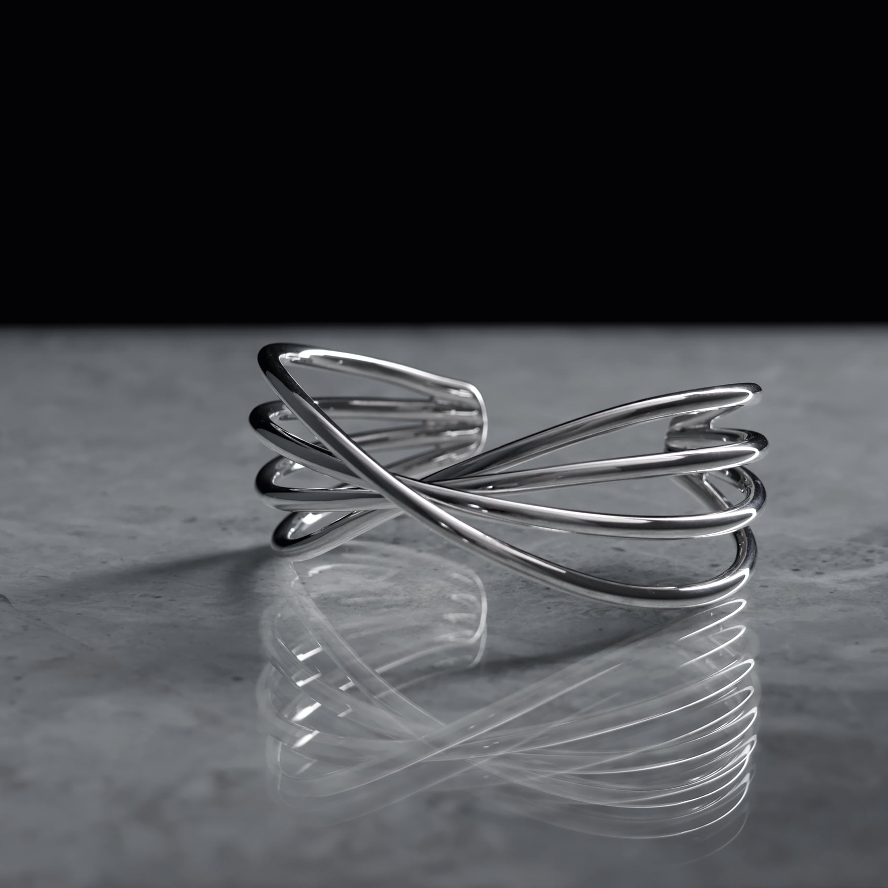 ・交差部分が作り出す陰影のコントラストが、デザインの立体感を演出。