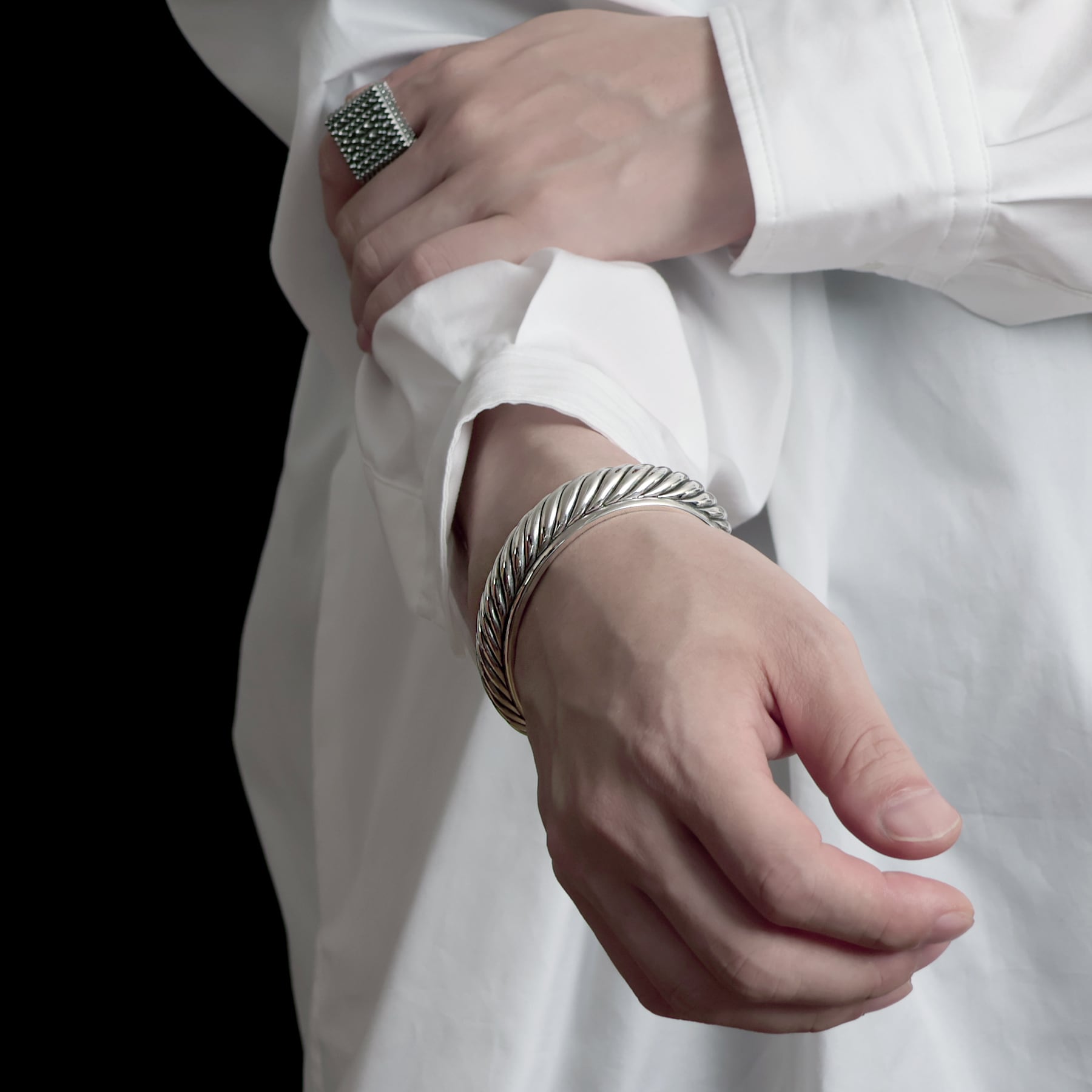 ・ユニセックスで着用できるデザインであり、レザーや他の華奢なチェーンブレスレットとのレイヤードも効果的。