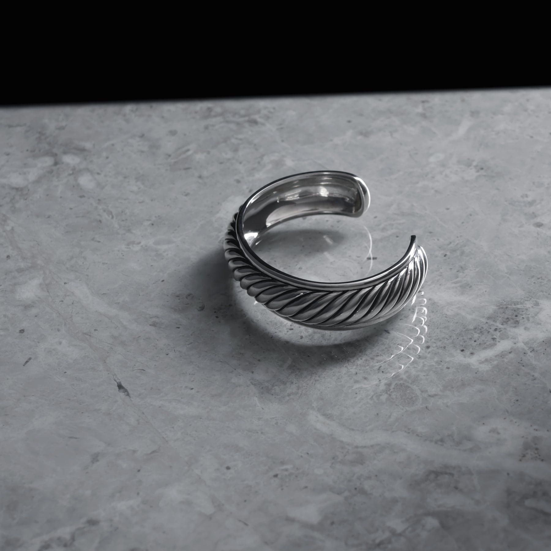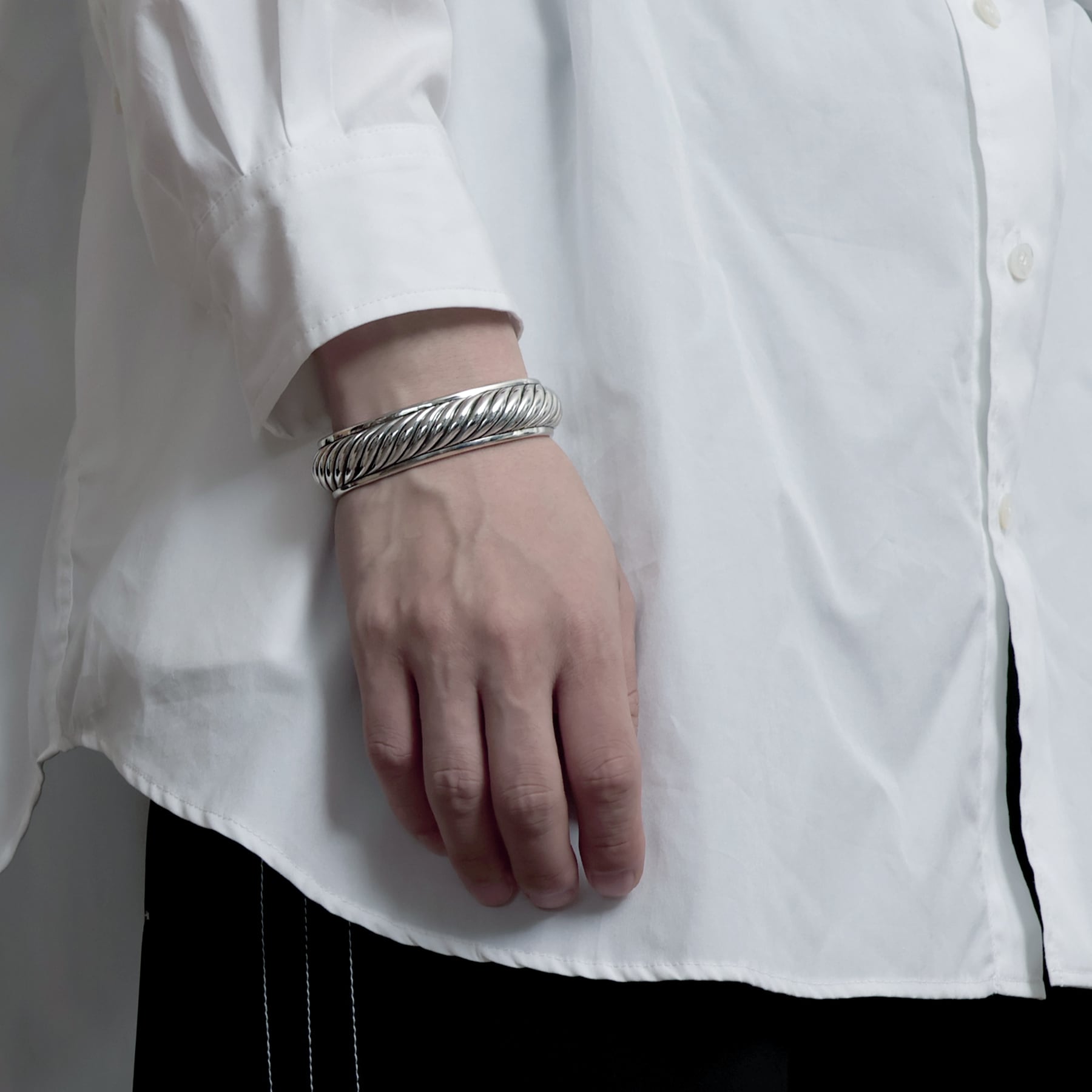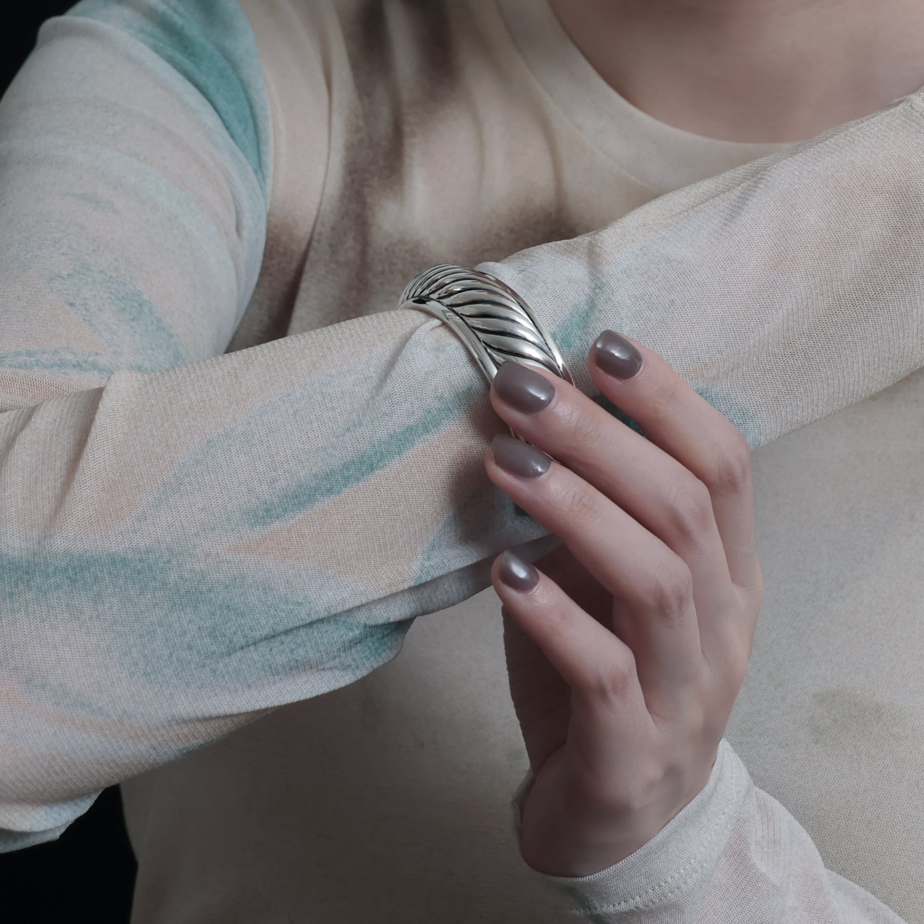 ・ロープ状に捻られた畝模様が力強さを強調する一方、立体的な膨らみを持ち丸みのあるフォルムは柔らかな印象をもたらし、動的な印象と深みのある静的印象を両立。