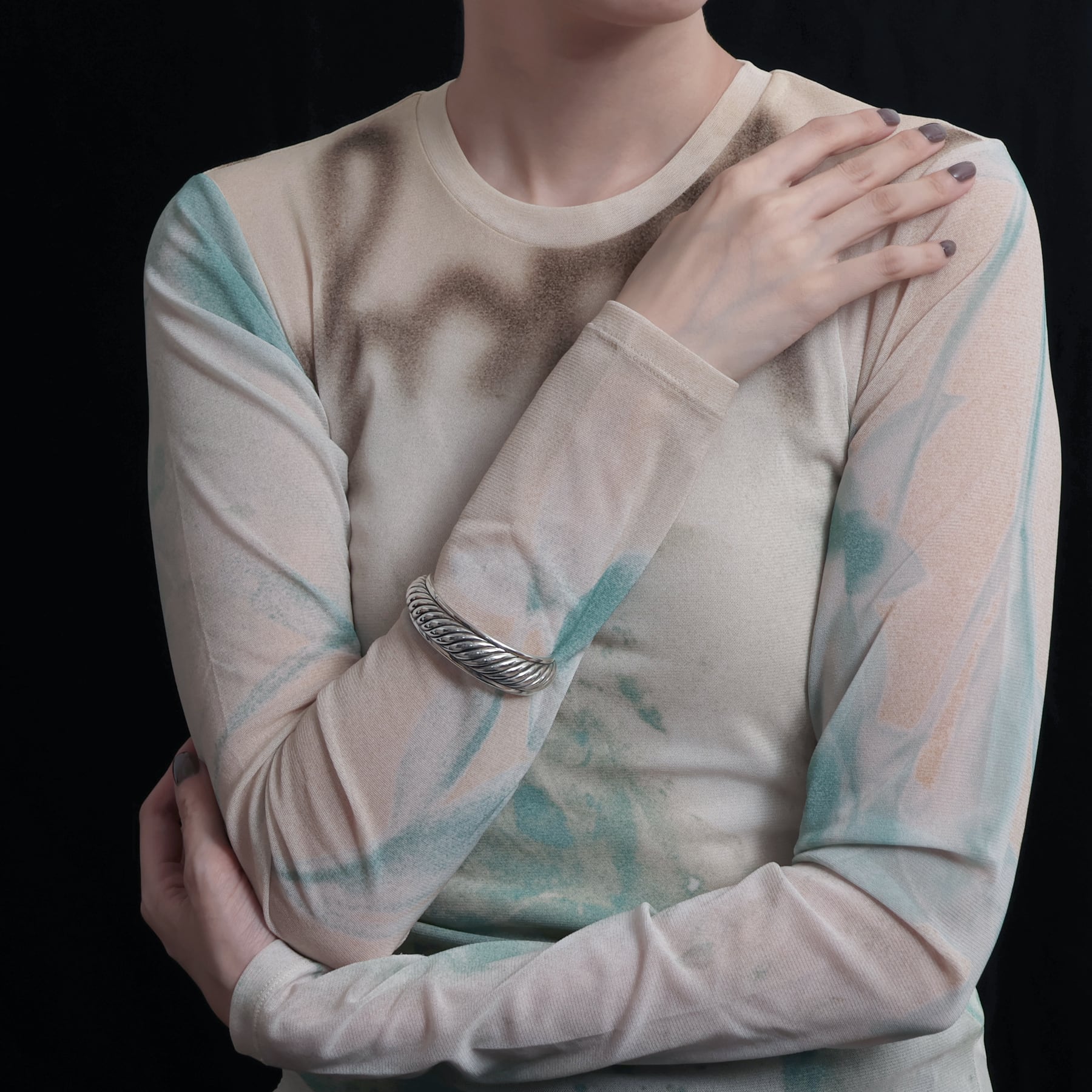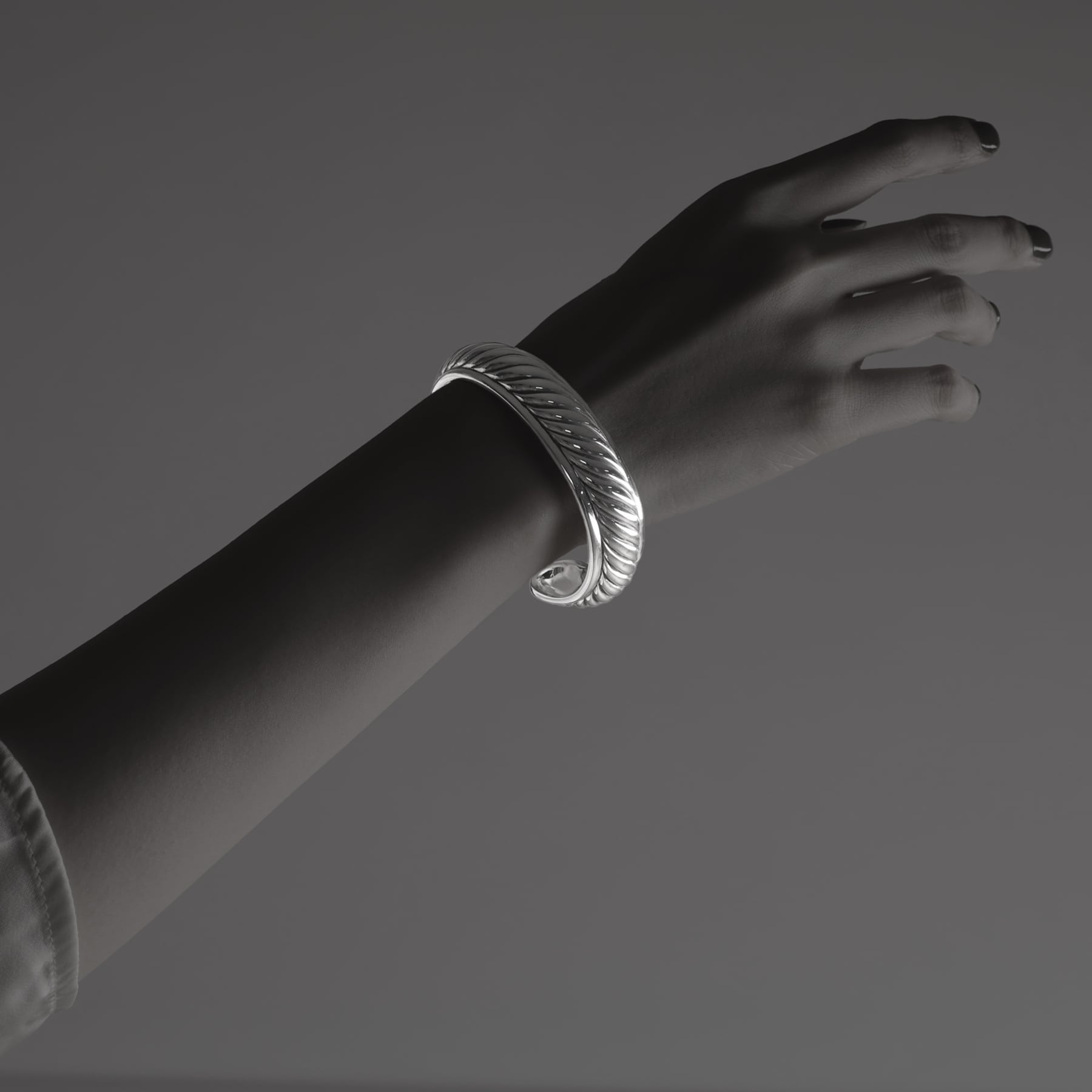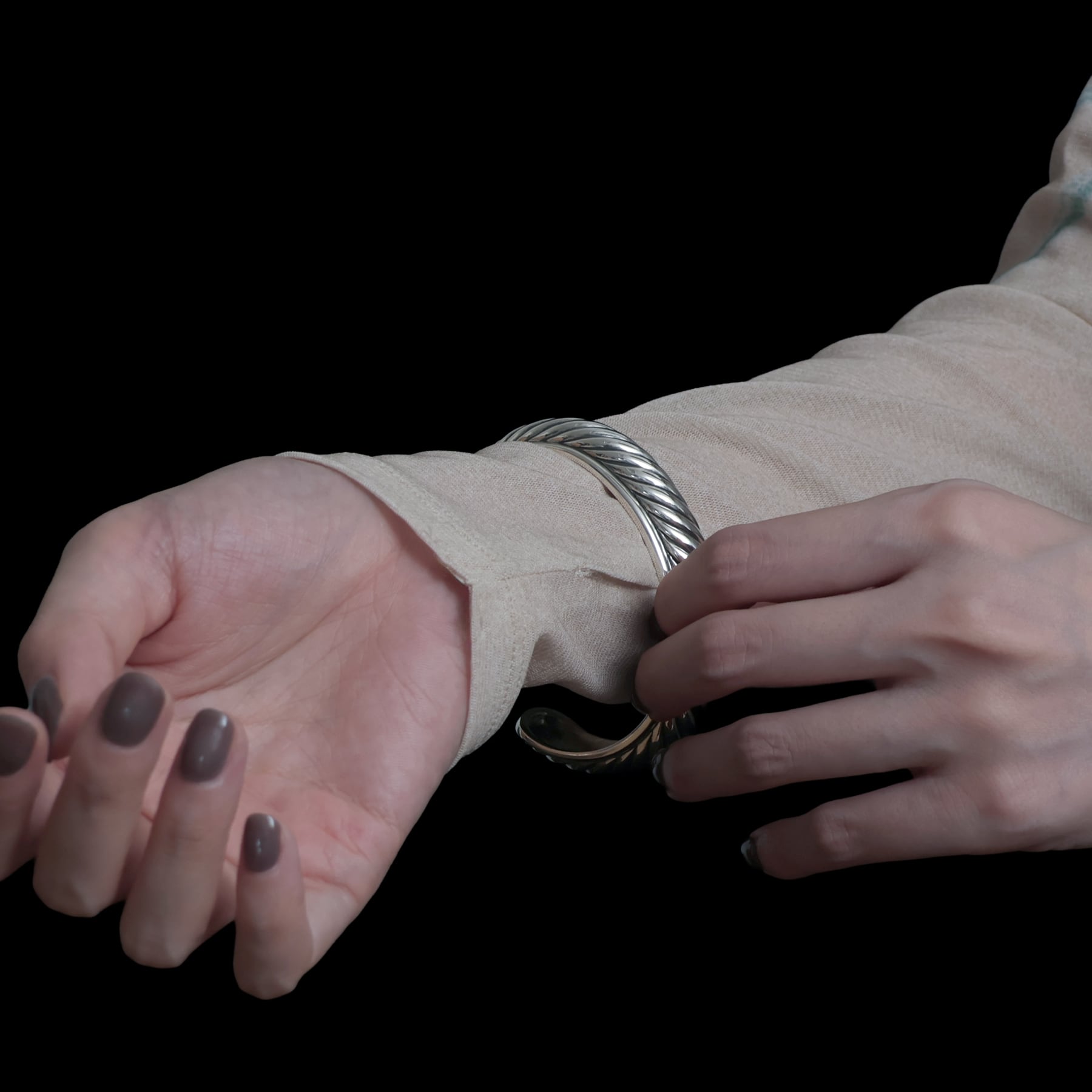・ロープ状に捻られた畝模様が力強さを強調する一方、立体的な膨らみを持ち丸みのあるフォルムは柔らかな印象をもたらし、動的な印象と深みのある静的印象を両立。