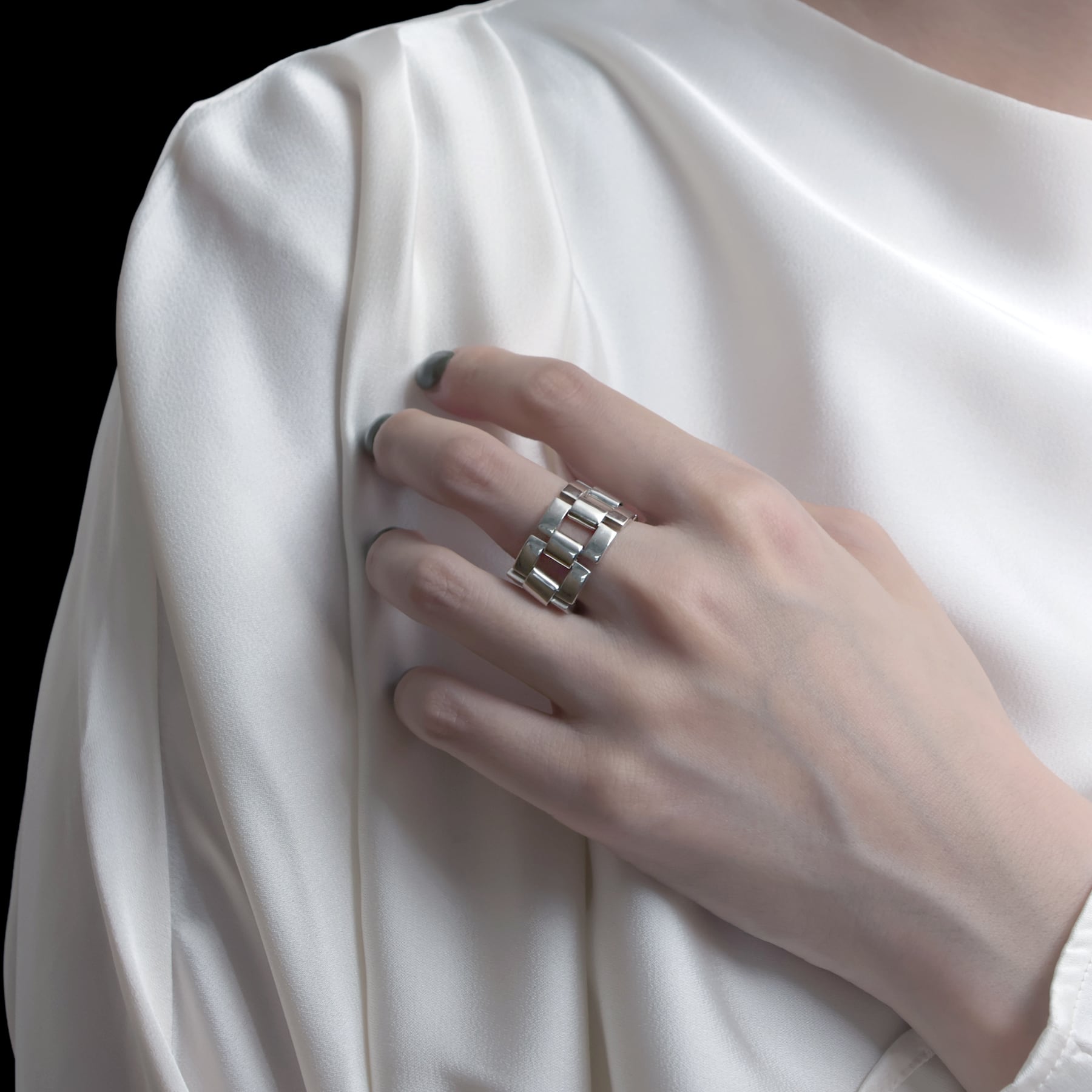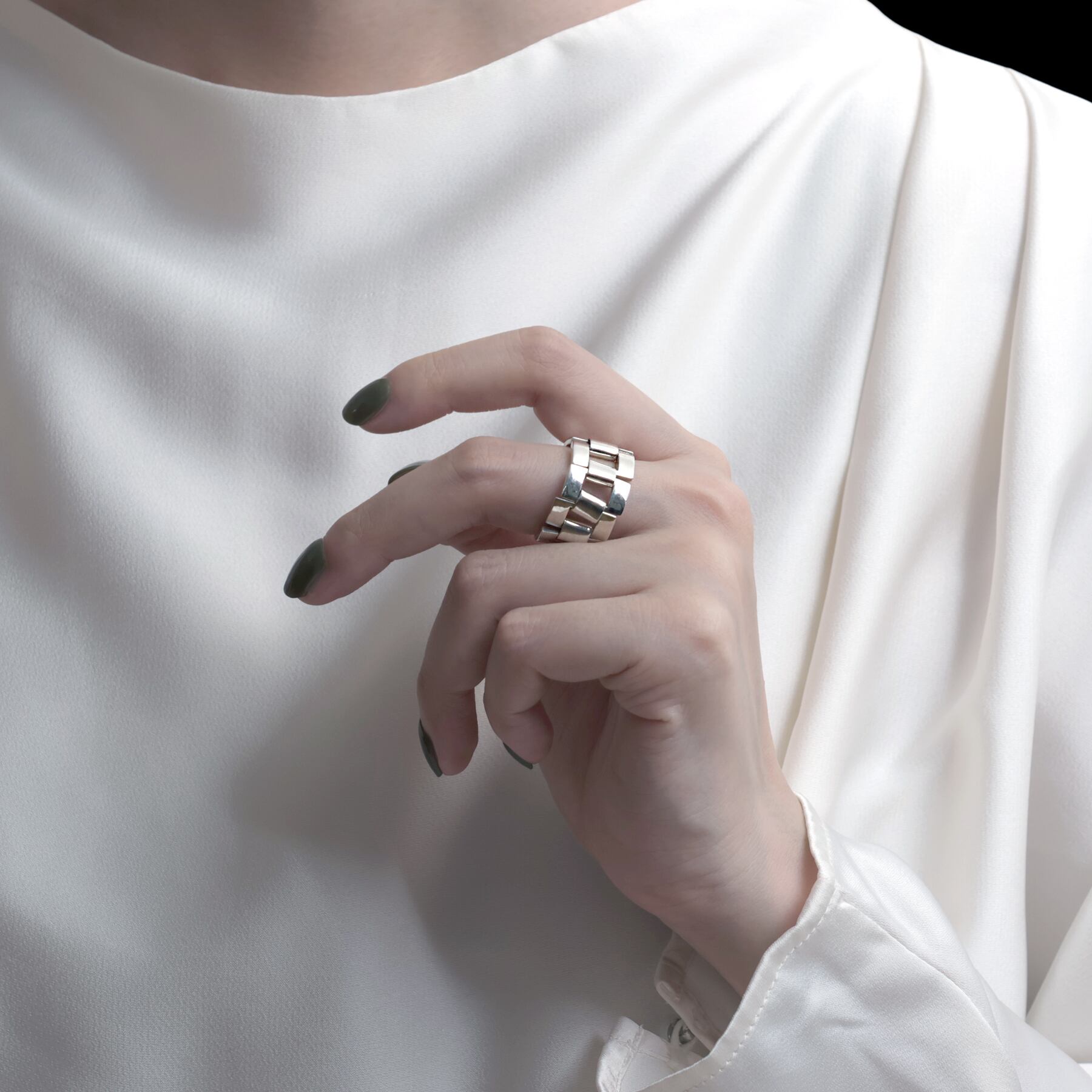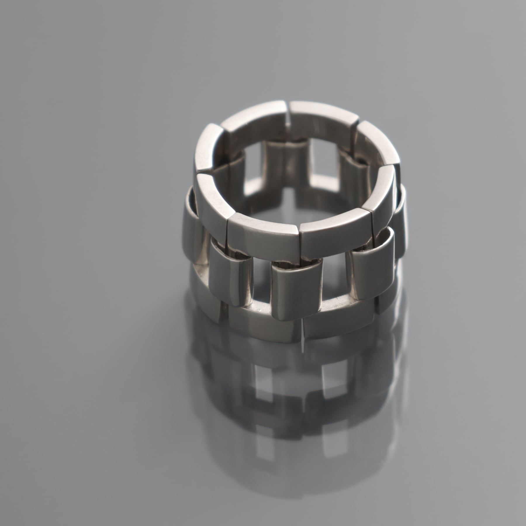 ・精巧に造られたパーツを一つひとつ継ぎ合わせ、緻密な構造美となったリング。