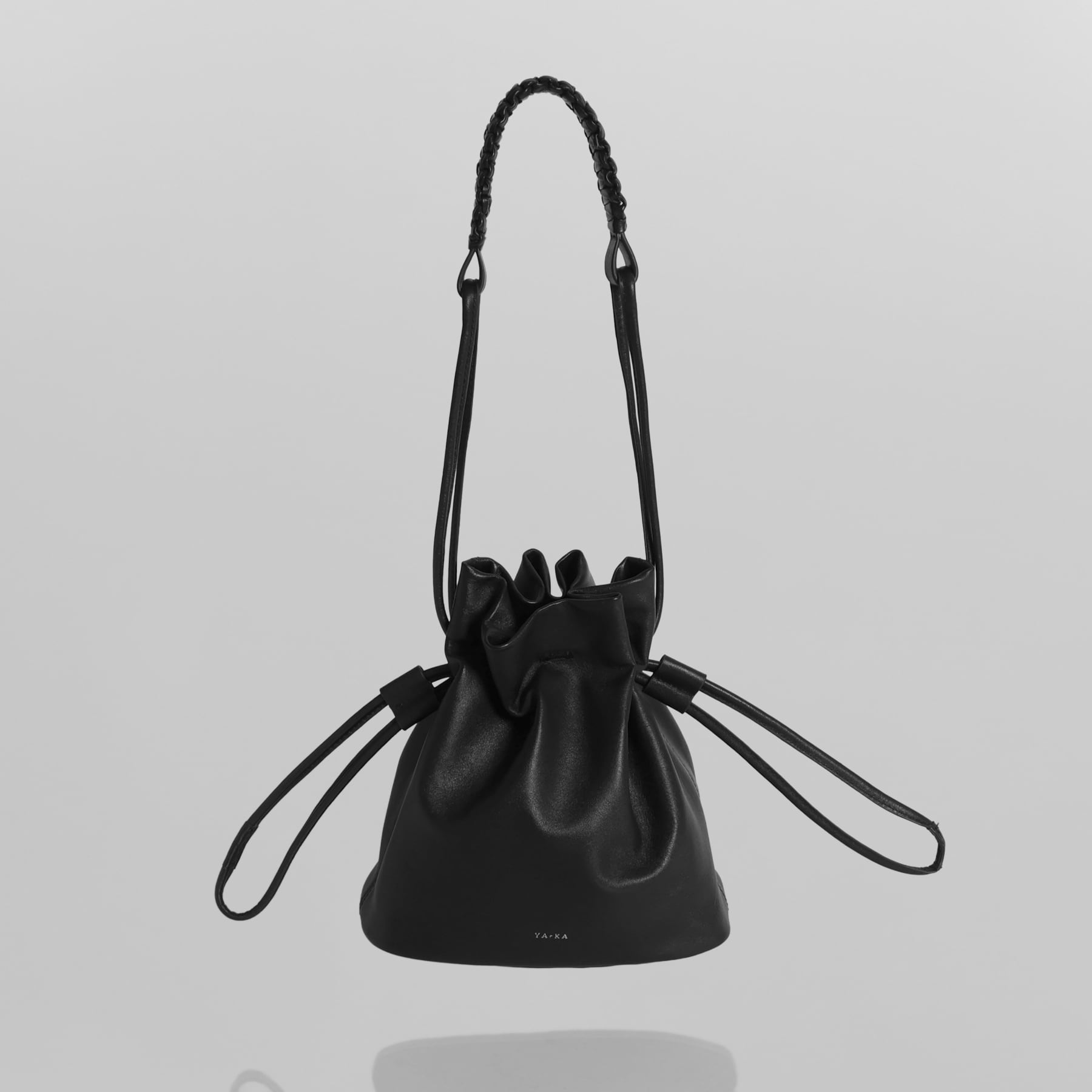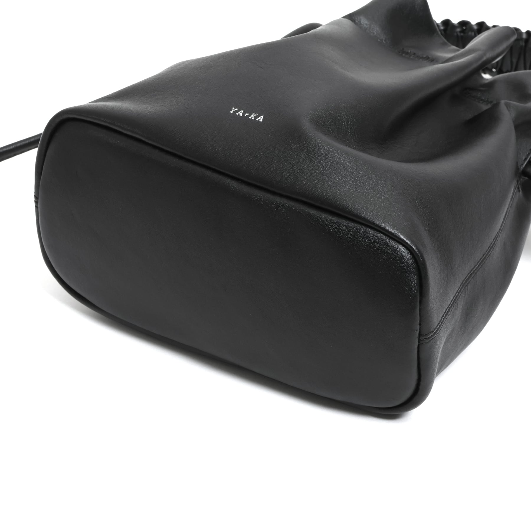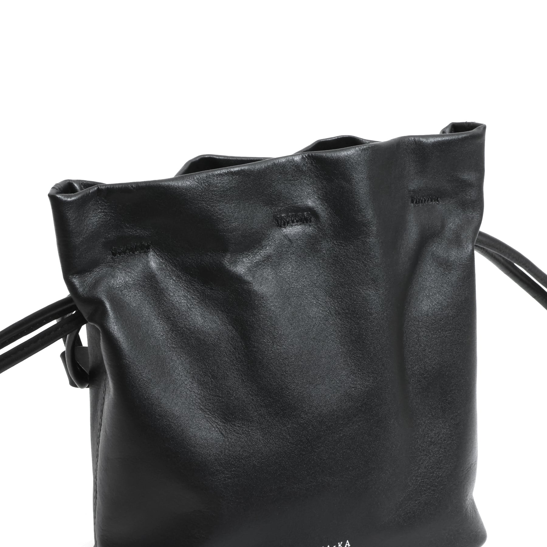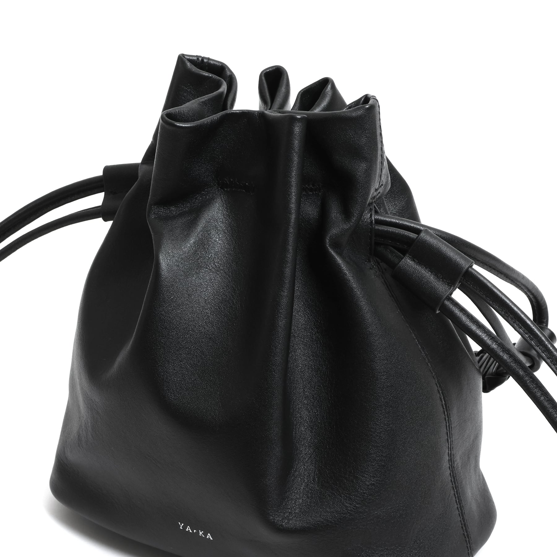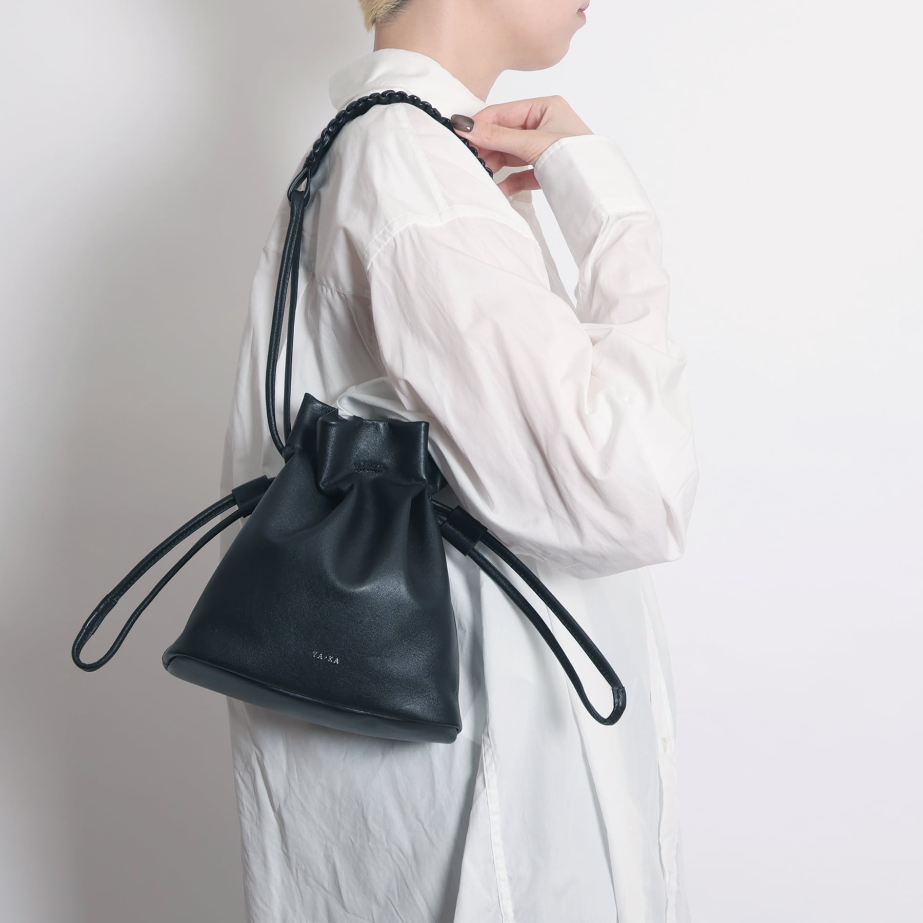 ・レザーの柔らかな質感を生かし、くしゅっとしたドレープ感のある巾着型に仕上げ抜け感を演出したアイテム。