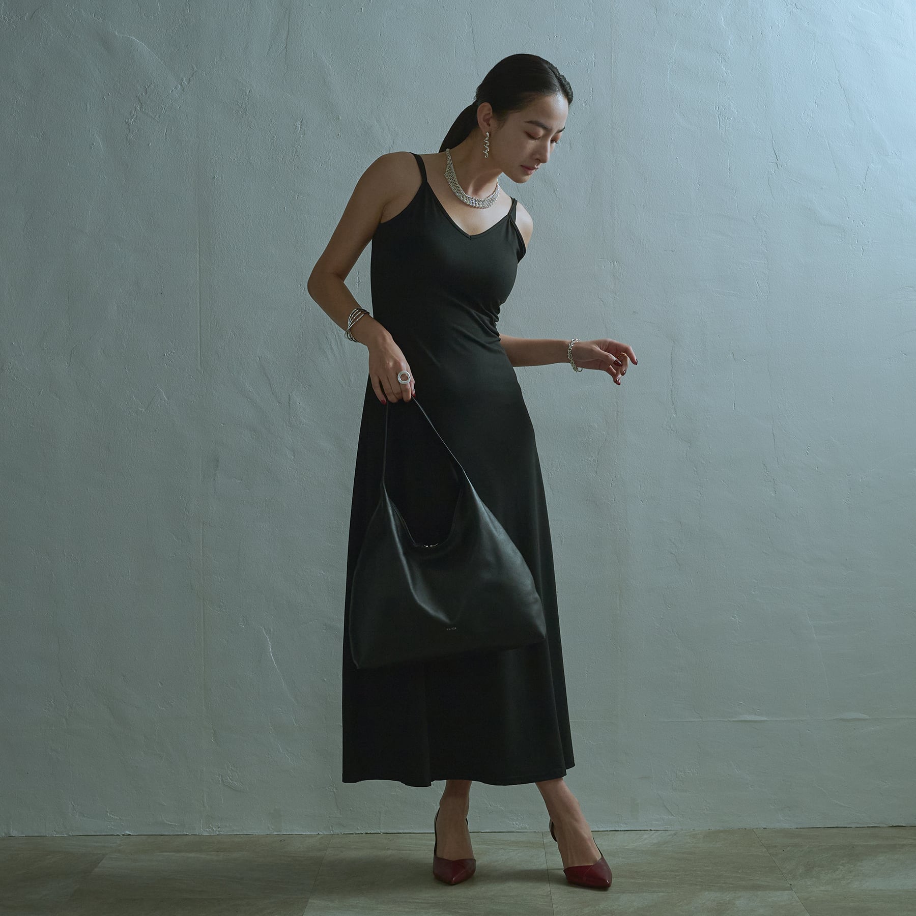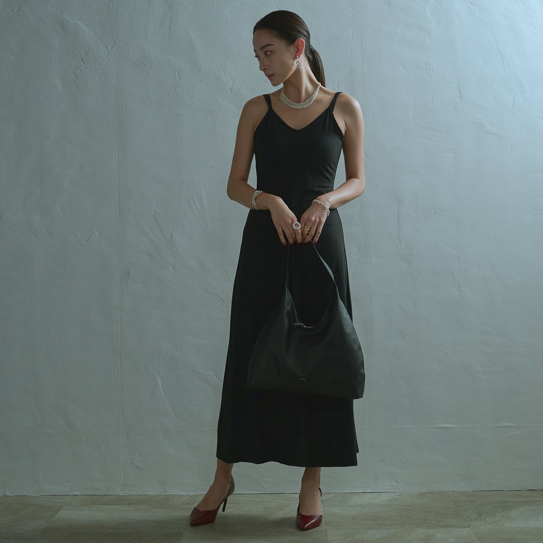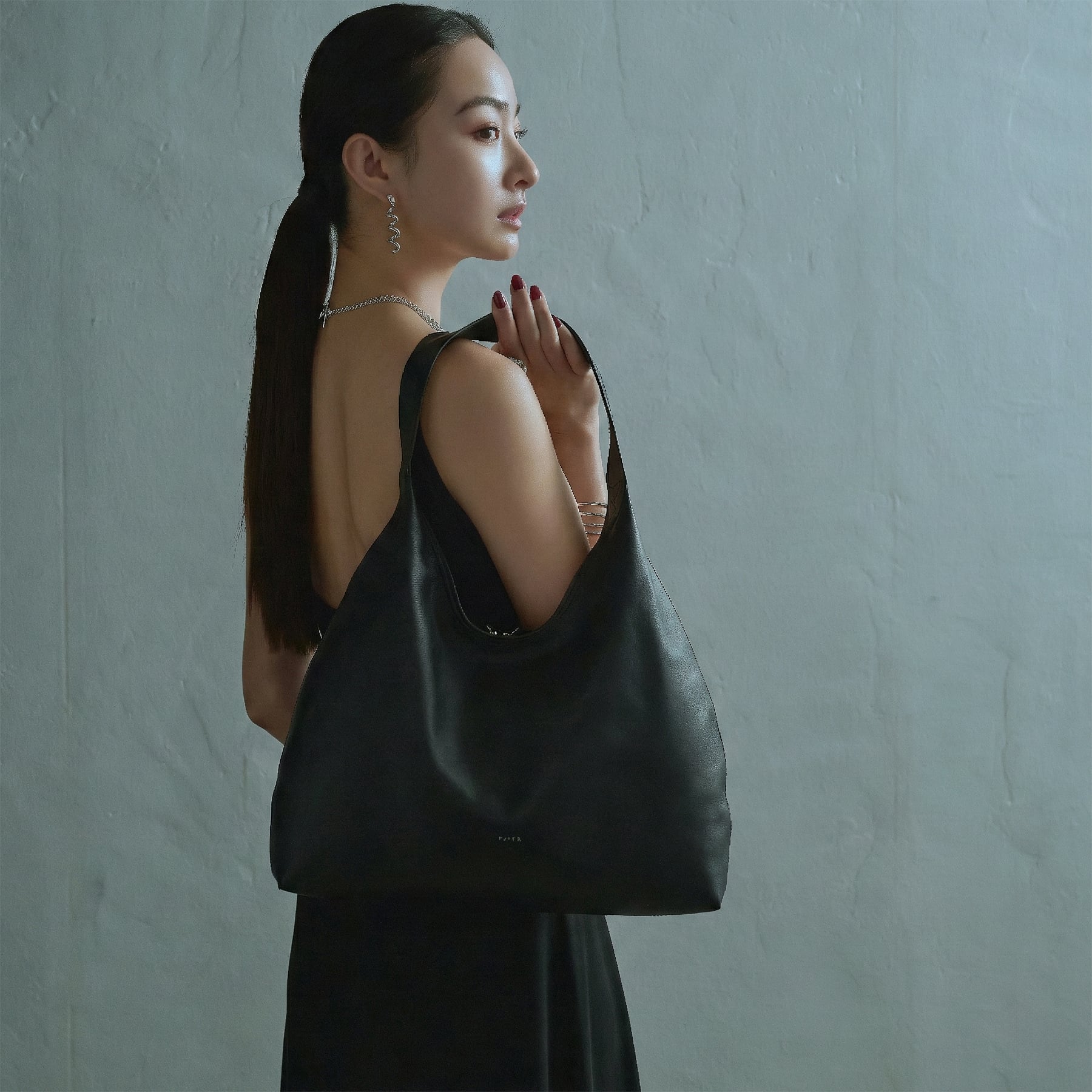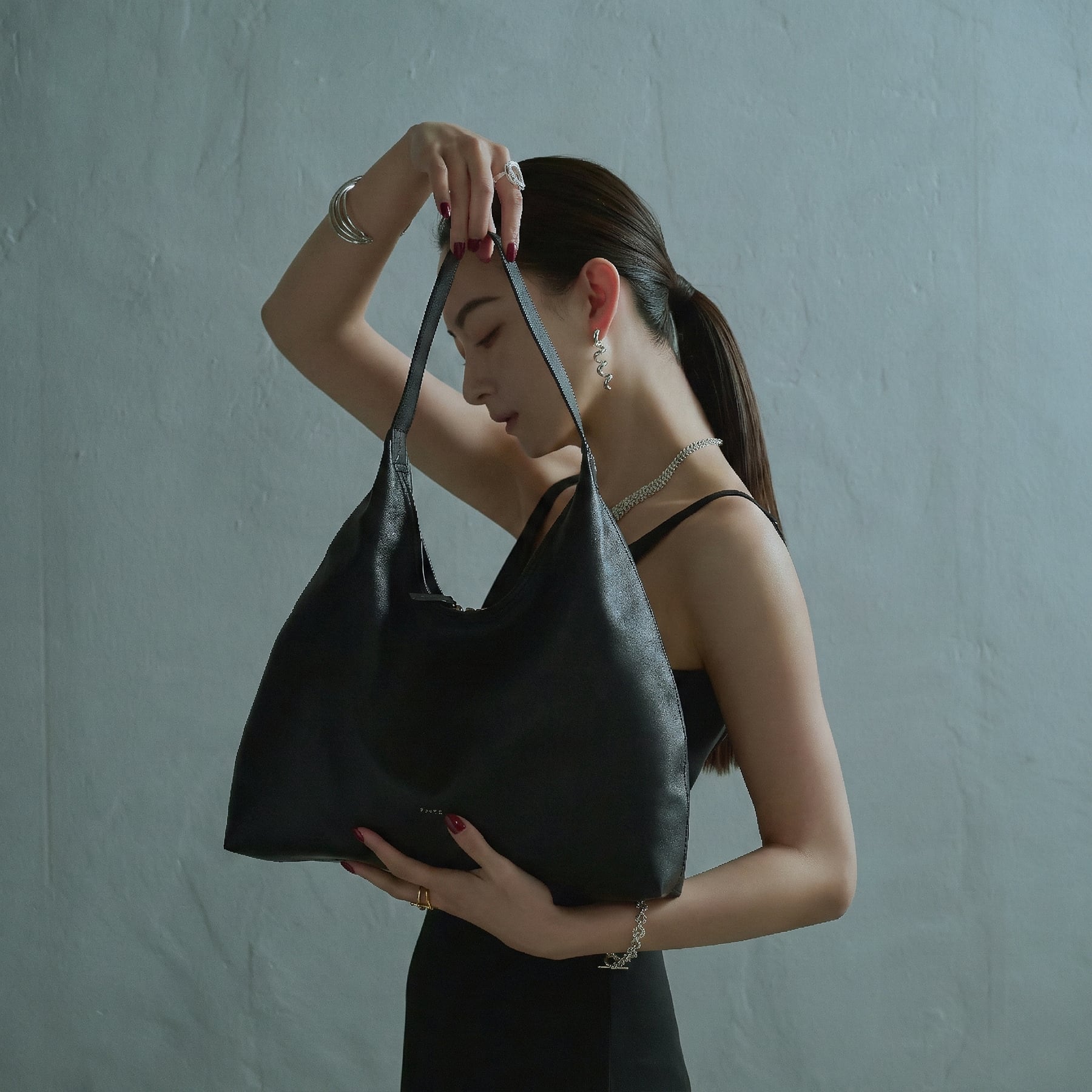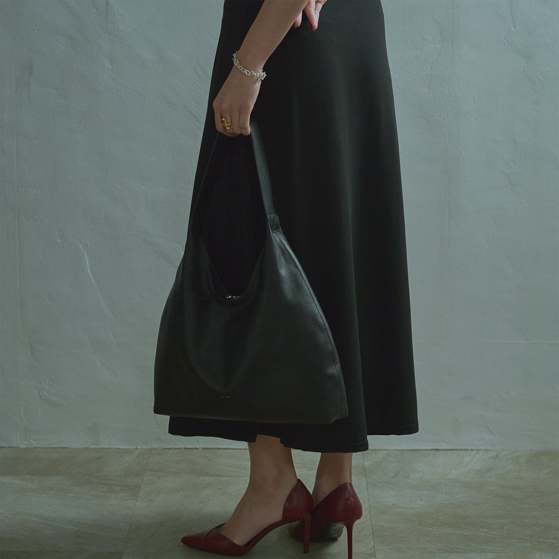・持つことで重心が下がり皮の柔らかさにより独特のドレープが生まれる。