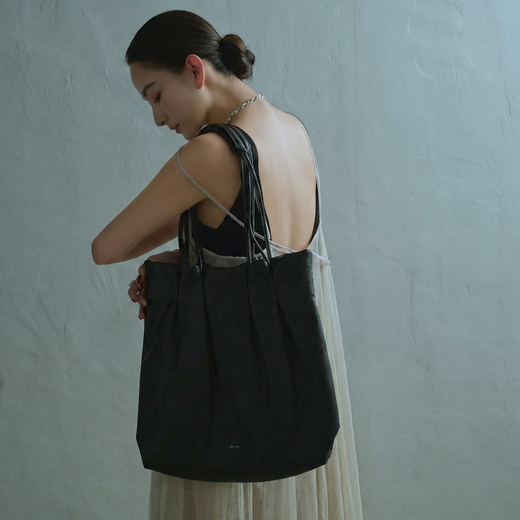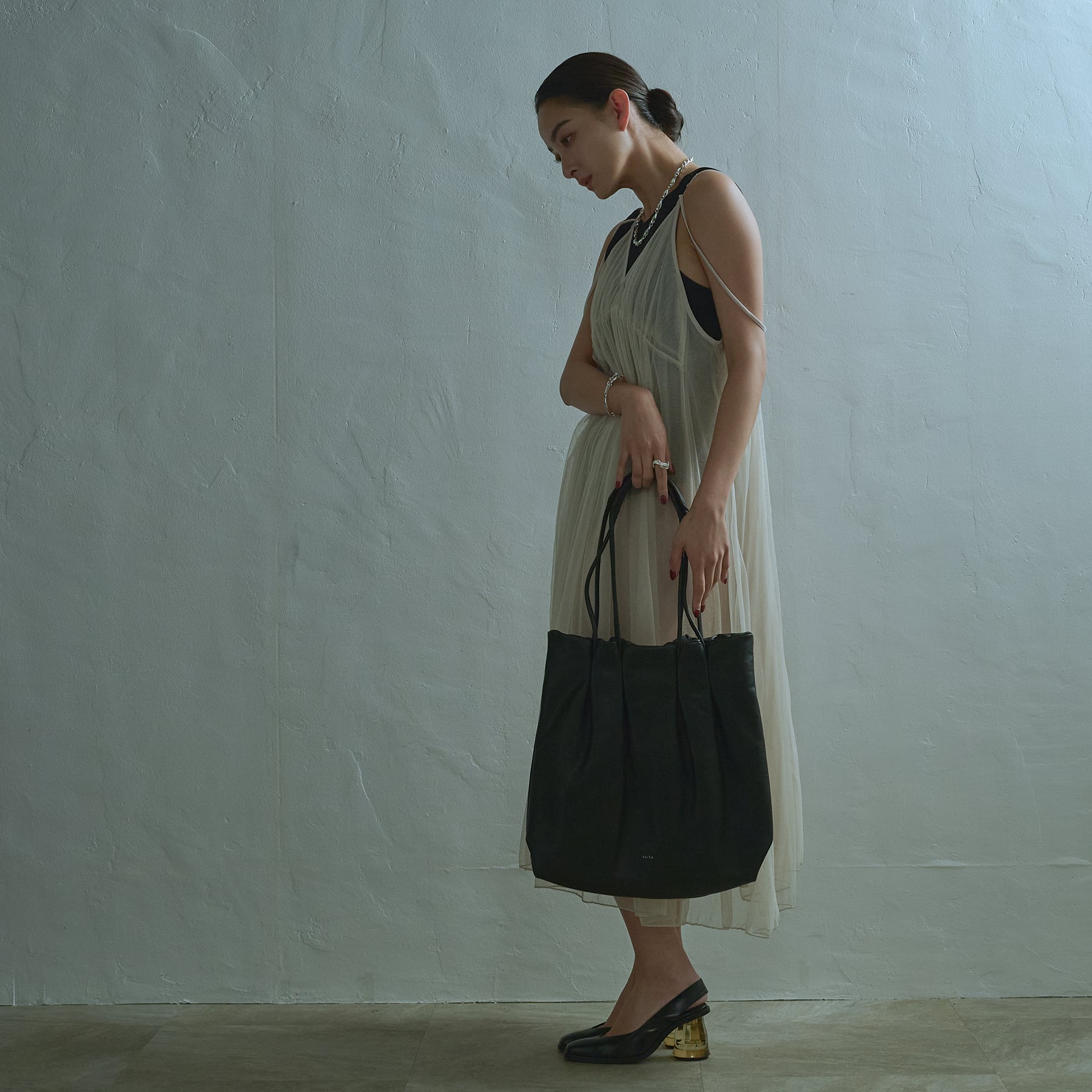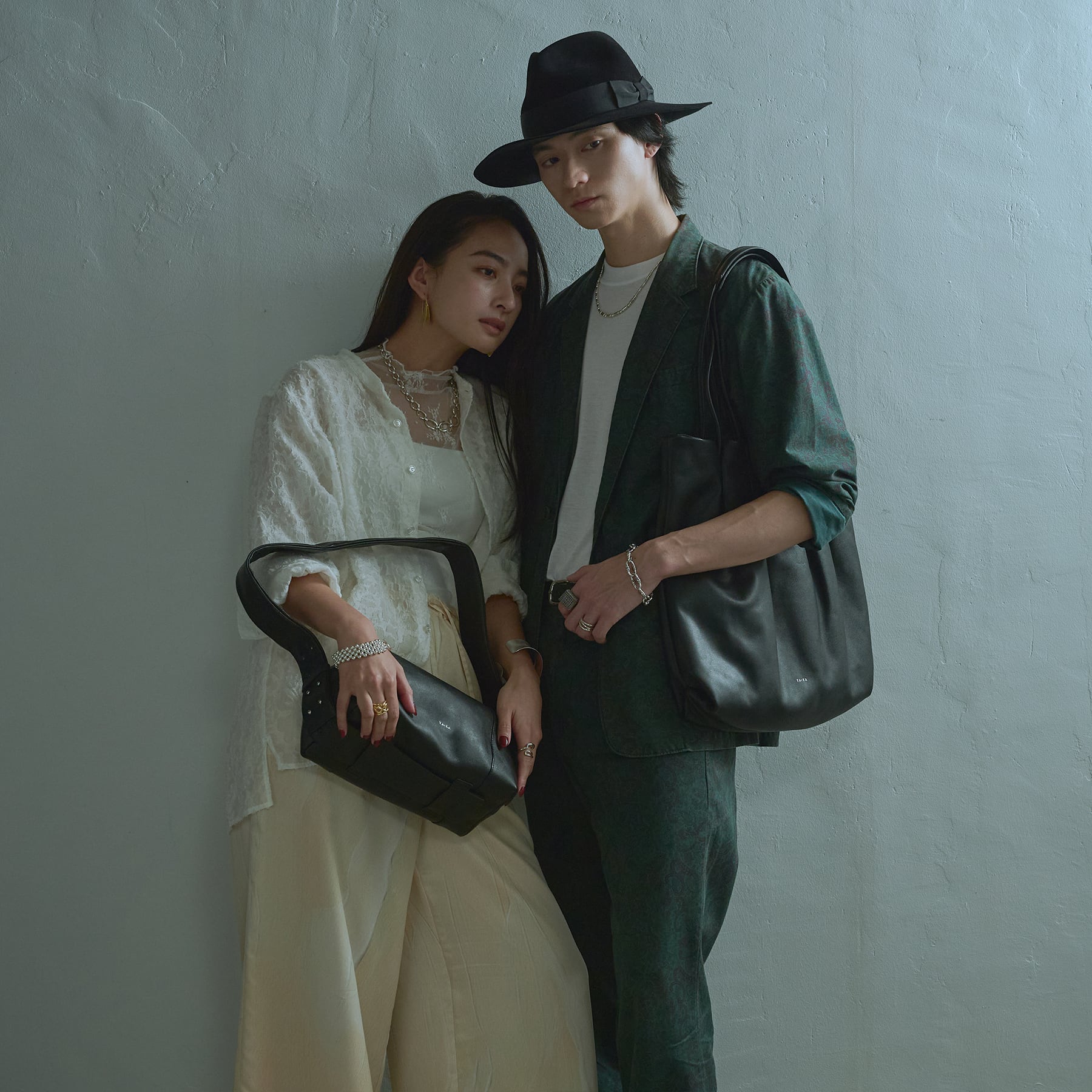 ・革の柔らかさとシルエットのふんわり感を演出するためのデザインが新鮮なアイテム。