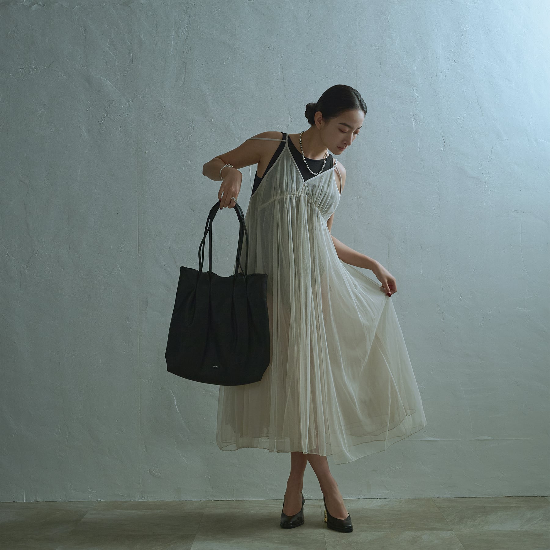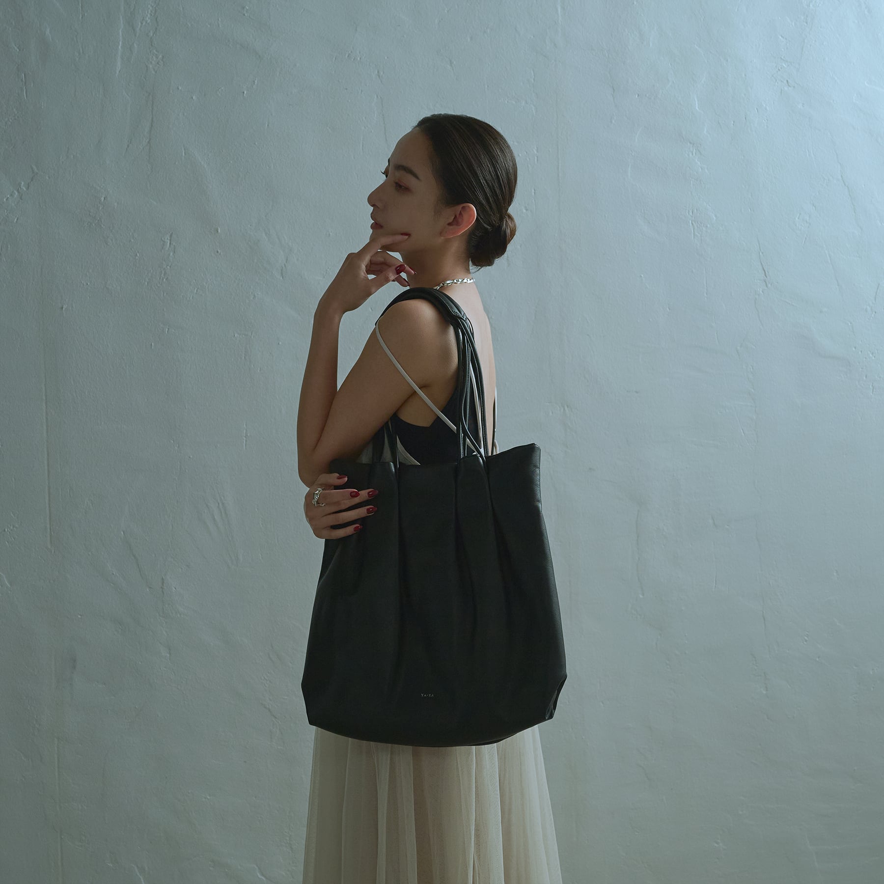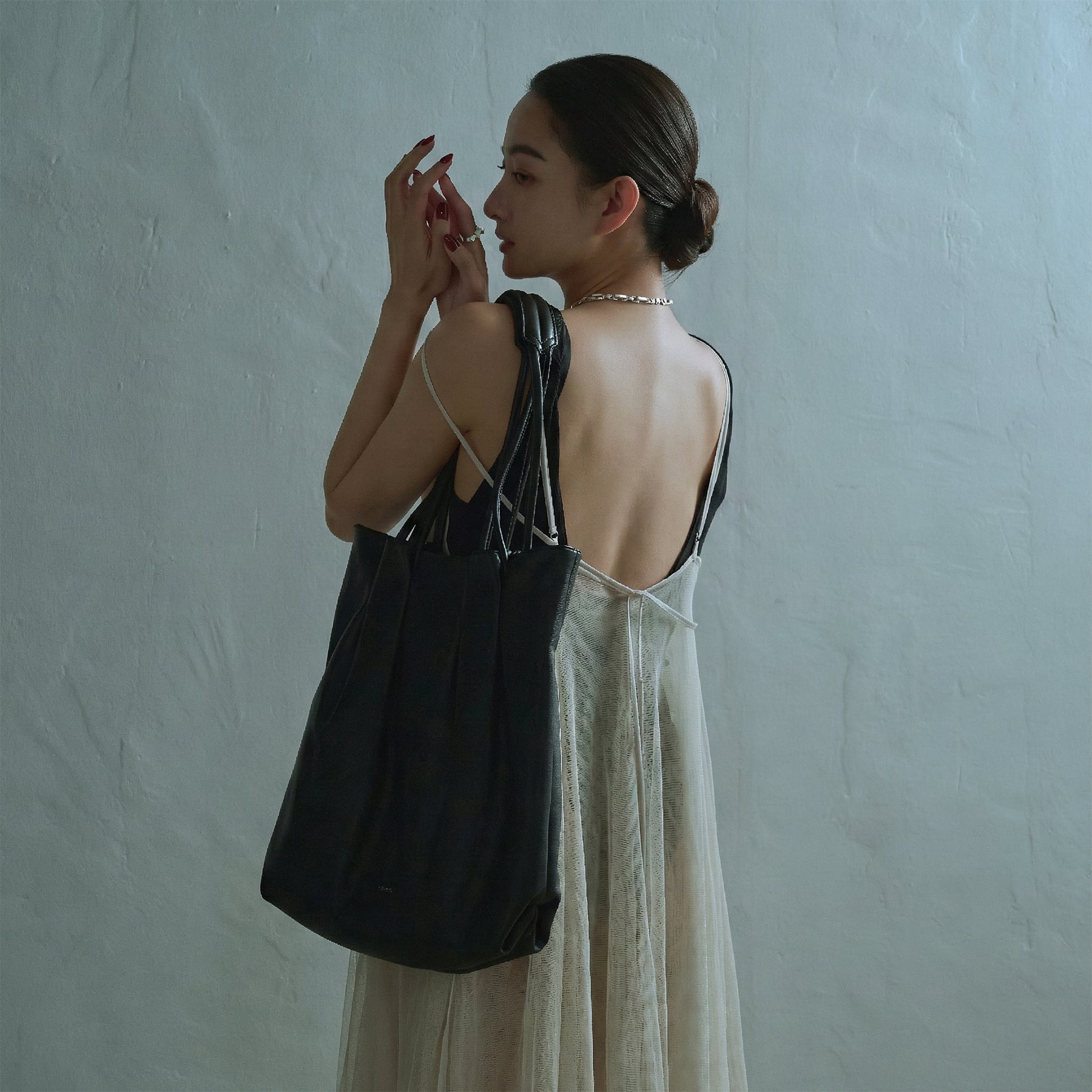 ・革の柔らかさとシルエットのふんわり感を演出するためのデザインが新鮮なアイテム。