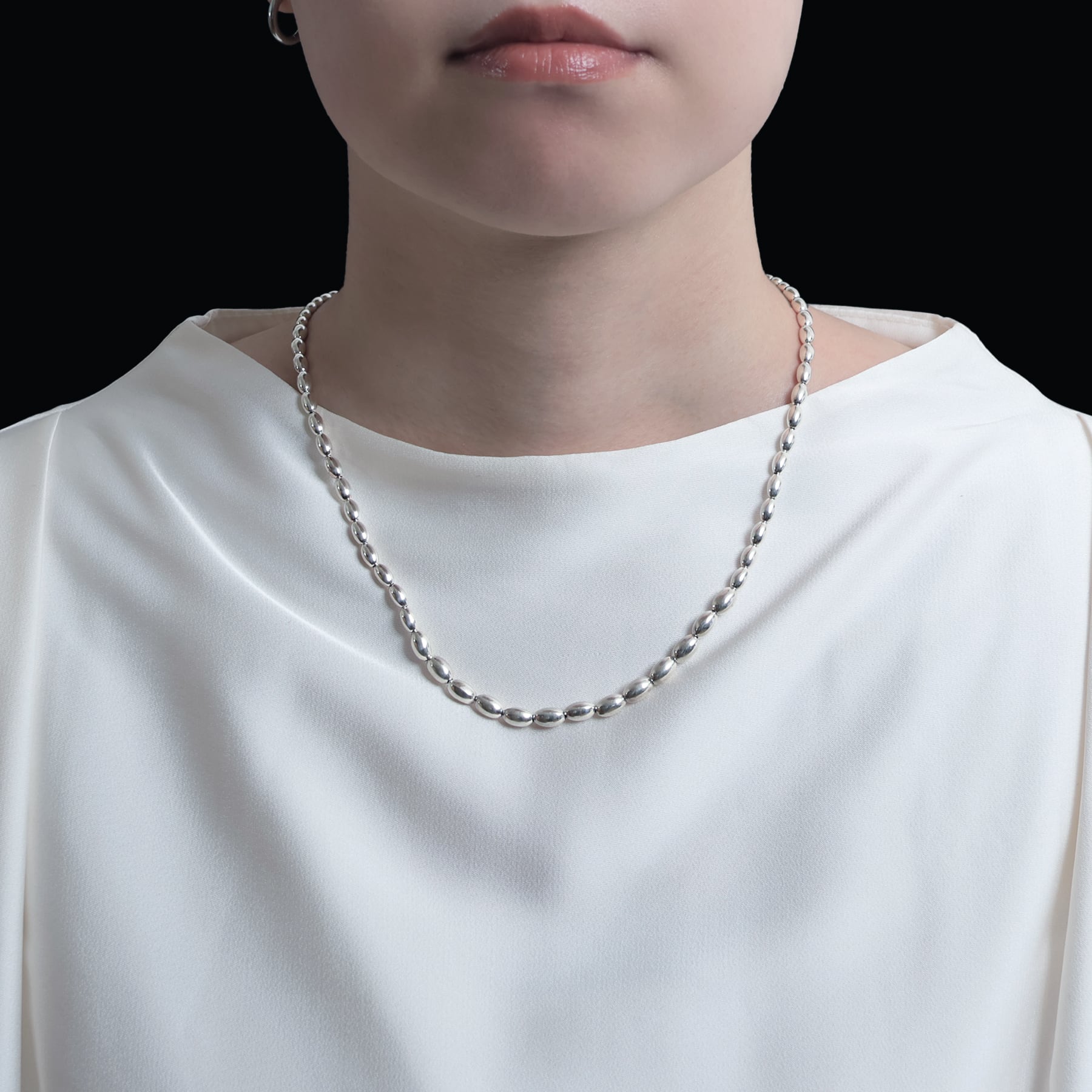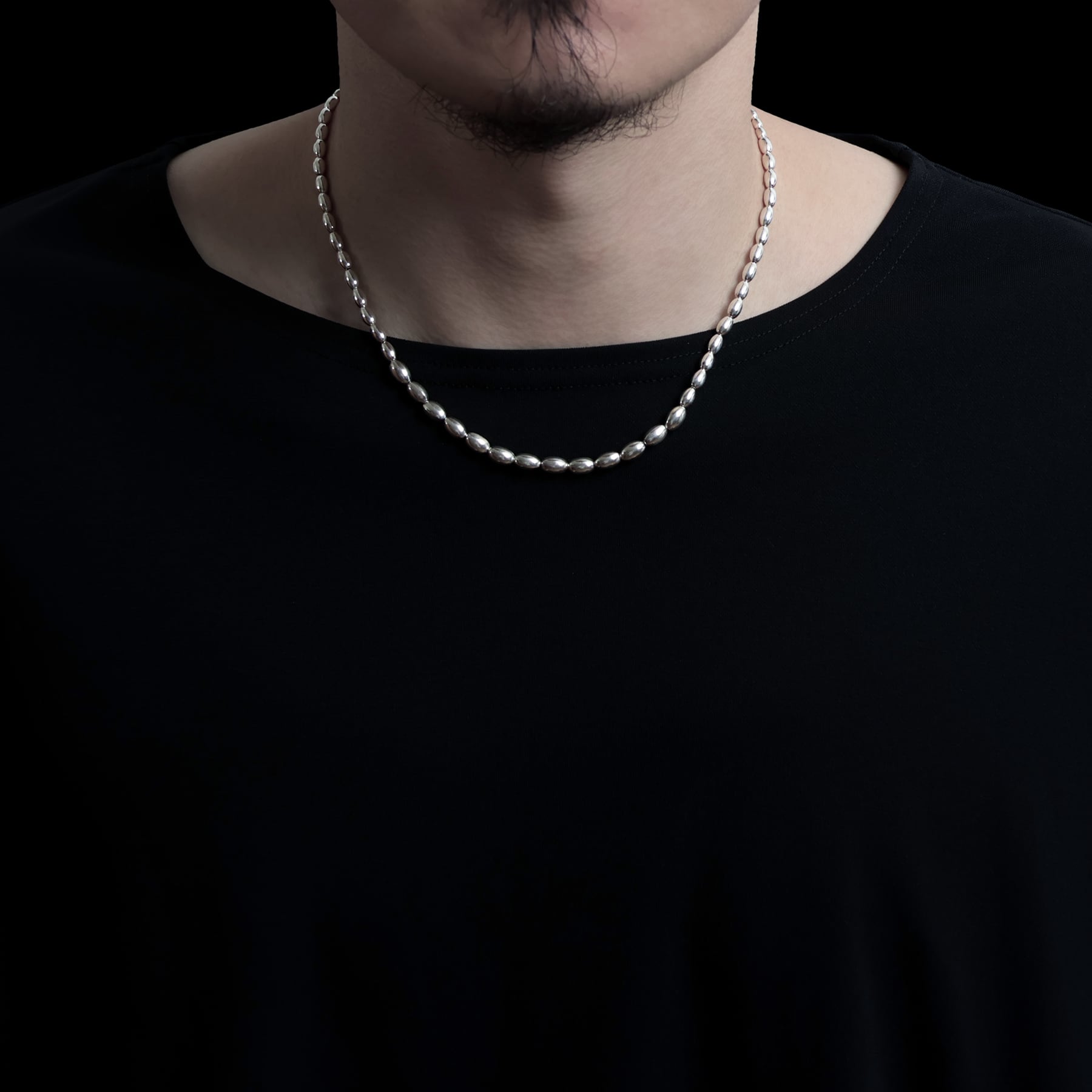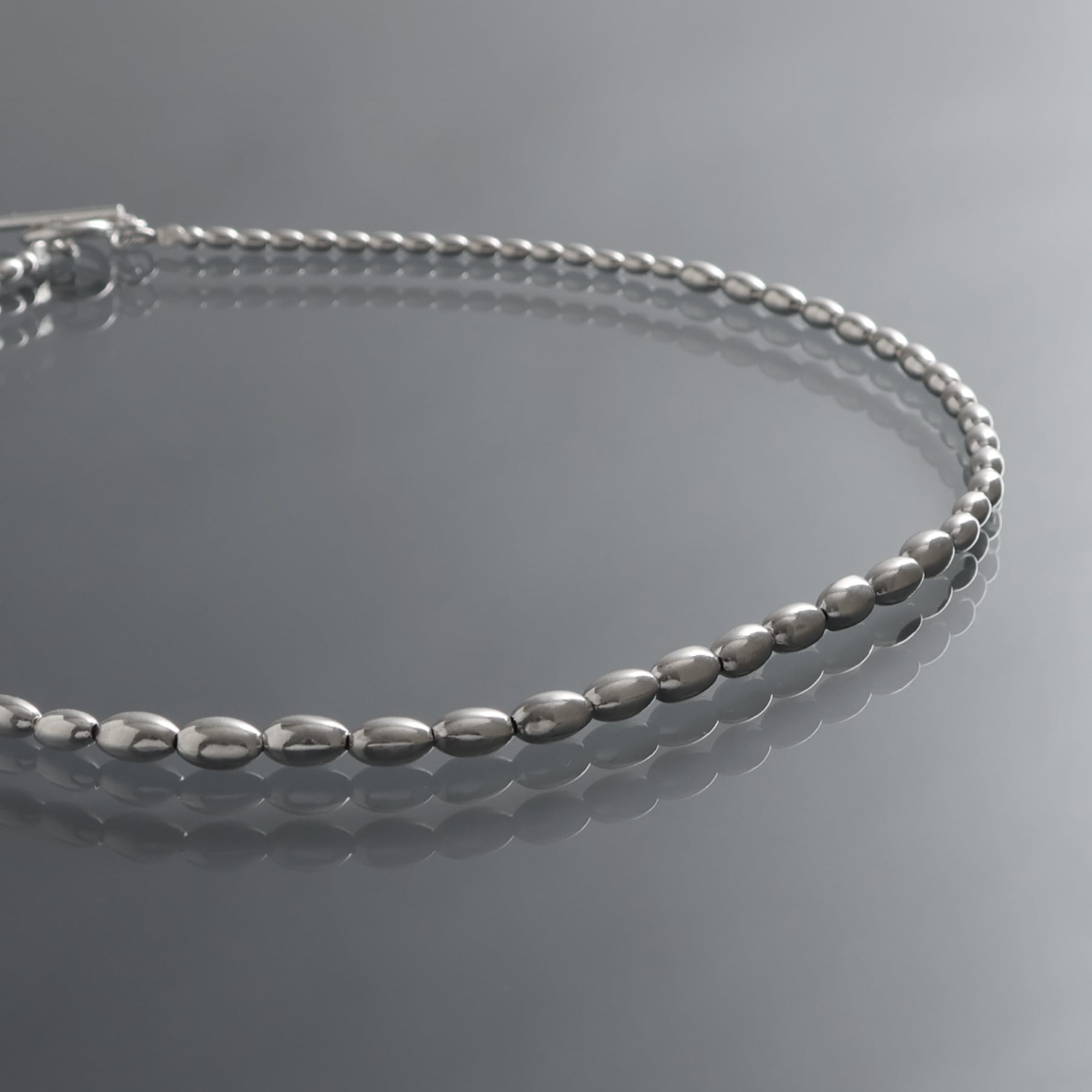 ・グラデーション配置が特徴的なシルバービーズを連ねたシンプルネックレス。