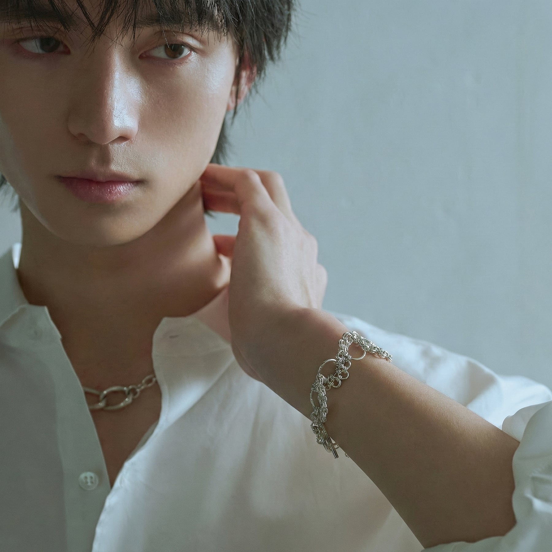 規則的で狂いのない円環の反復は織物のようにしなやかな柔らかと鎧のような重厚を併せ持つ。