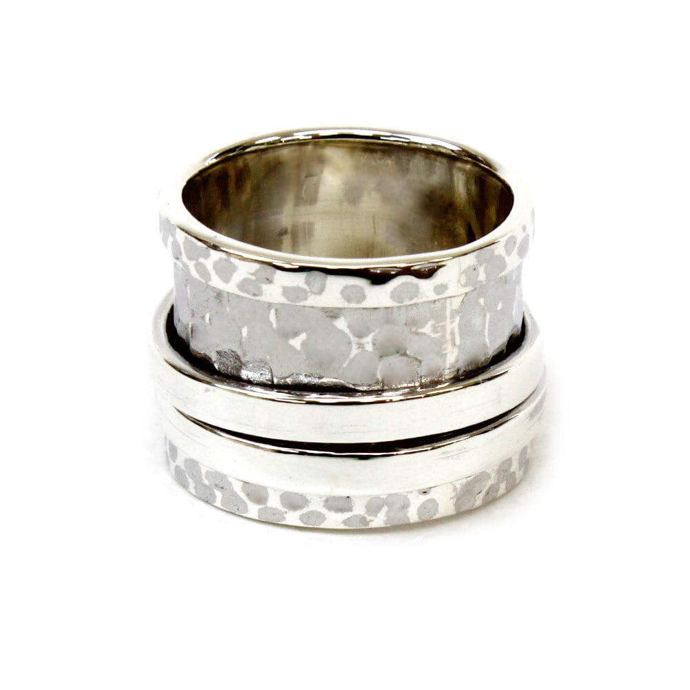 外側のリングは凹凸に、中央のリングは平らなプレートデザインに仕上げました。