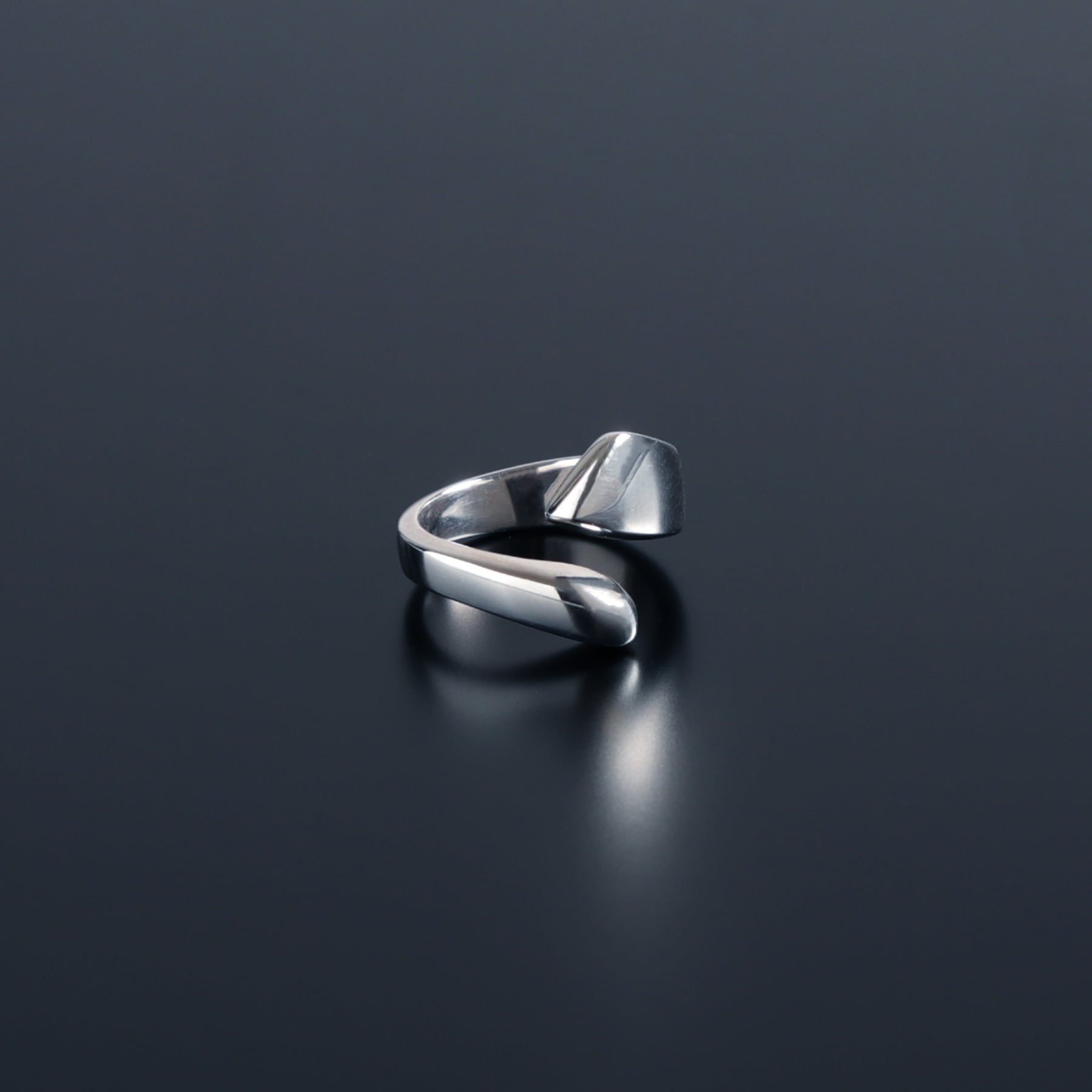 少し厚めな重厚感がありながら、シンプルで洗練されたデザインにより、ハードな印象はなく、エレガントな印象さえあるリング。
