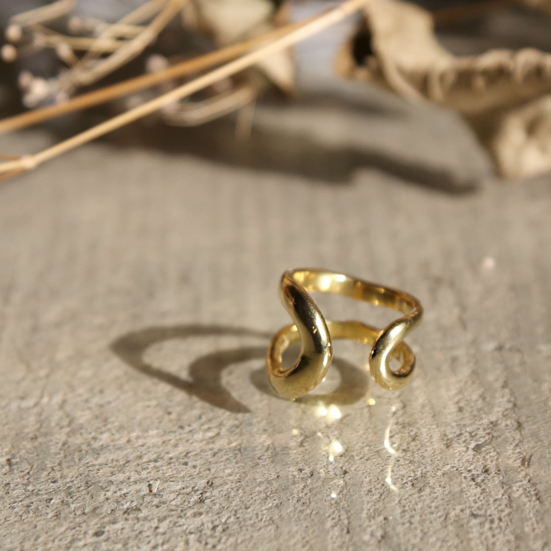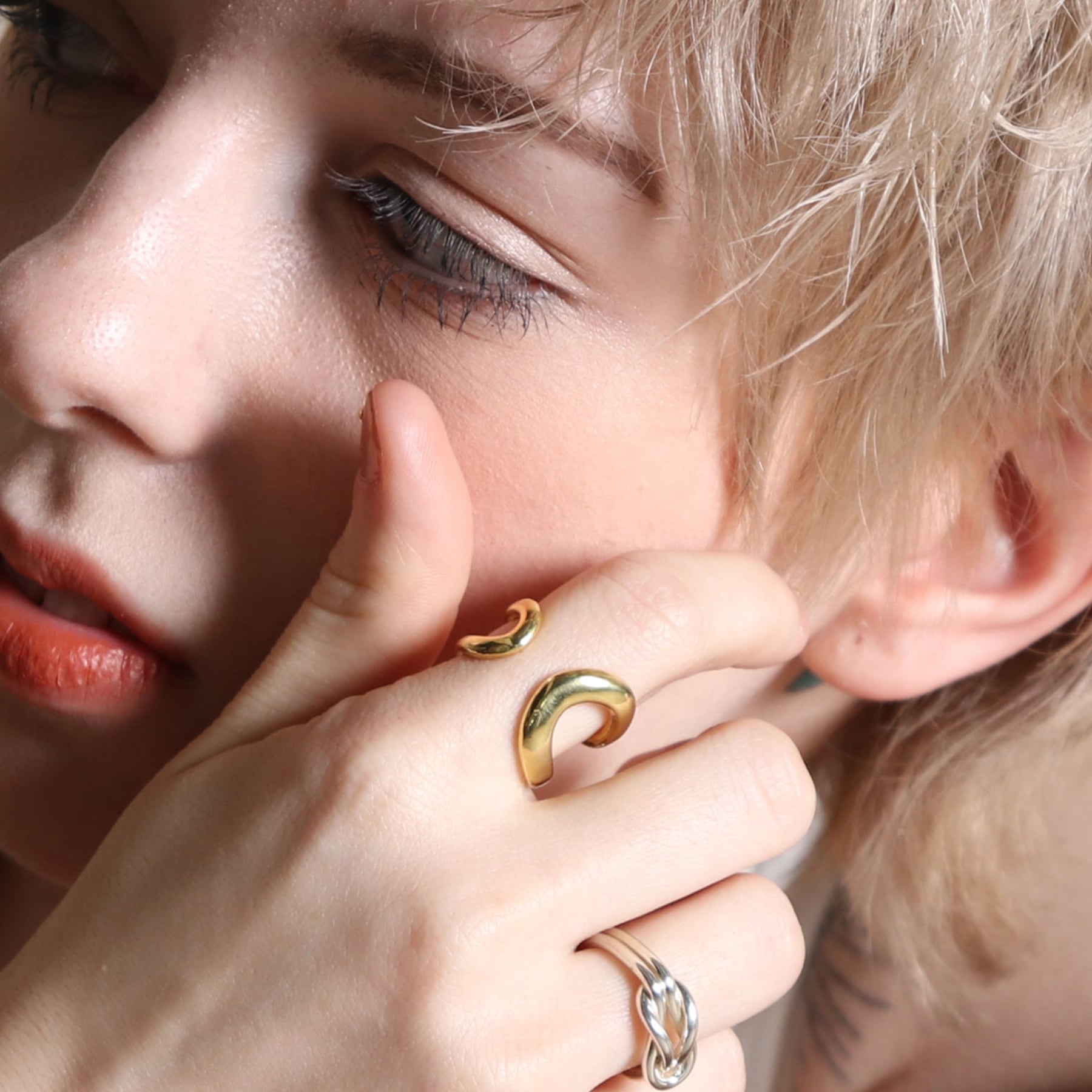 アシンメトリーなデザインながら、シンプルで使いやすいリング。