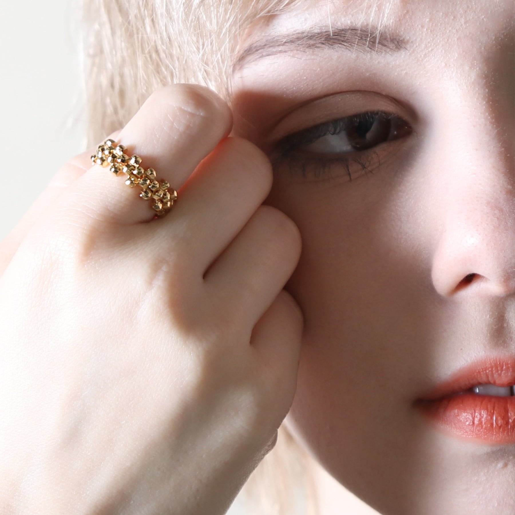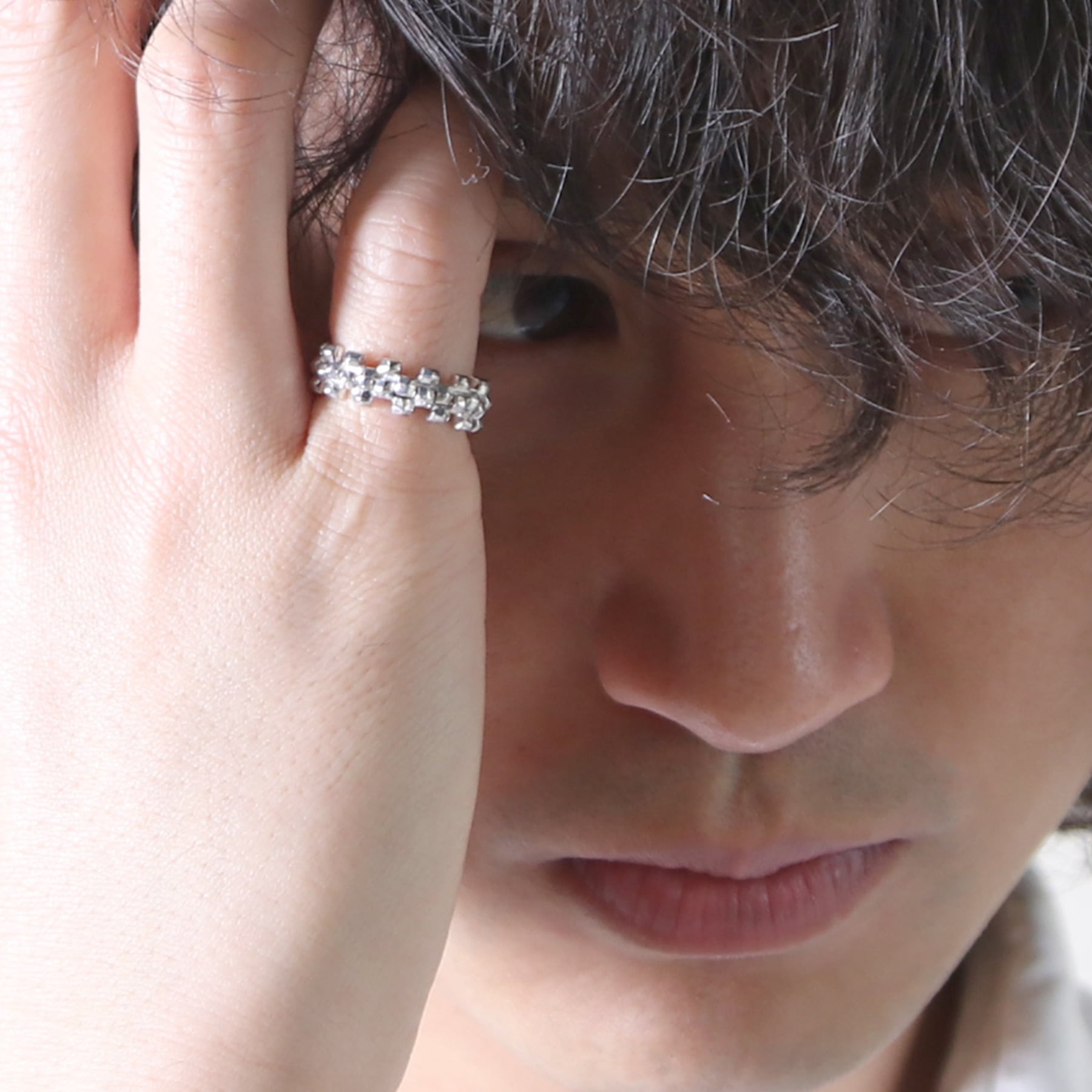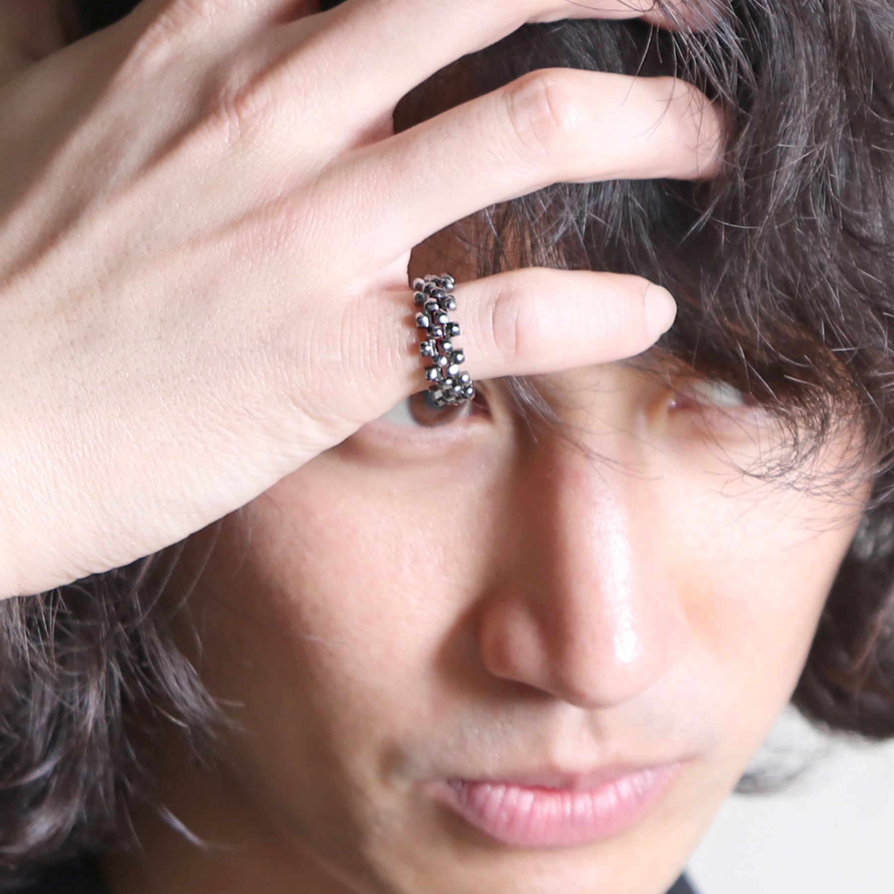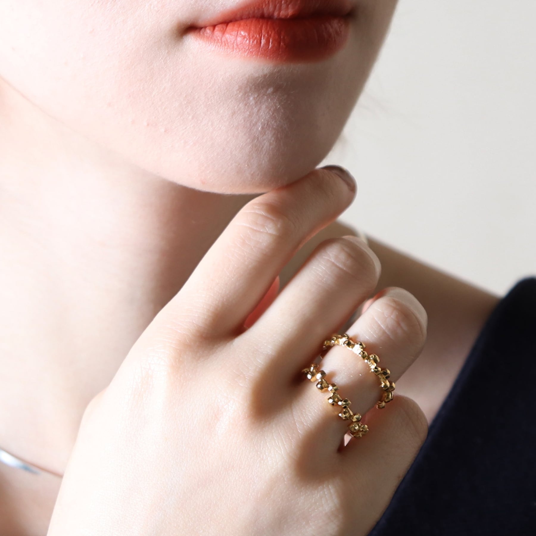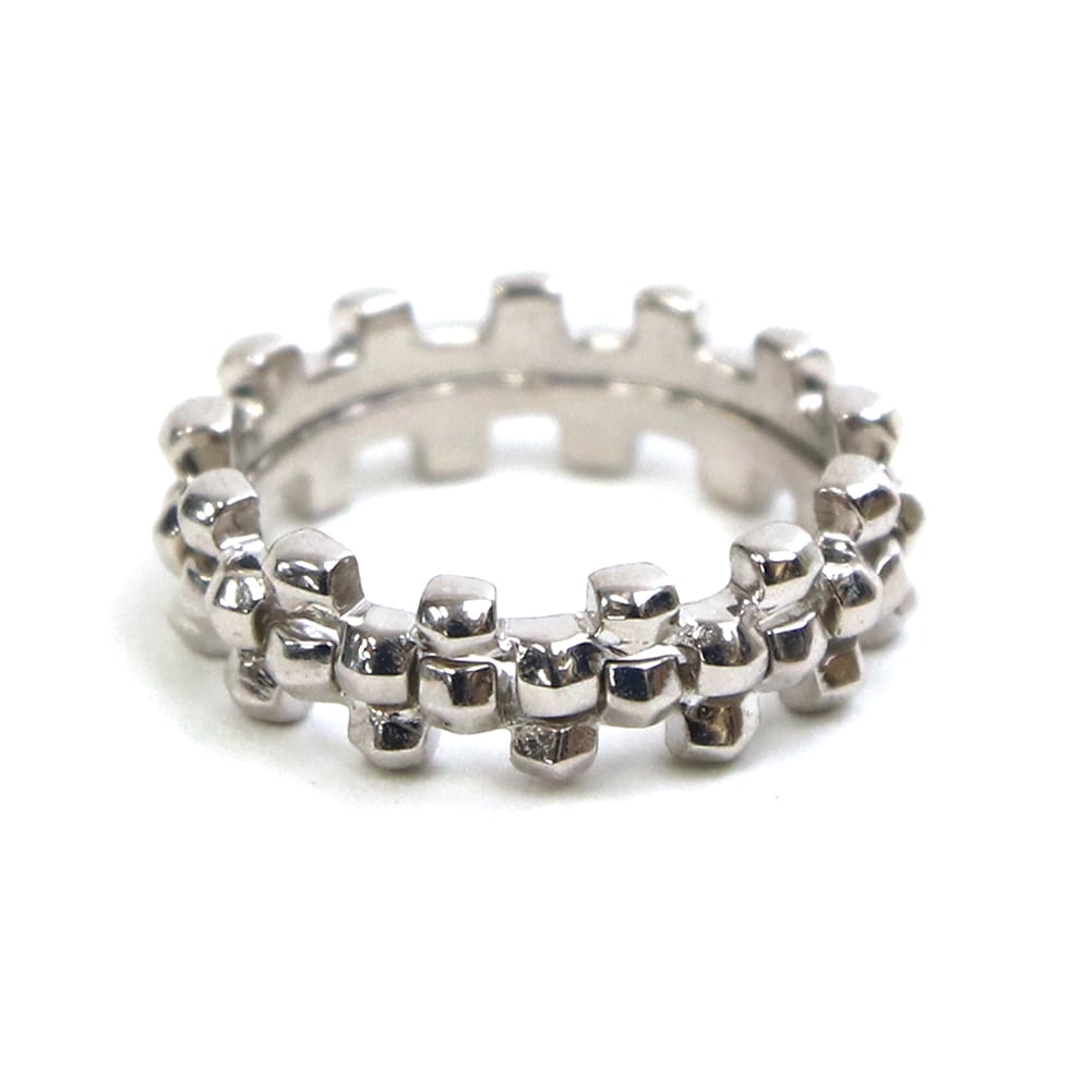 <kacha>は立体的な四角いパーツの連続で構成された商品で、2つのリングを重ね合わせることができます。