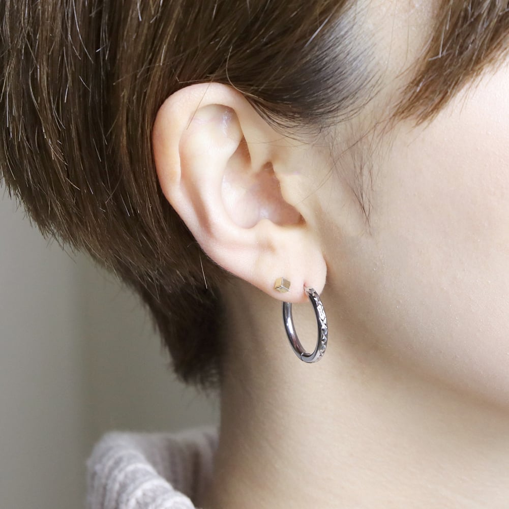 キャッチ式ではなく開閉式デザインにし、装飾を極力省くことでモード感があり、気品があるように工夫された1品。