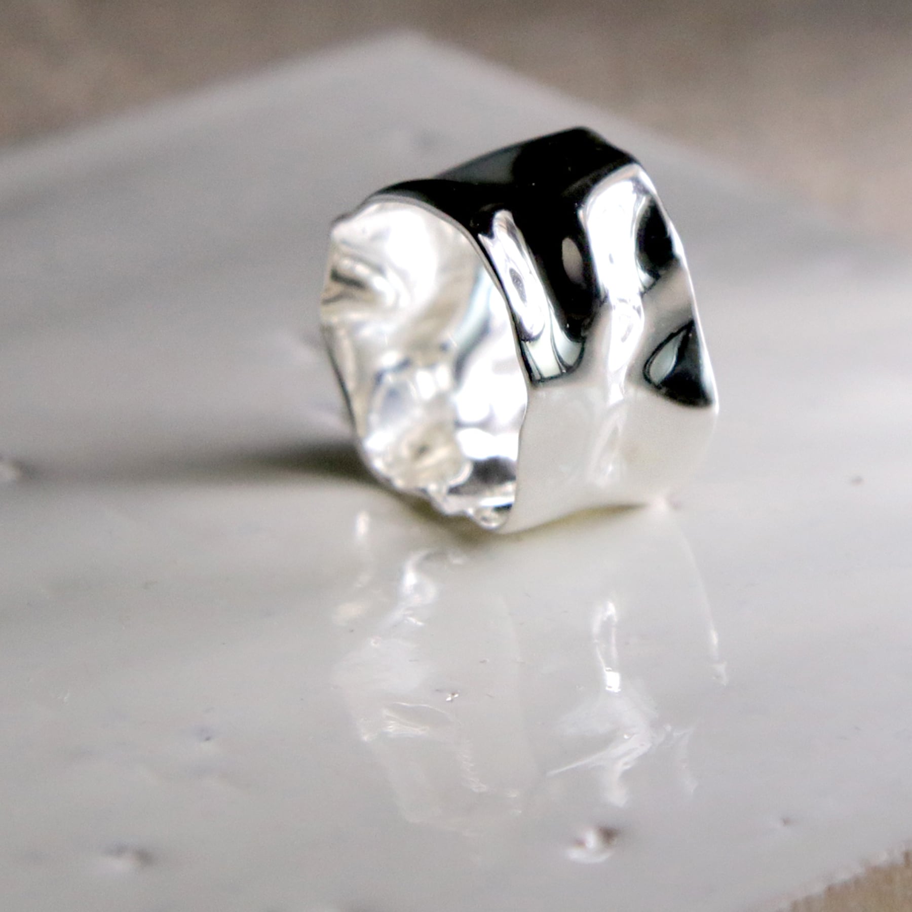 ねじ曲げたか、あるいはハンマーで叩いたようなイメージで作成。