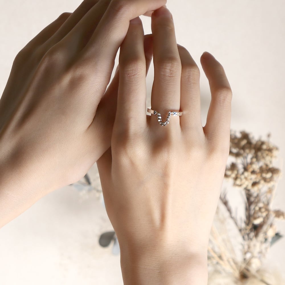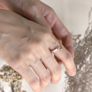 センターにチェーンで橋渡ししたようなデザインのリング。