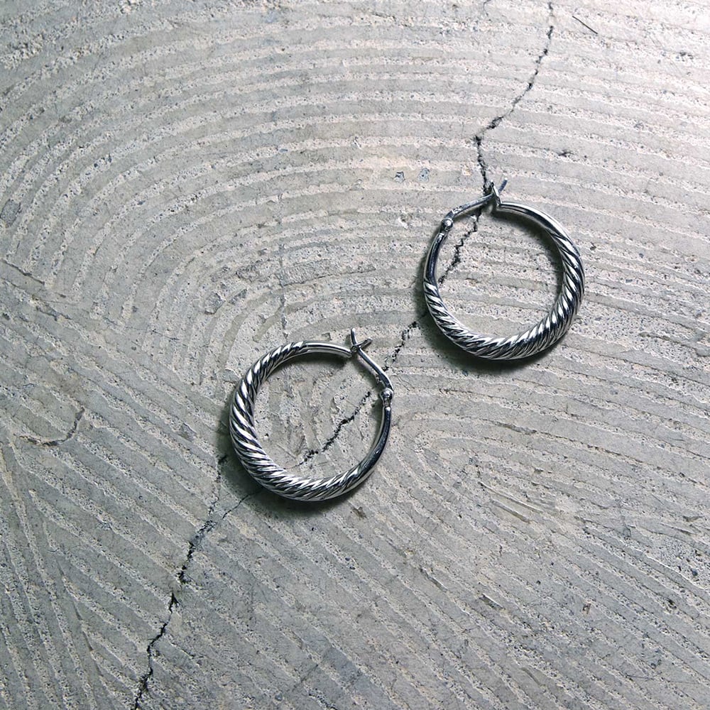 フープ型のピアスにひねりを加え、上品な仕上がりになるようデザイン。