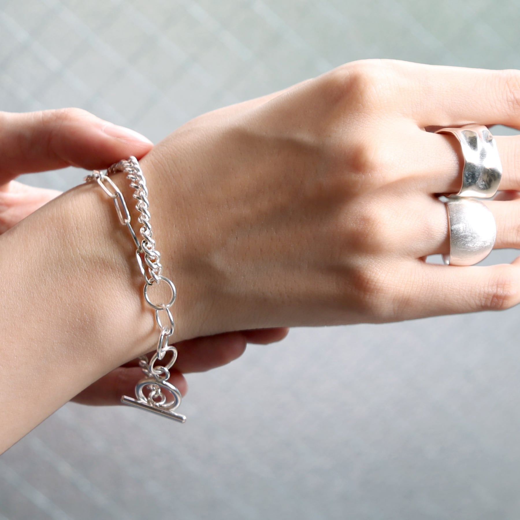 マルカン・喜平・変形あずきのサイズや形の異なるチェーンを組み合わせたブレスレット。