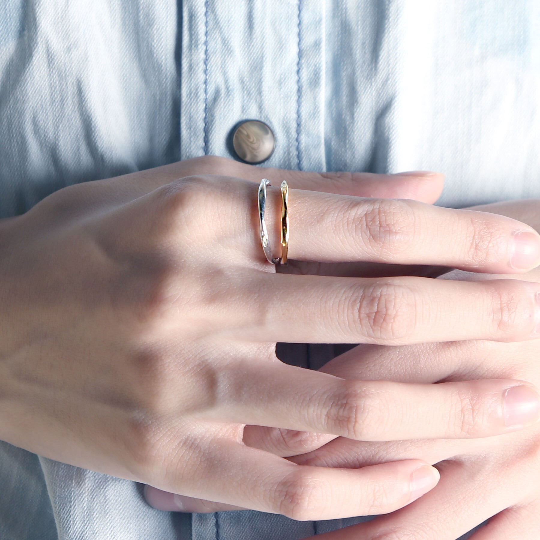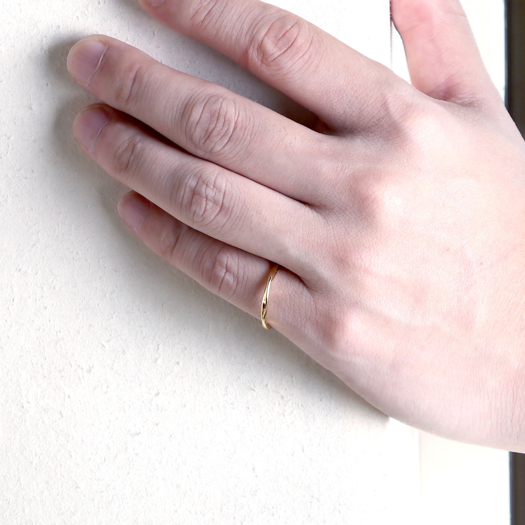 細めののラインにひねりを加え、デザイン性はあるが、極力シンプルに、身につけていて自然になるようイメージした1品。