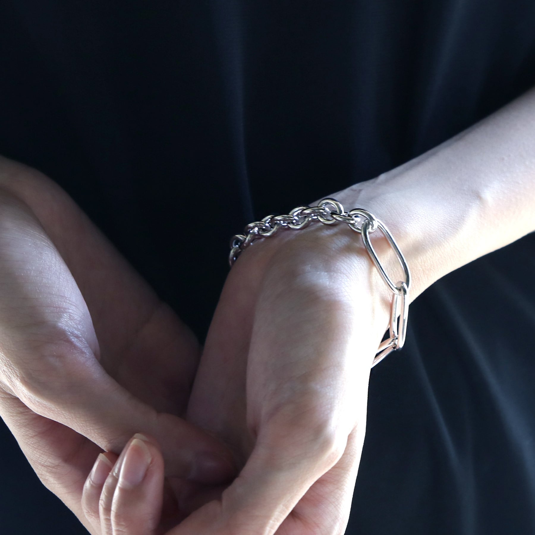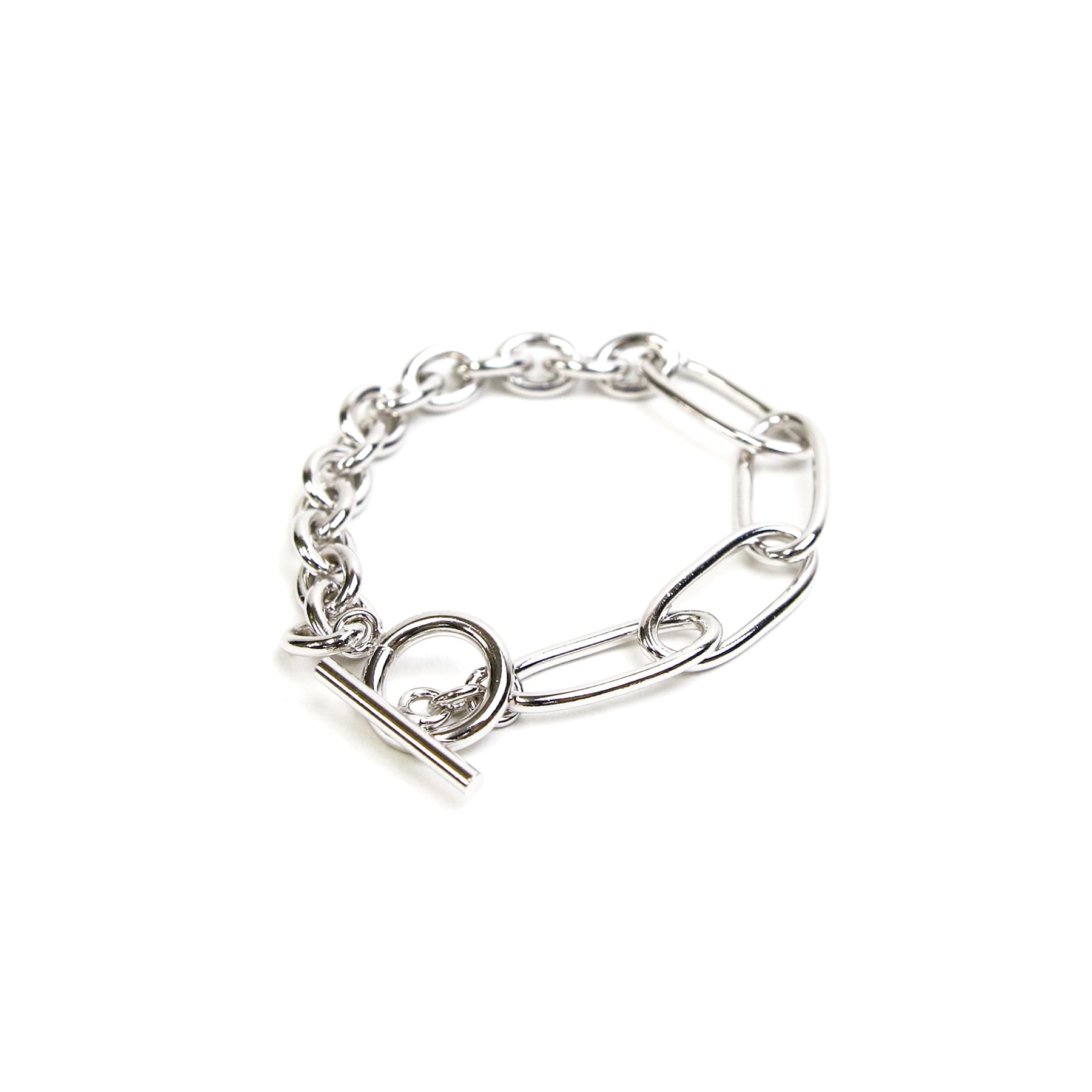 異なる2つのチェーンを繋いだブレスレット。