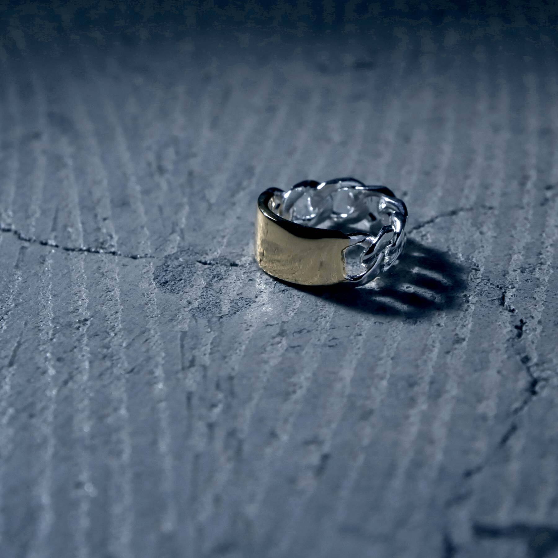 チェーンとフラットバーを合わせたリング。