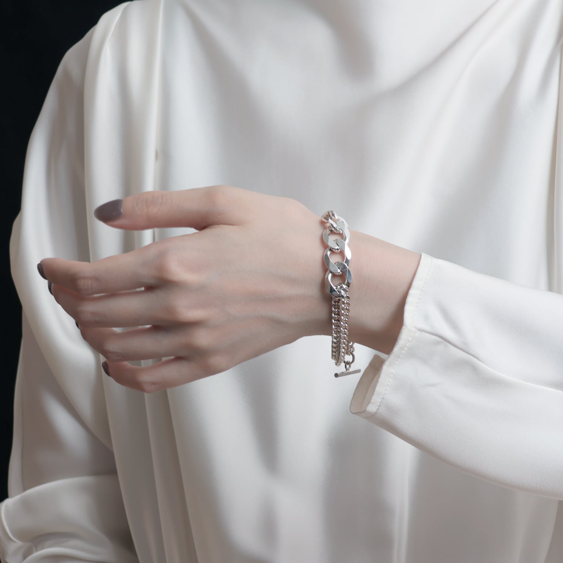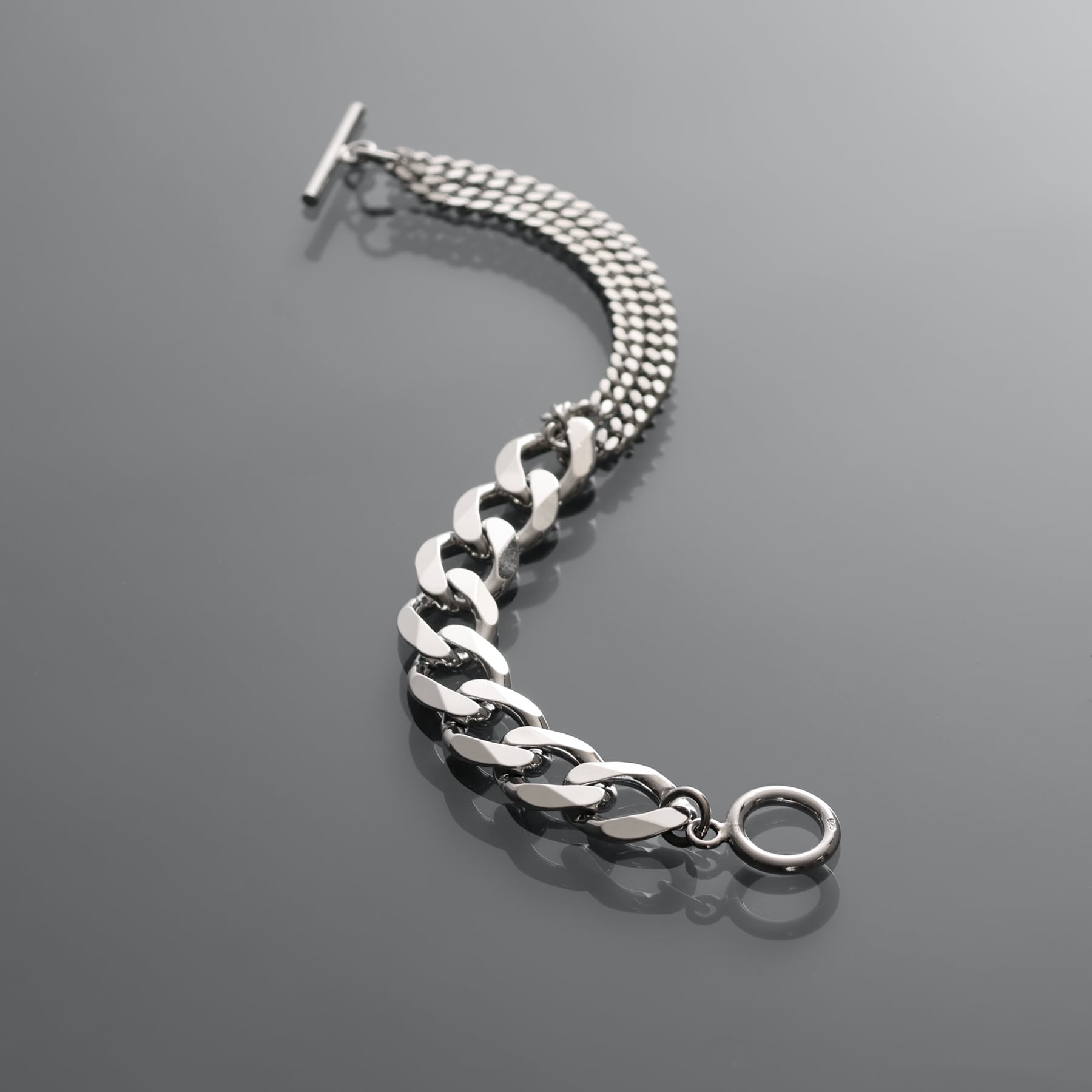 太めの喜平チェーンがアクセントのブレスレット。