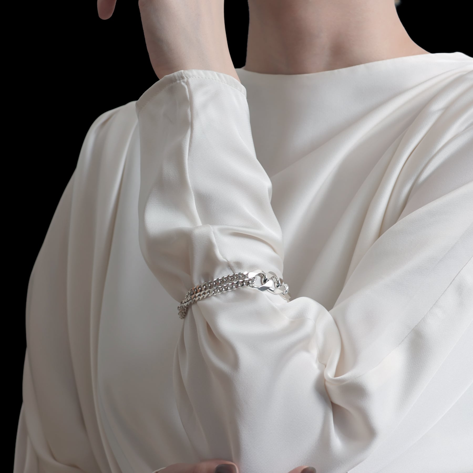 バランスを意識し、ミドルサイズの喜平チェーンを組み合わせたデザイン。