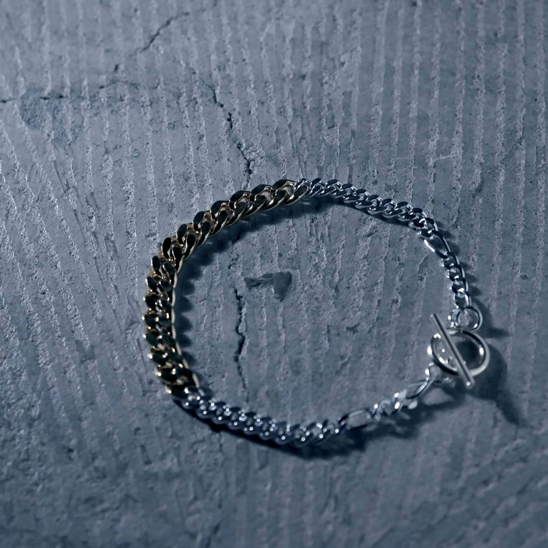 大小の喜平チェーンとフィガロチェーンを組み合わせたブレスレット。