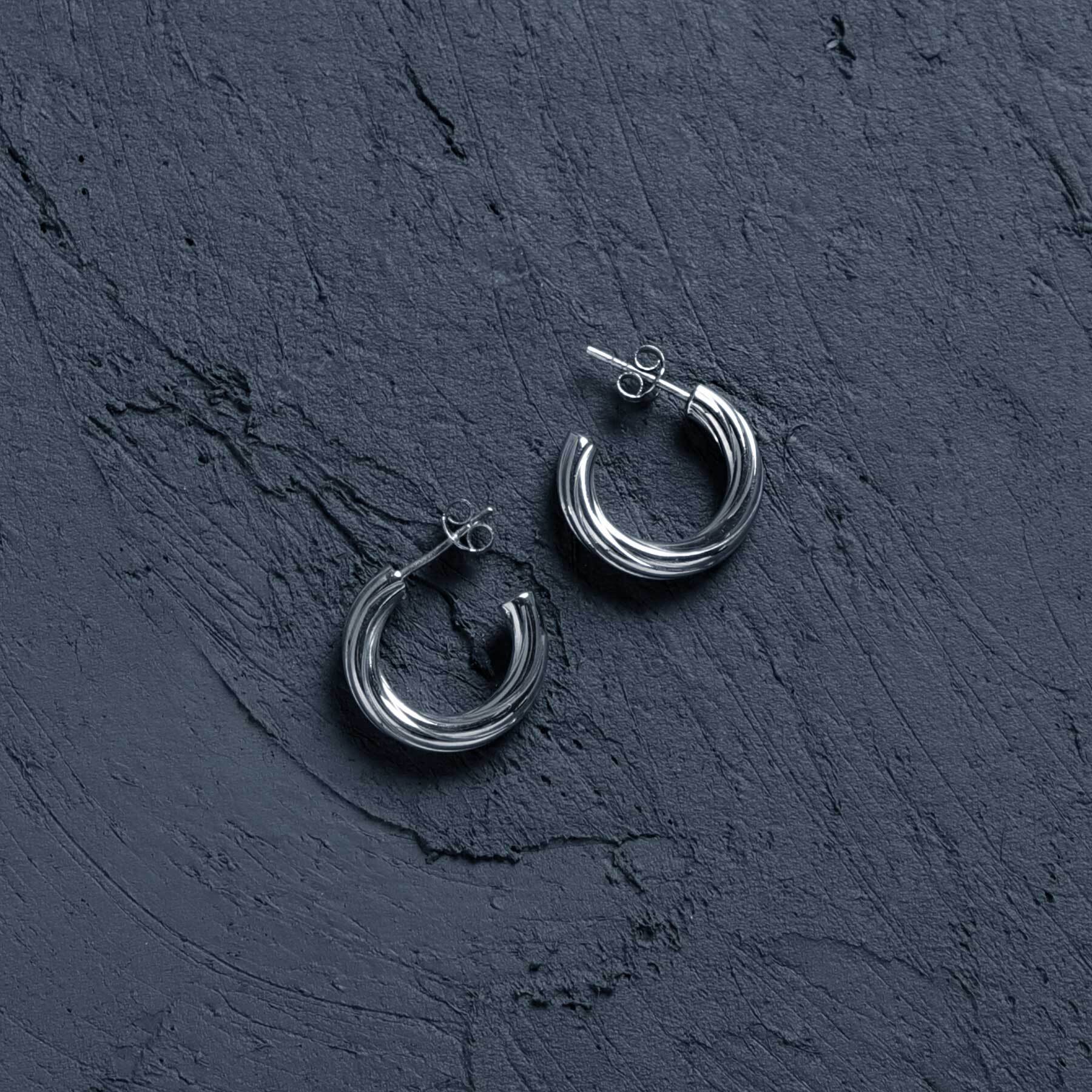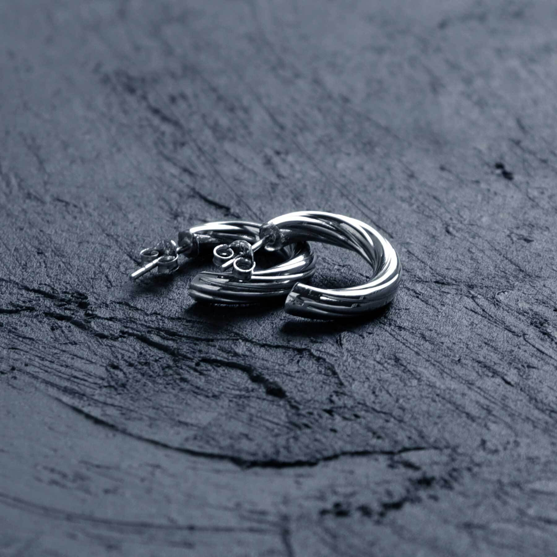 円の1/4をカットし、3/4をひねったデザインピアス。