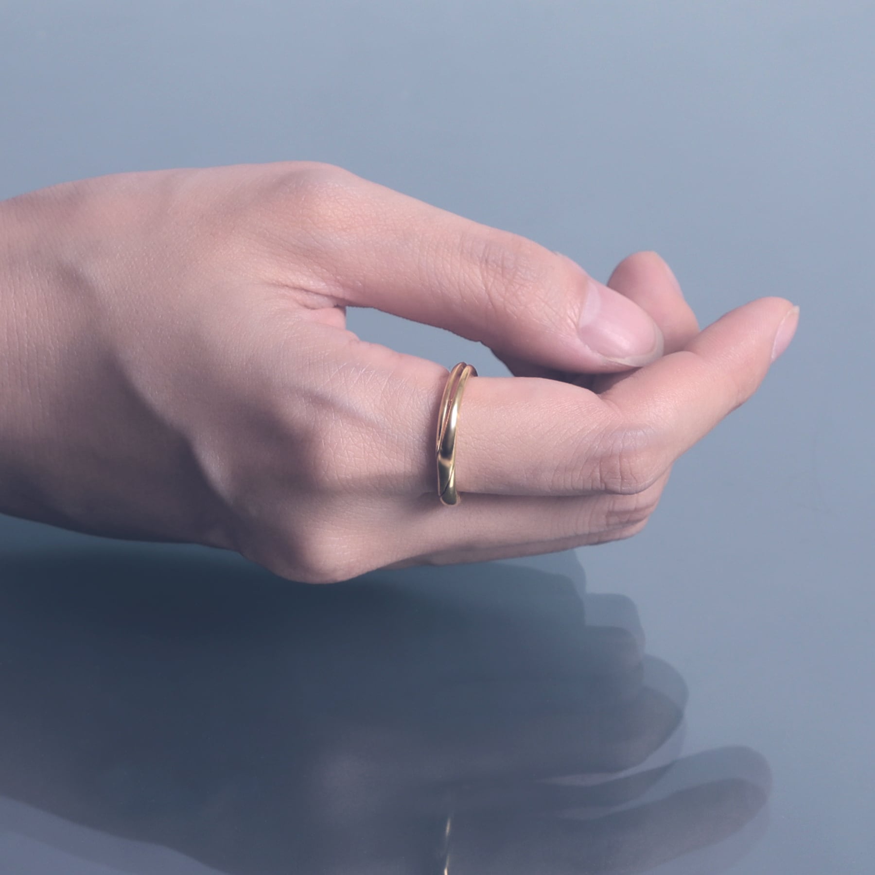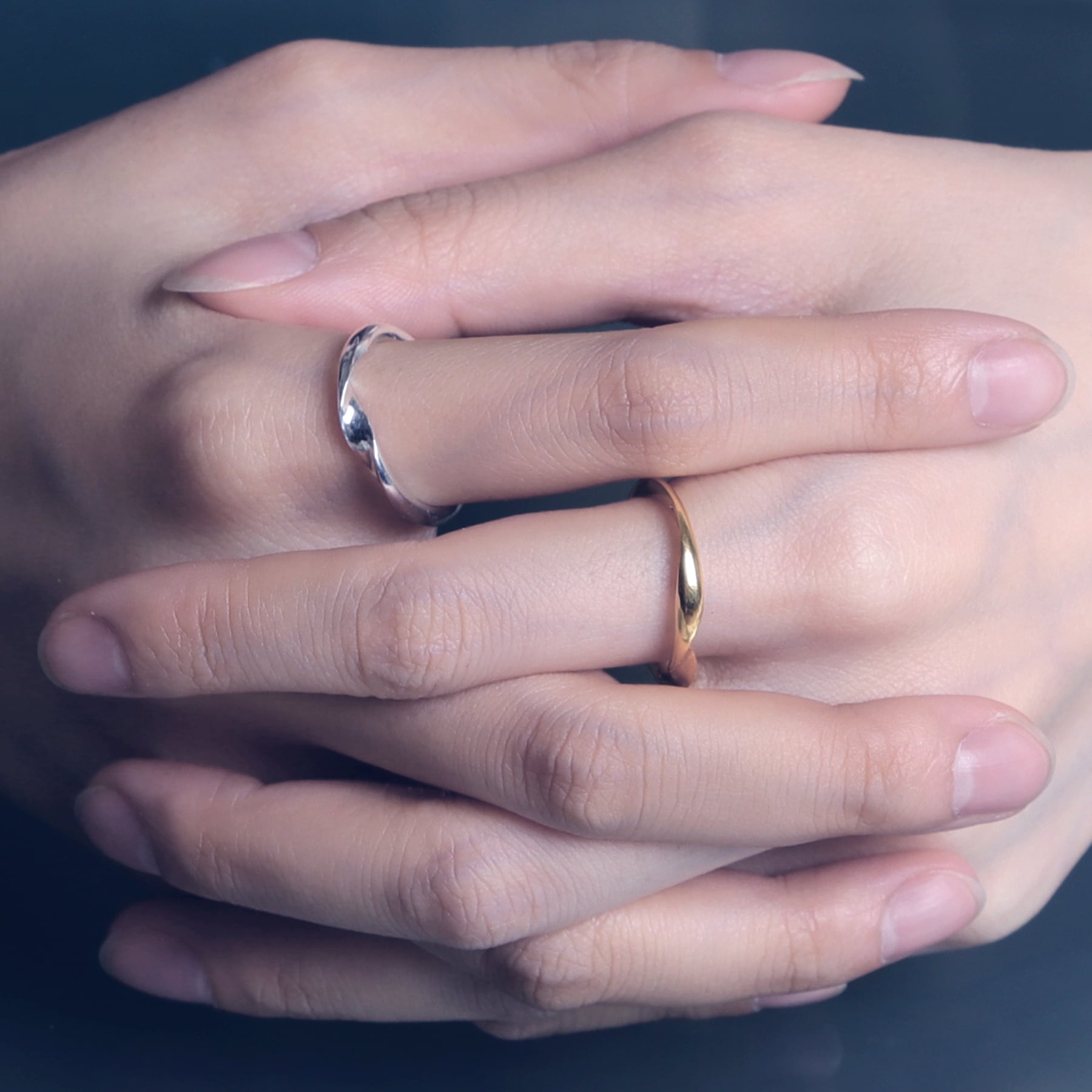 ひと癖のあるデザインが重なることでシンプルになる「逆転の発想」をリングでデザイン。