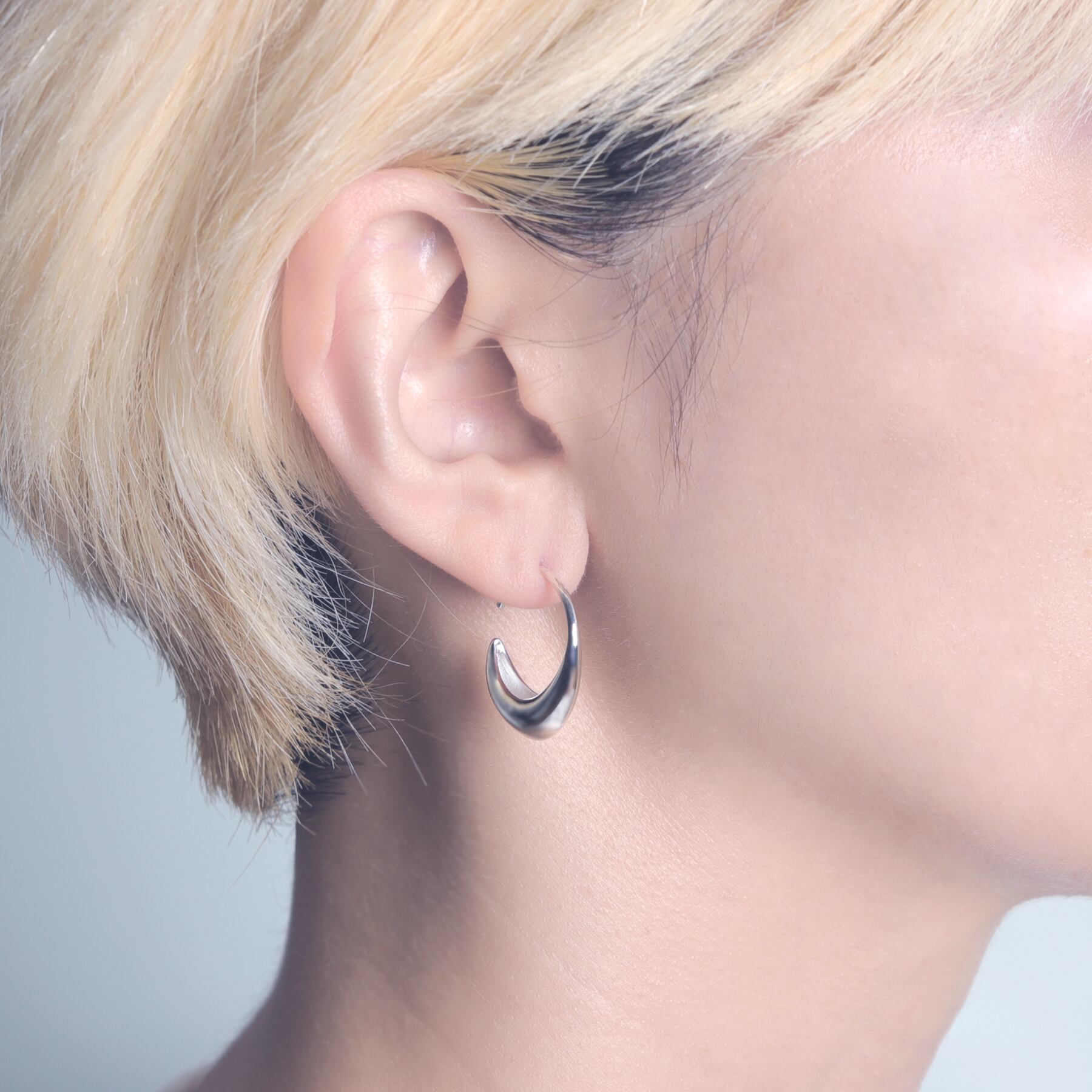 三日月のようにも見えるメイン部分は、中を空洞にすることで見た目より軽いライトな仕上がり。