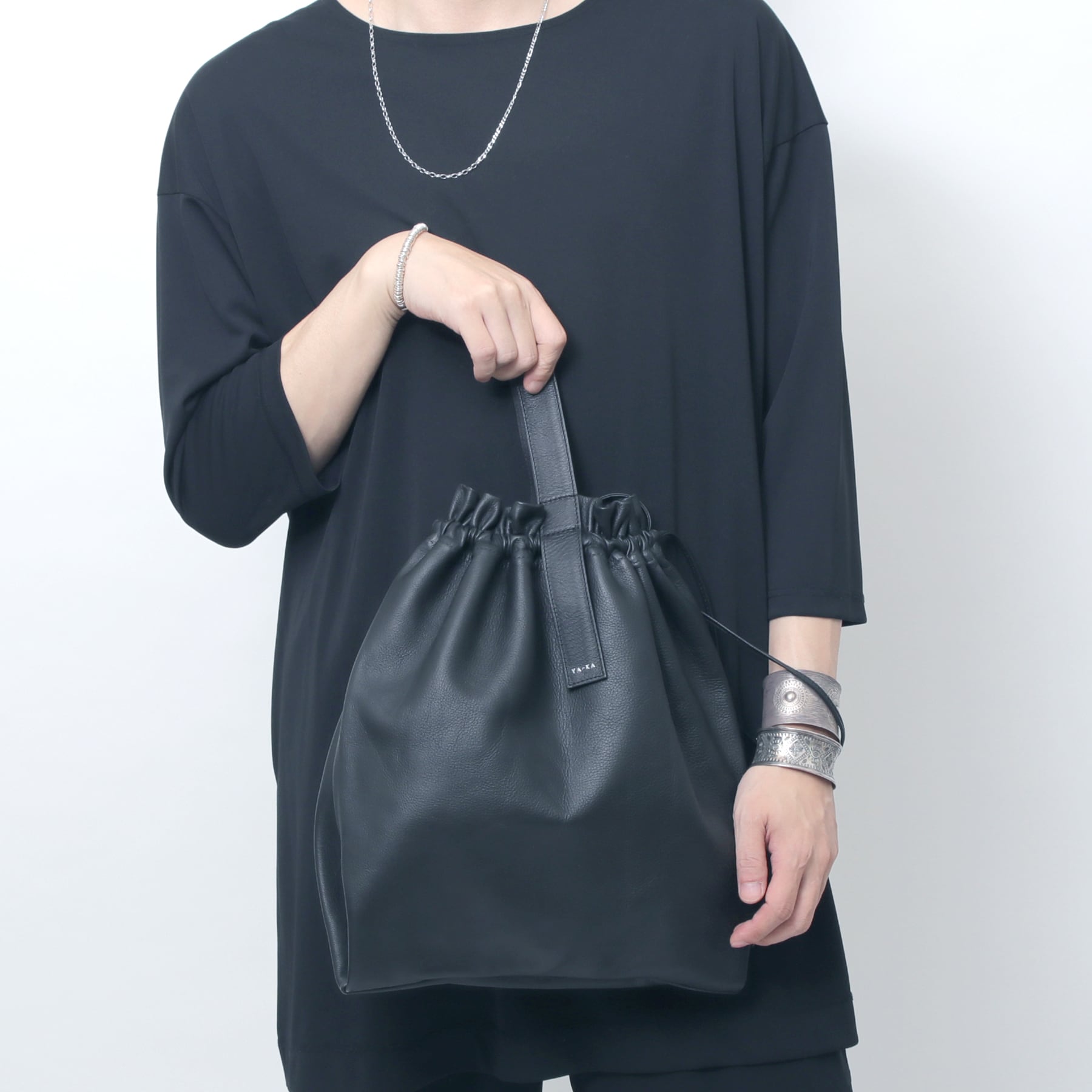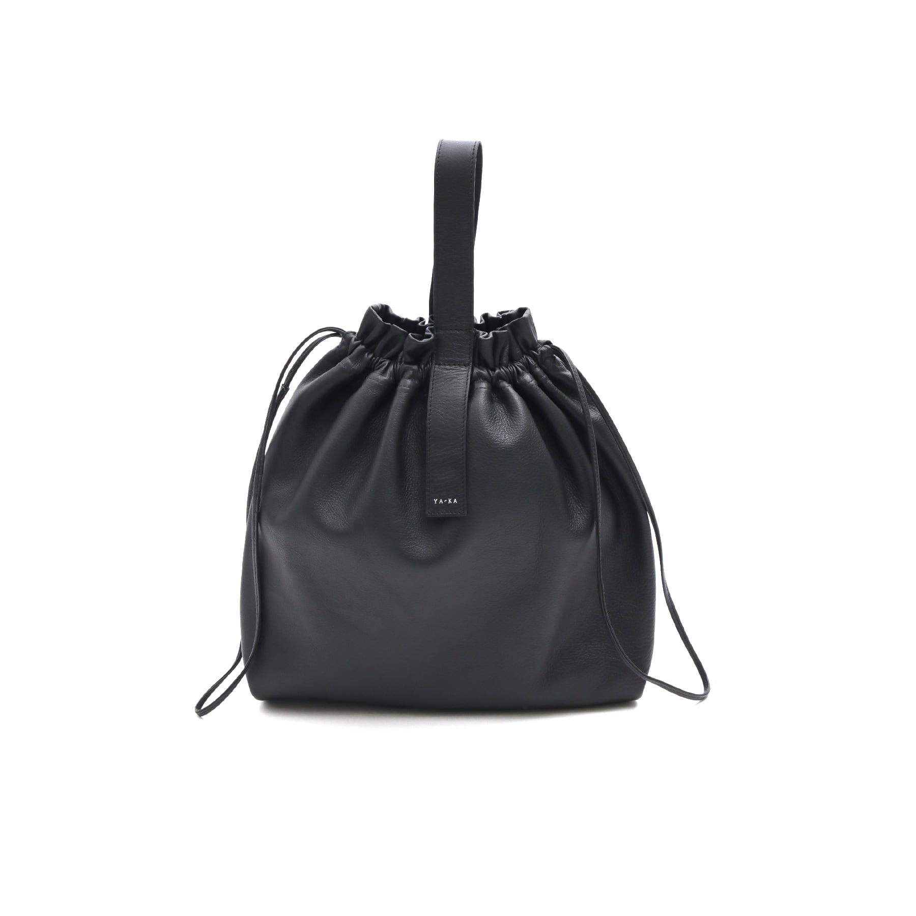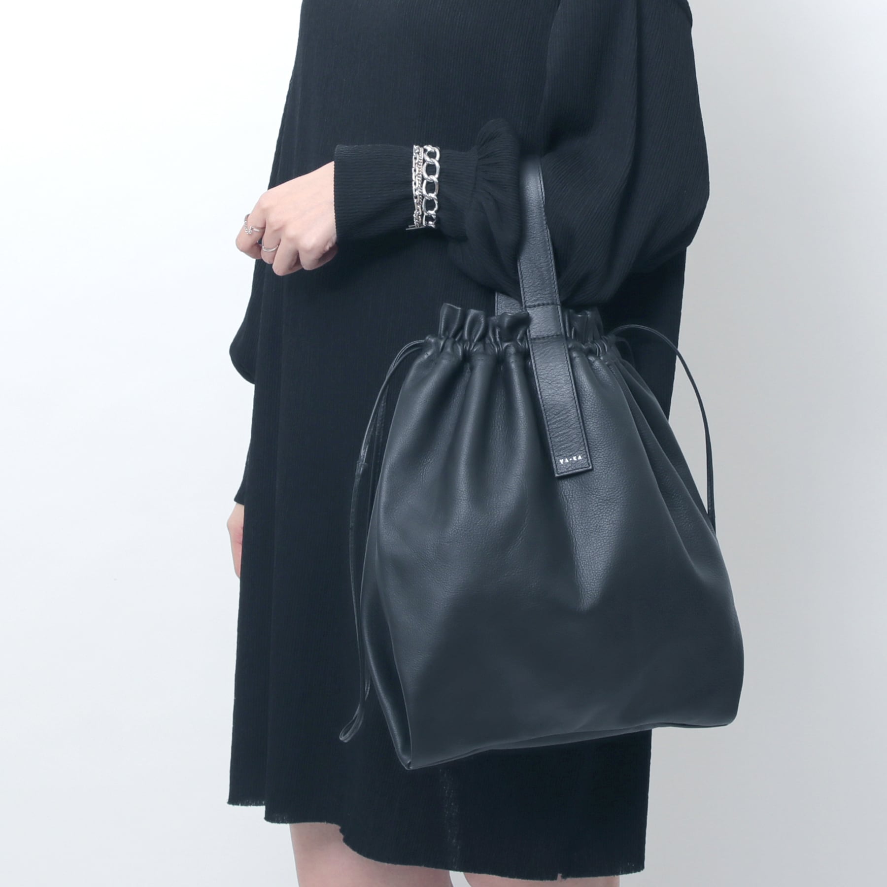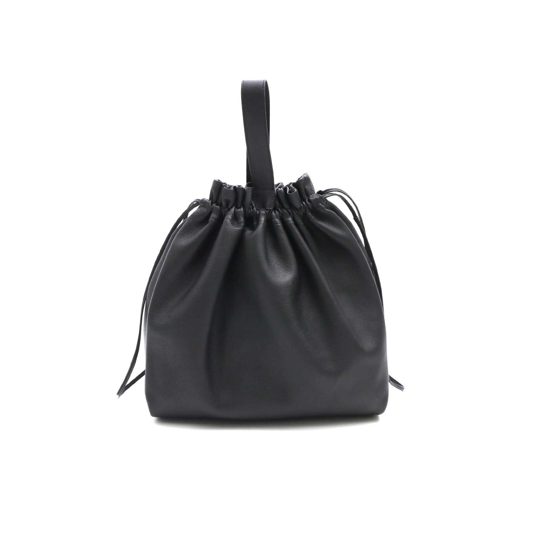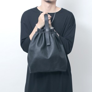 ハンドル部分をもってハンドバッグとして。巾着を絞って紐を肩がけすれば、トートバッグとして使用できる2way仕様。