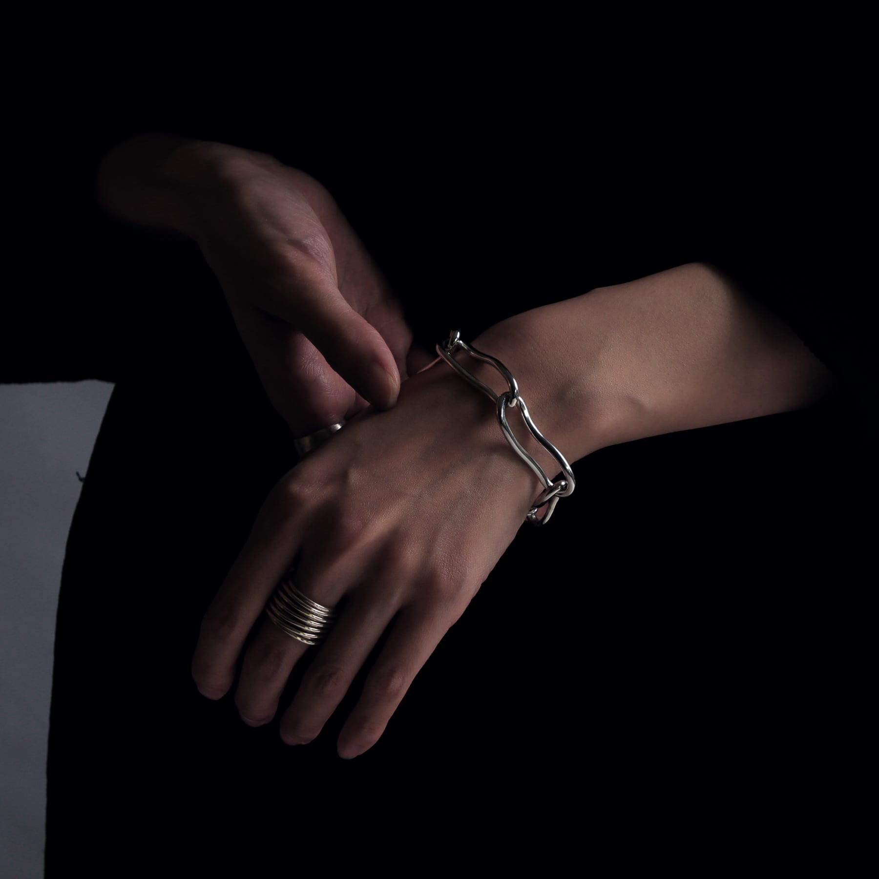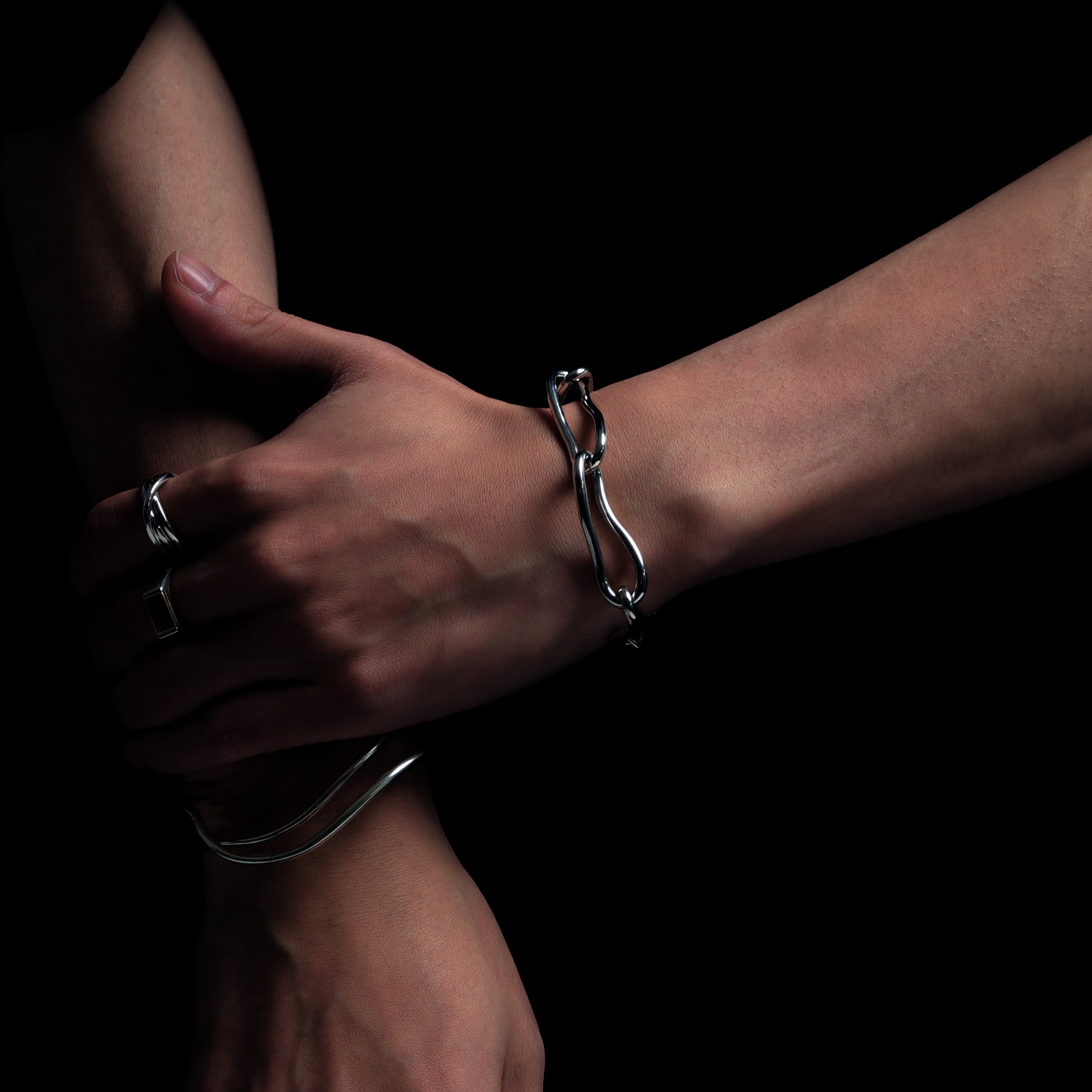 ・空間(隙間)を持たせることで重厚感がありながらユニセックスに着用いただけるデザインに
