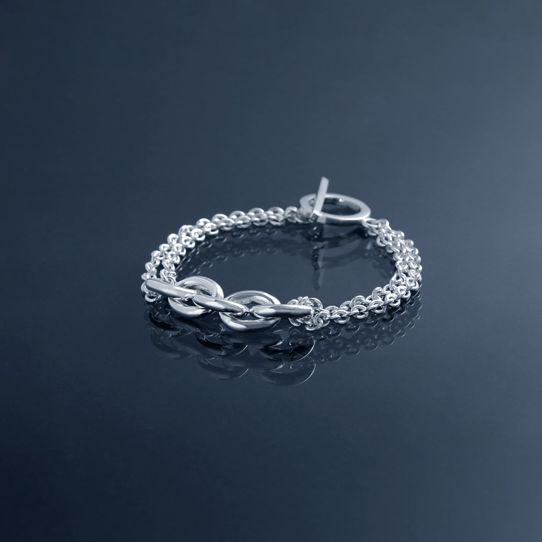 ・チェーンの中では定番中の定番「あずきチェーン」。その中でも極太サイズをアクセントに加えることにより、個性のあるデザインブレスレットへと昇華。