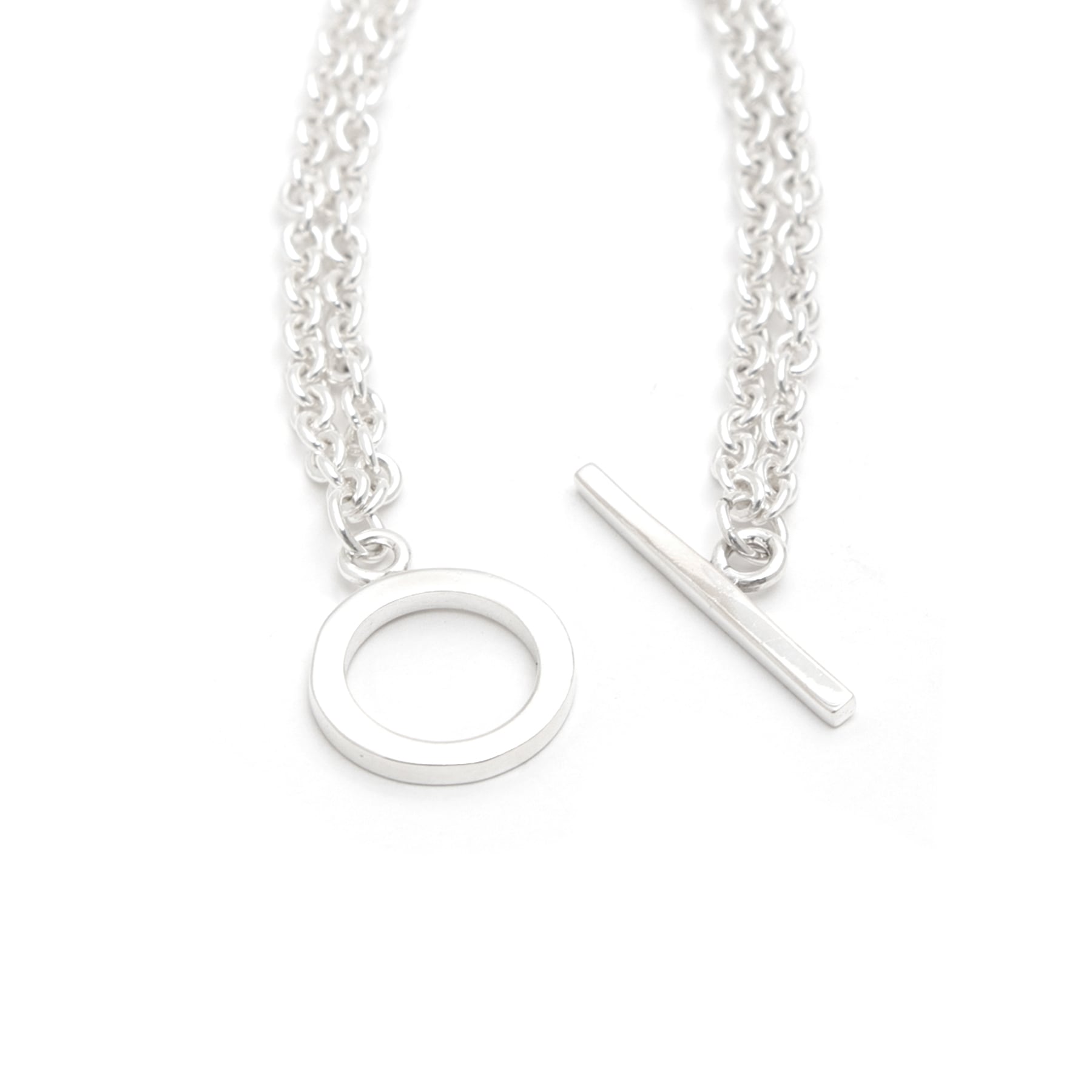 ・留め具(Tバーとマンテル)はチェーンの丸さを引き締めるように少し角があるデザインを採用