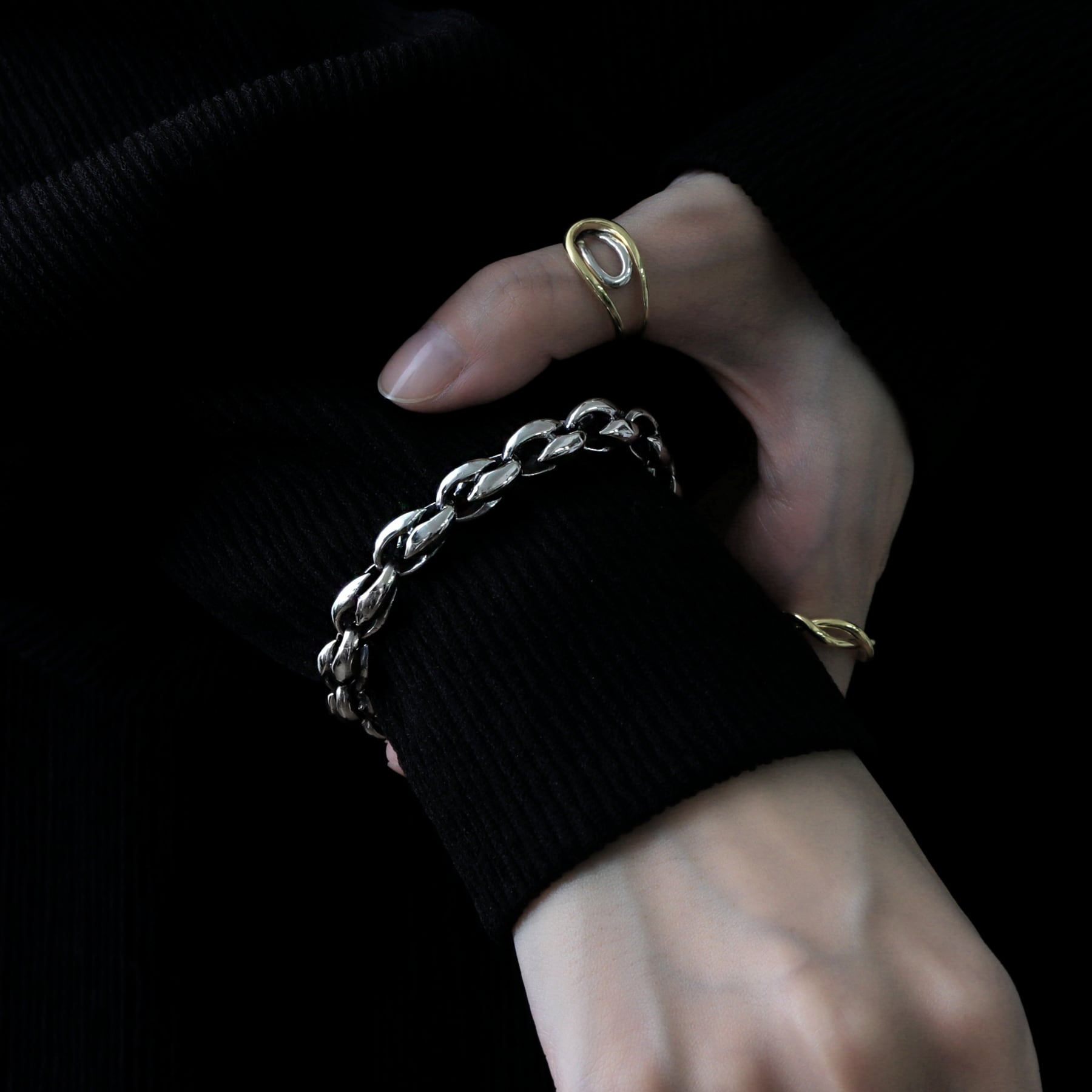 ・空間(隙間)を持たせることで重厚感がありながらユニセックスに着用いただけるデザインに
