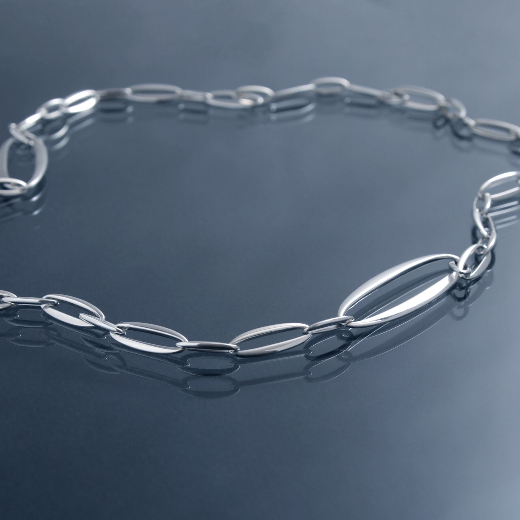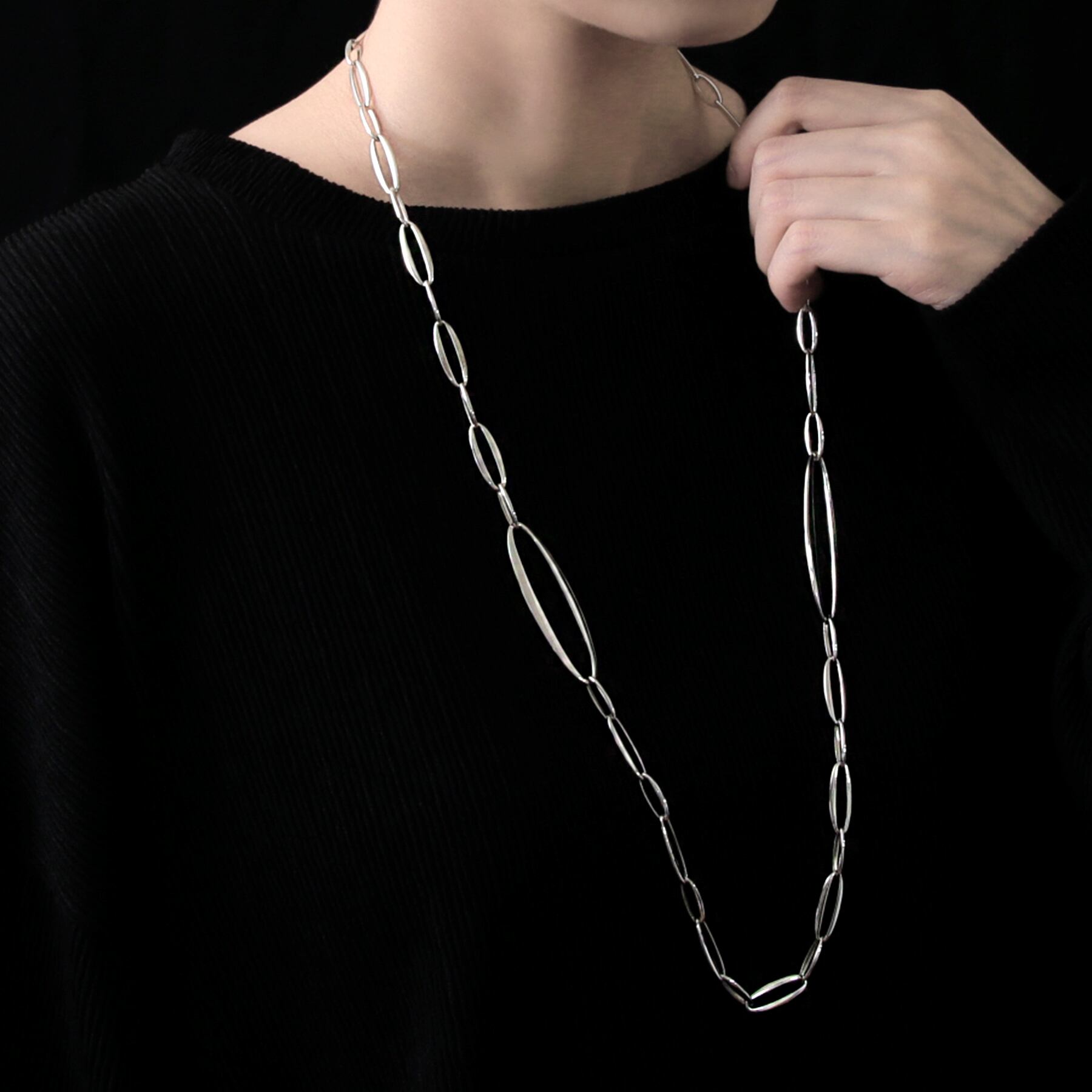 ・大中小と大きさの異なるパーツを作成しつなぎ合わせたロングネックレス