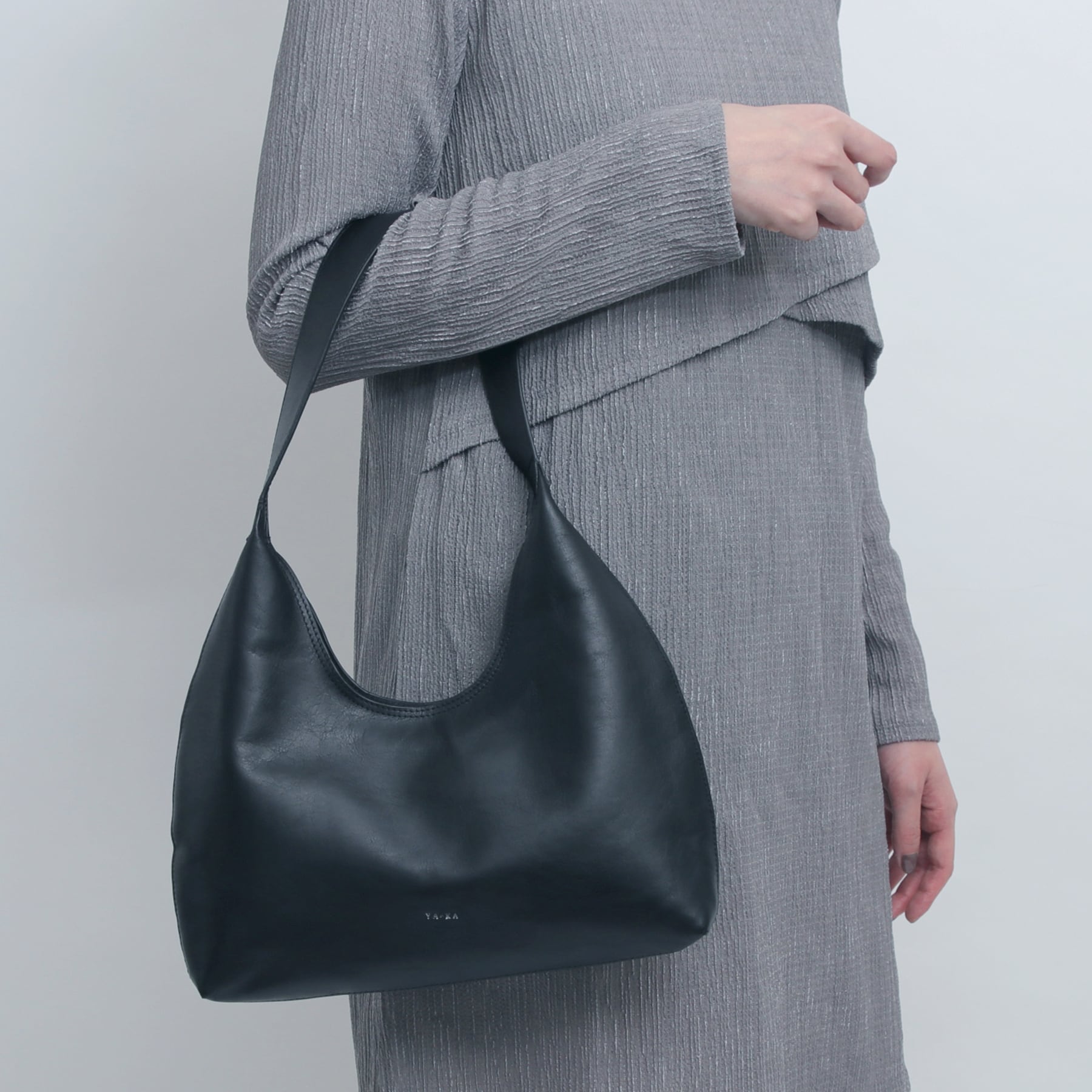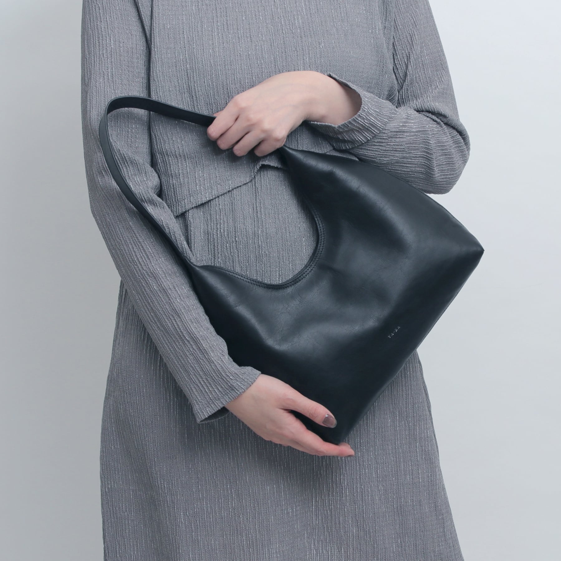 ・開口部をラウンドさせ、中央部を低くすることでライトウェアまでであれば肩がけも可能(アウターなどの厚着ですと不可)