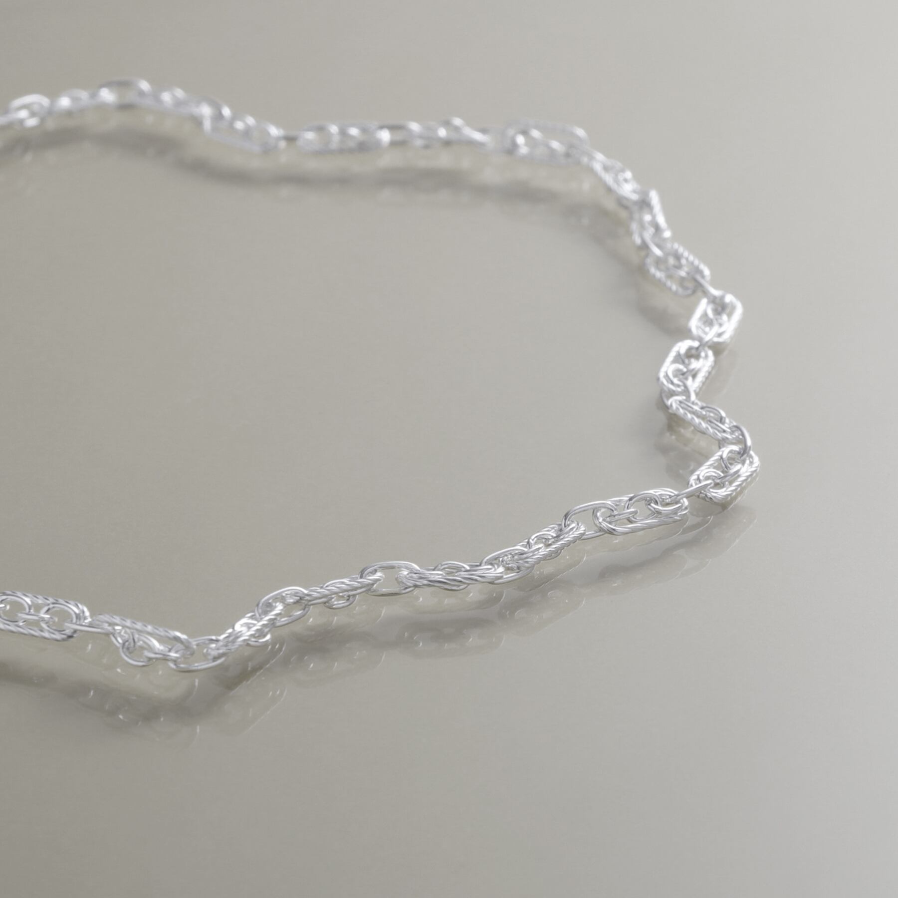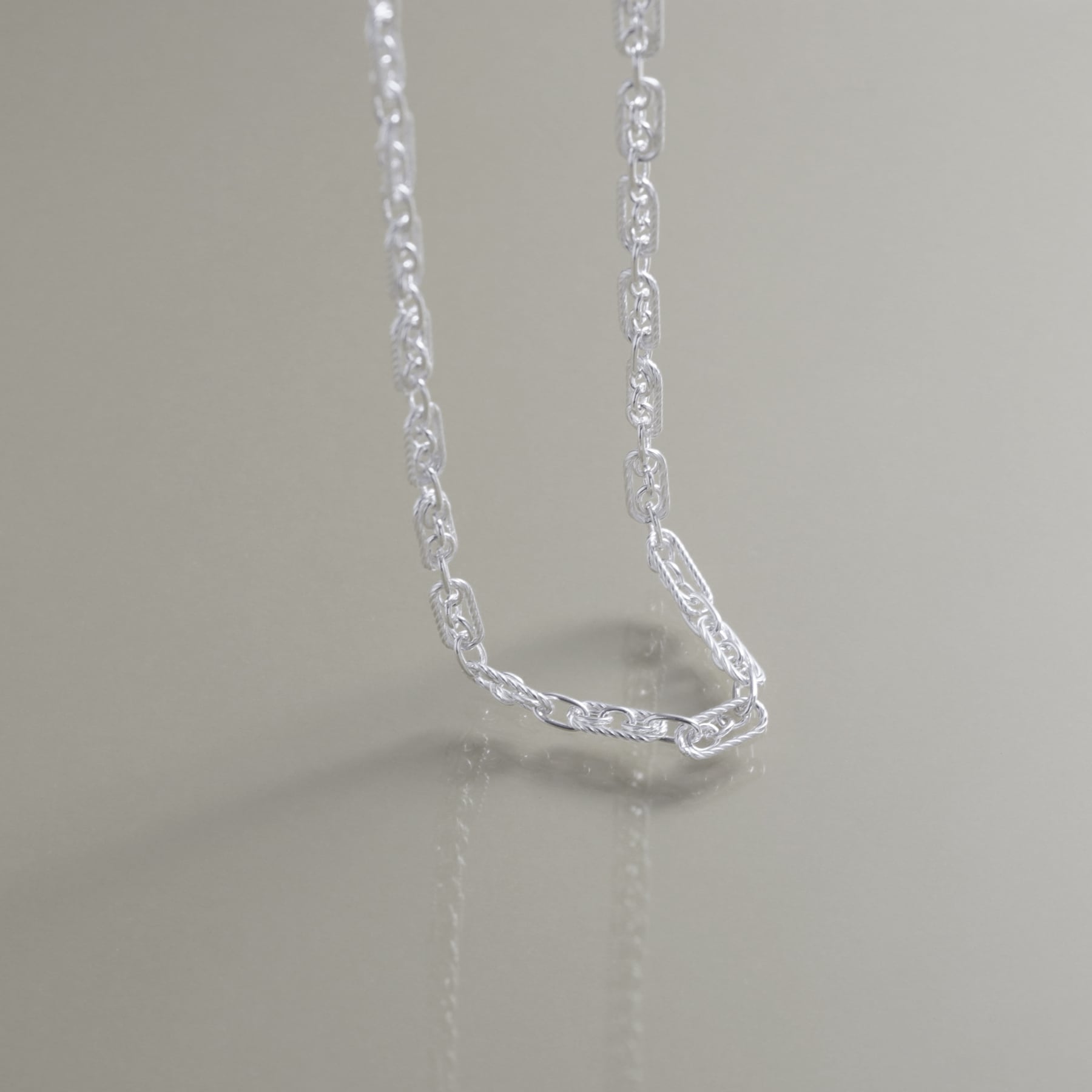 ・シンプルなパーツ(円パーツと長円パーツ)をアクセントをつけながら組み上げることで複雑に入り組んだ鎖のような形状が完成