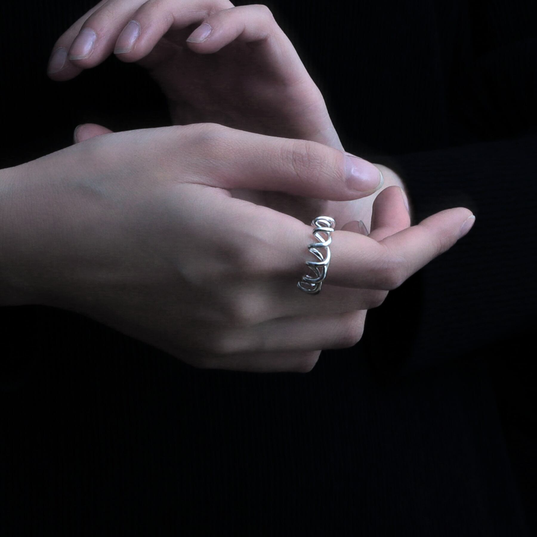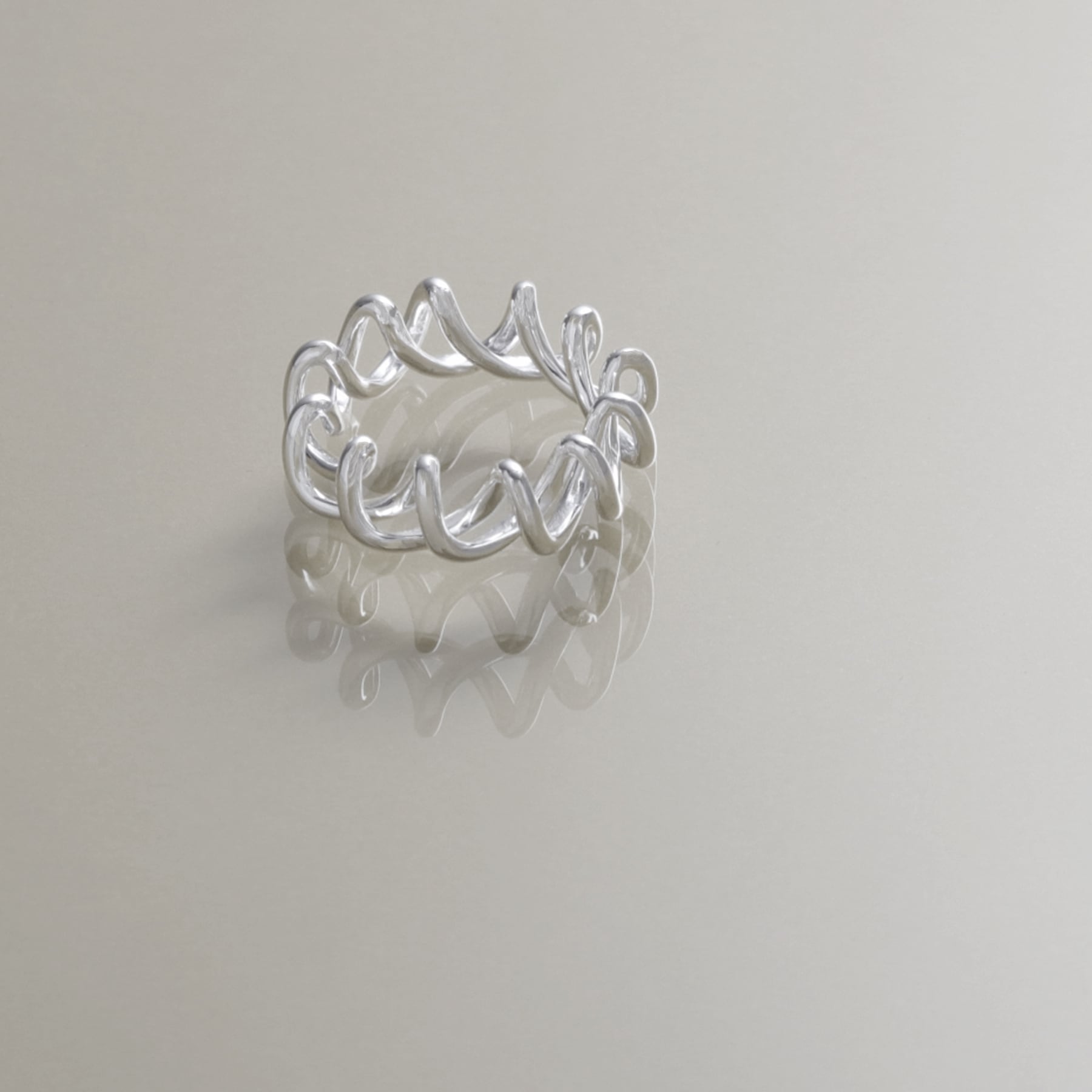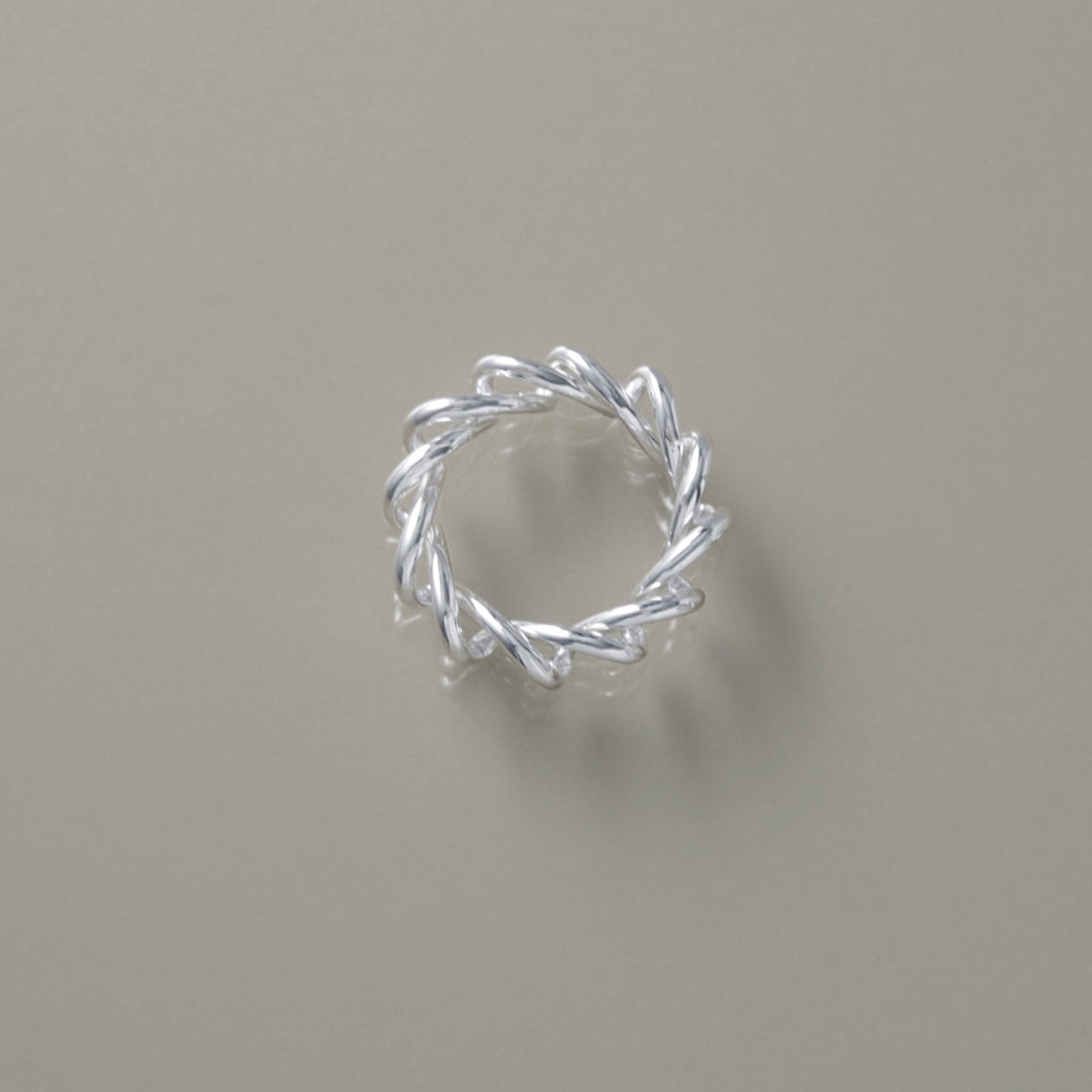 ・画像では伝わりにくいのですが、2本のリングを重ね合わせており、知恵の輪のように外れそうで外れないアバンギャルドなデザイン