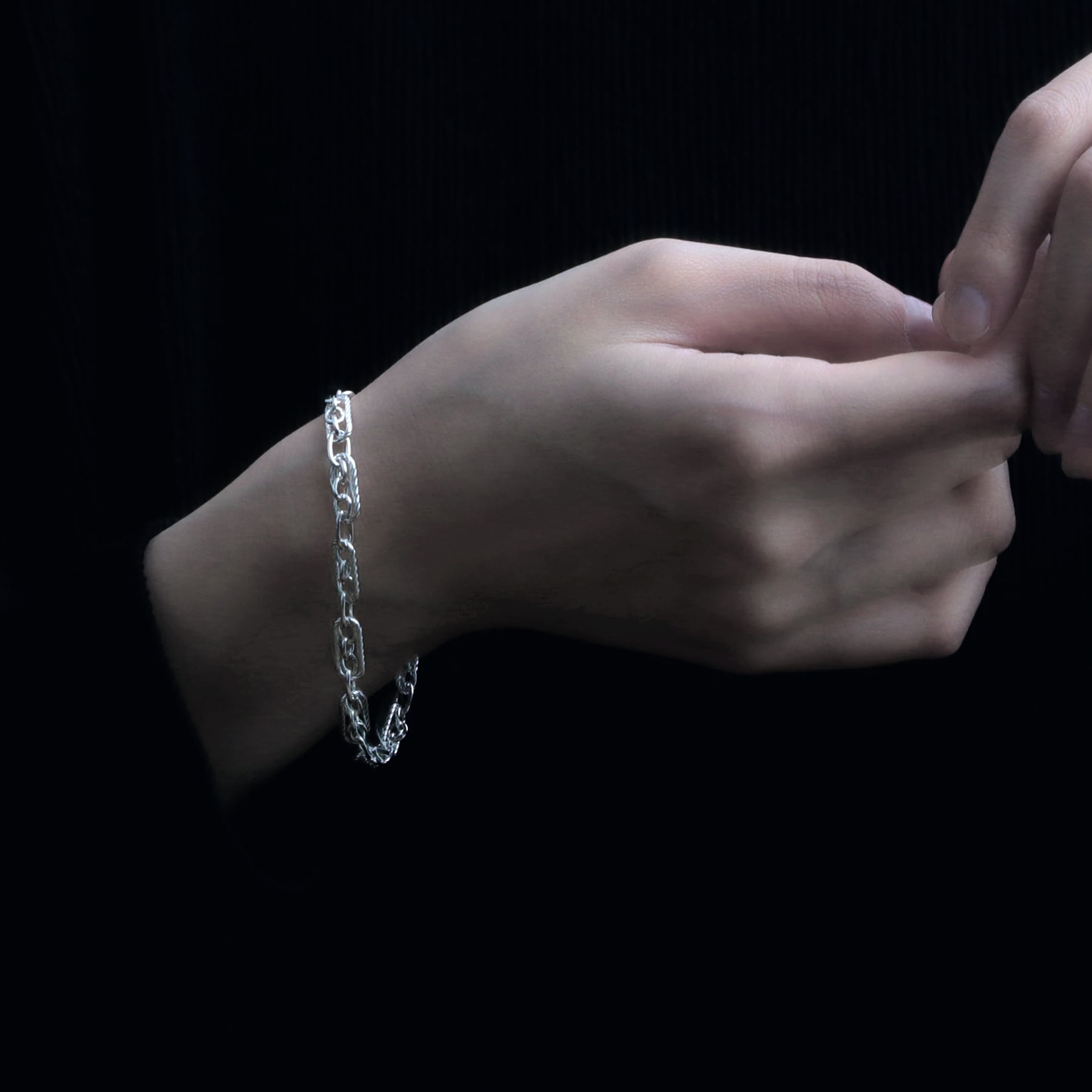 パーツをパズルを作るように組み上げて完成したブレスレット