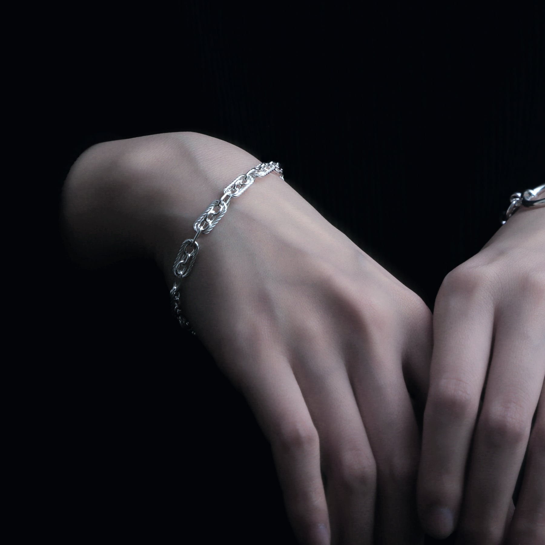 ・パーツそのものがシンプルなので、複雑に組み上げても派手になりすぎず、空間(隙間)を持たせることでユニセックスに着用いただけるデザインに