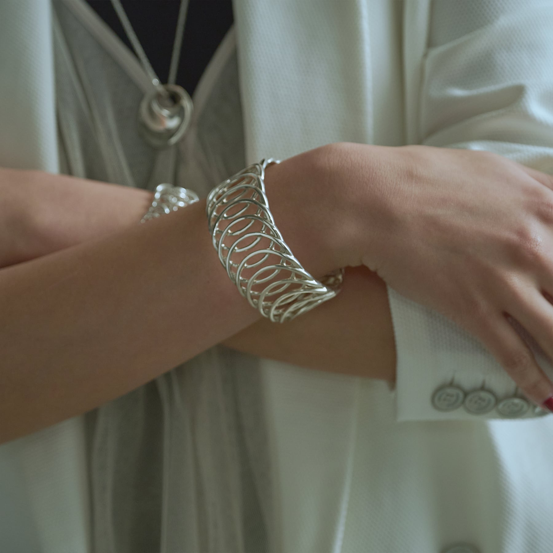 ・円を繰り返し配置することでスプリングのようでメッシュのような不思議なデザインに