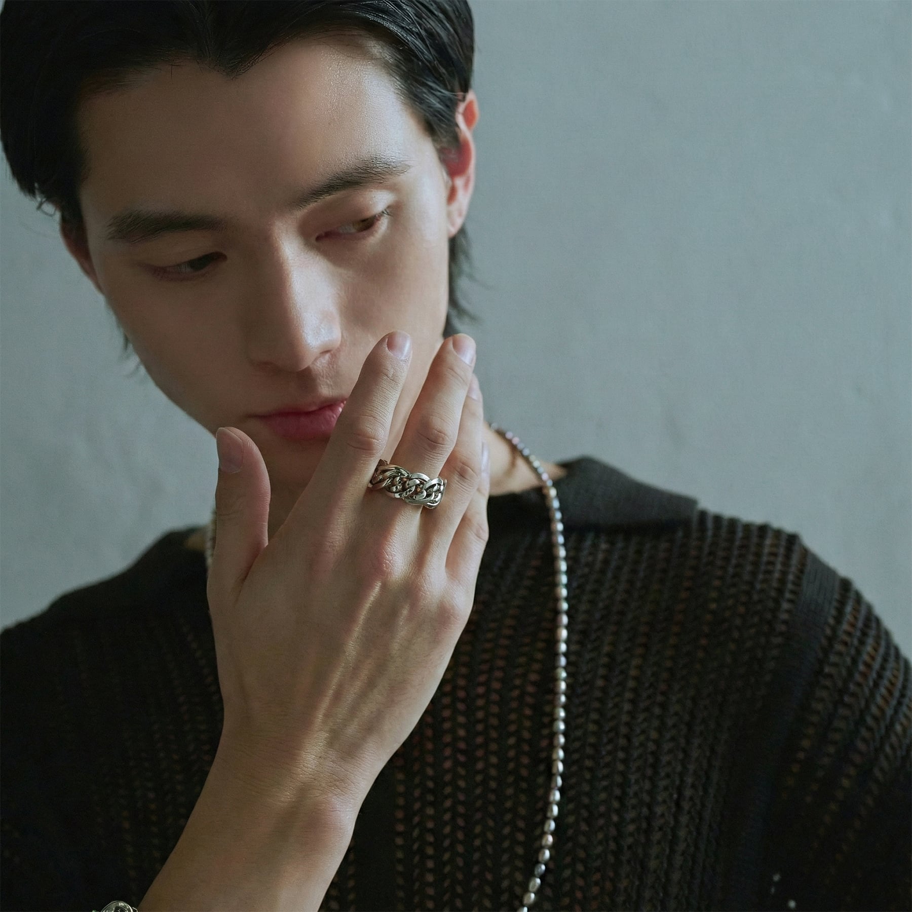 ・太く大ぶりな外側チェーンがハードな印象であり、且つ内側のチェーンがユニークさをプラス。